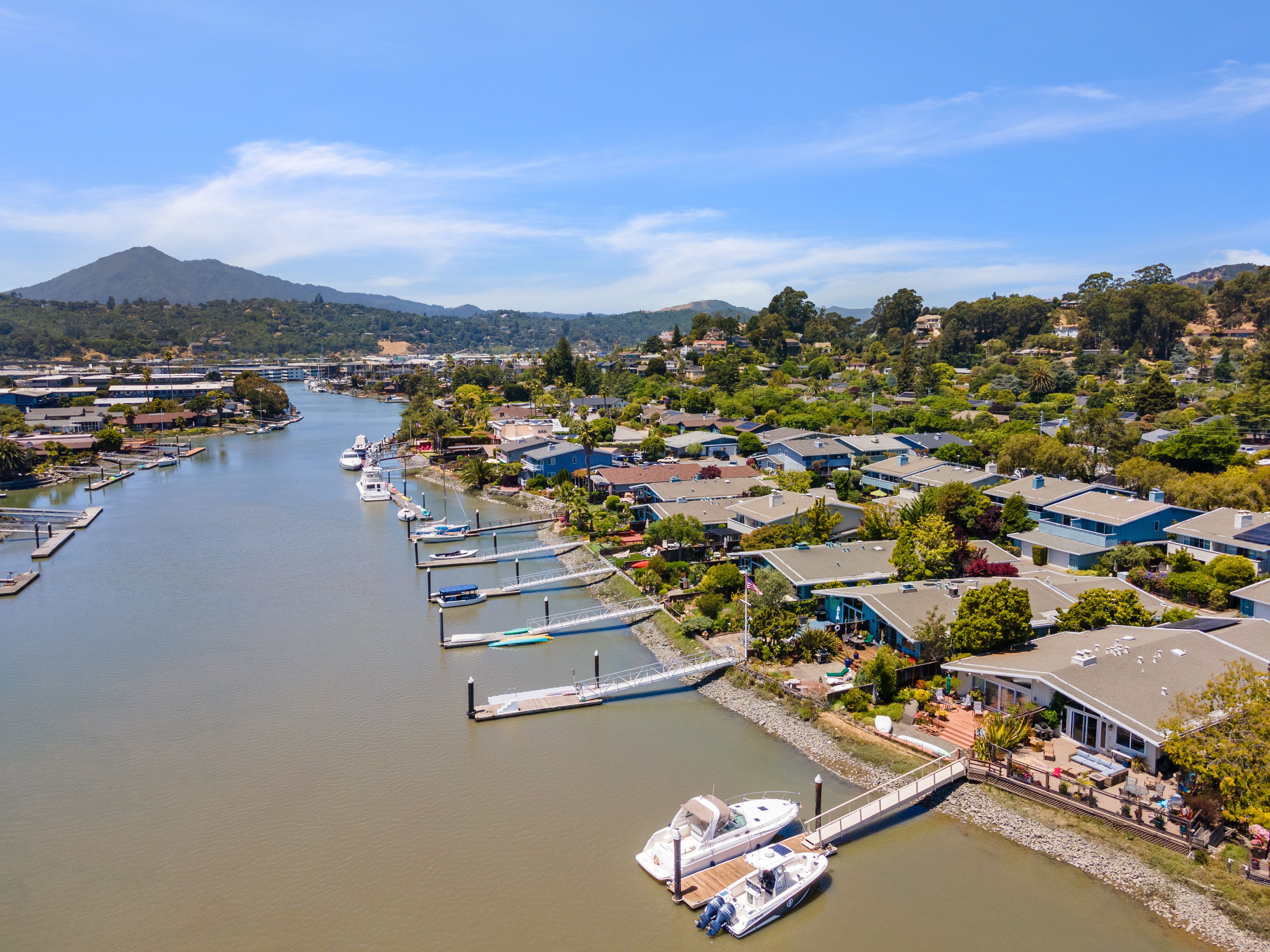 Porto Bello is a small waterfront community with direct bay access and a shared dock for kayaking, paddleboarding, and enjoying the surrounding waterway. This spacious, updated end-unit offers two bedrooms with vaulted ceilings, two full bathrooms, and a convenient powder room. The open floor plan includes a living room with a fireplace, built-in shelving, and a large picture window with sliding door that opens to a private garden patio. The kitchen includes updated cabinetry, a stone countertop, and a dining area along a bank of windows. The garage is attached, just off the kitchen, and includes a washer and dryer, room for storage, and a clean epoxy floor. You’ll enjoy fresh paint throughout and new carpeting upstairs.Located just outside downtown San Rafael, this property offers quick access to shopping, dining, and Highway 101. Nearby amenities include local boat marinas, a scenic bayfront path, and Peacock Gap Golf Club. This location is known for its mild climate, bay access, and extensive hiking opportunities in surrounding open space.
