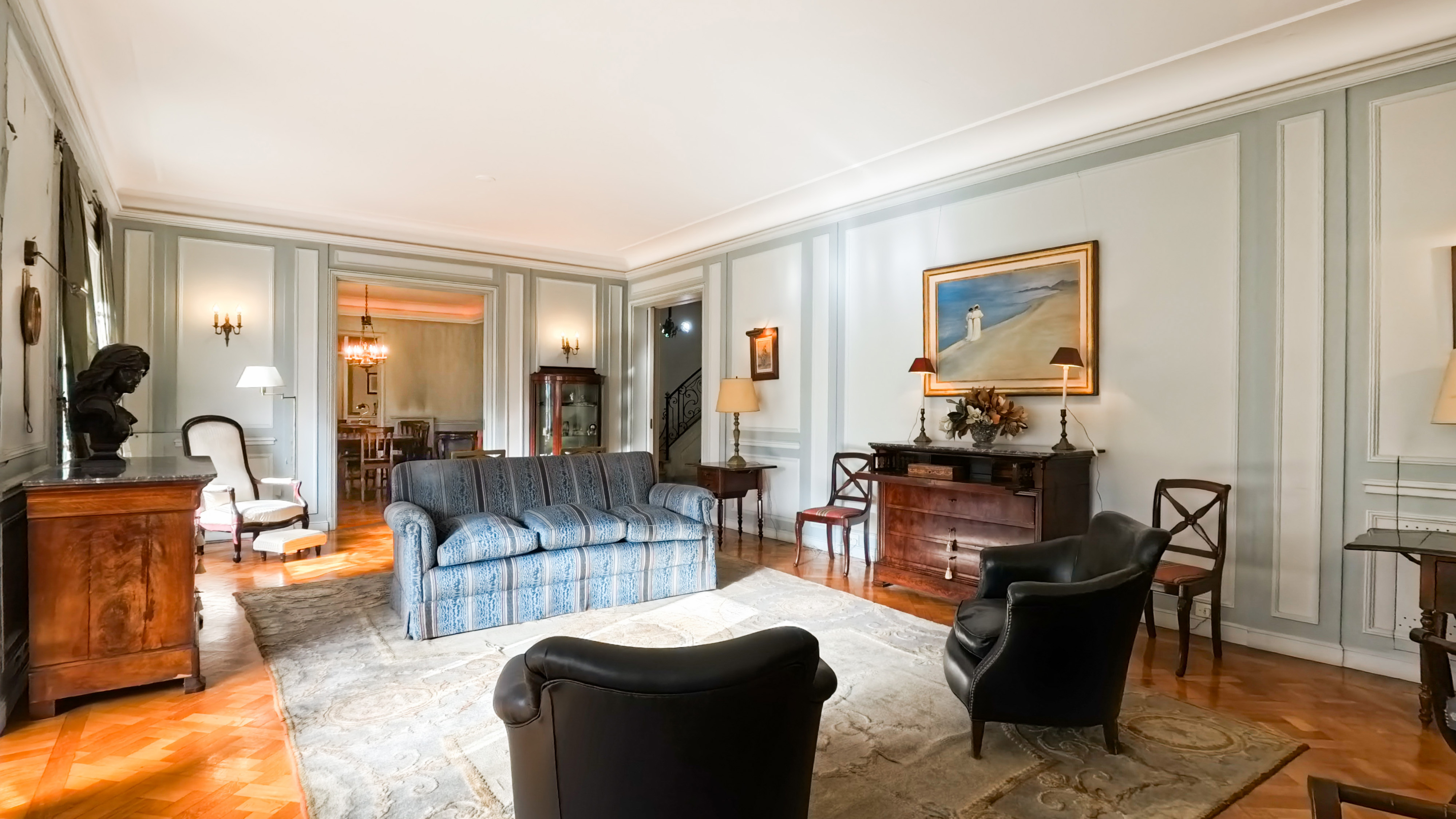 While general renovations are needed—particularly in bathrooms and the kitchen—the property represents a unique opportunity for those seeking a solid, character-rich residence in a highly coveted location. Perfect for a private family home, embassy, or institutional use.