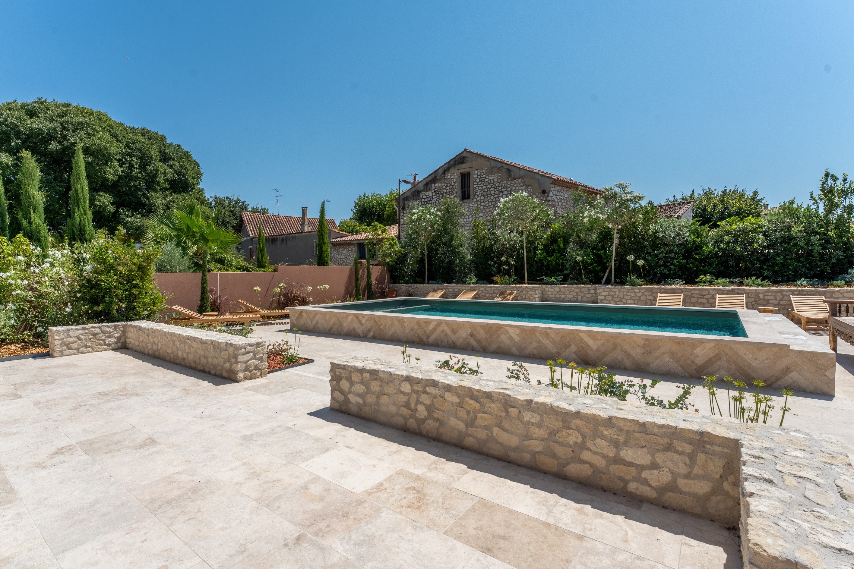 Located in a sought-after neighborhood, just 150 meters from the heart of Saint-Rémy-de-Provence, this magnificent single-story house from the 1960s, carefully restored and fully renovated, combines charm, comfort, and quality features. With its generous proportions, it offers four suites, including a master suite, each with a dressing room and en-suite shower room or bathroom. The vast living area of ​​approximately 90 m², bathed in light thanks to high ceilings, includes a fully equipped contemporary kitchen, opening onto a terrace and a landscaped garden with Provençal trees. Outside, a shaded north-facing terrace allows you to enjoy outdoor dining even during the hot summer months. An elegant heated and secure swimming pool (9x4 m) harmoniously completes this living space, which is private and peaceful, offering a peaceful setting. Two private outdoor parking spaces complete this rare property, a true haven of peace just steps from amenities.