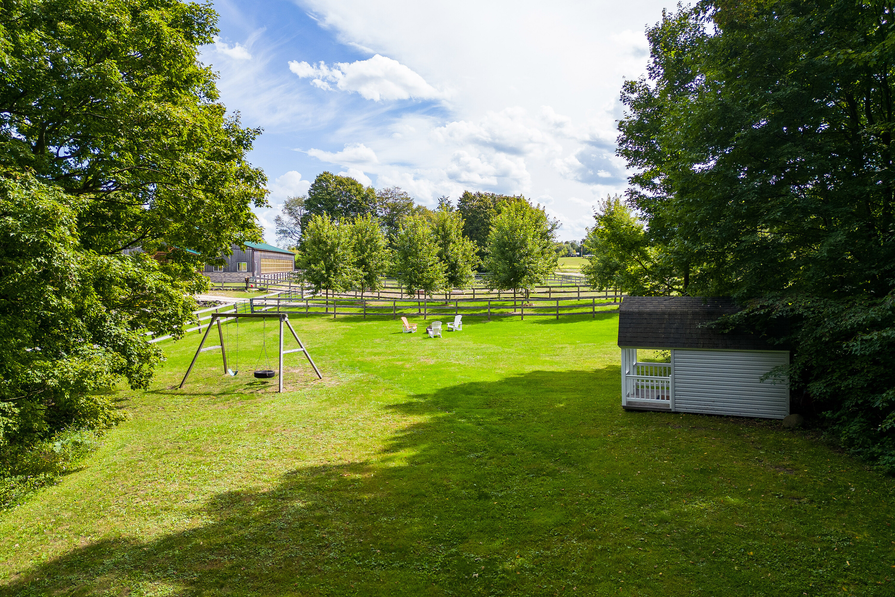 Tucked into the rolling hills of West Grey, Tulip Hill Farm is a 41-acre estate where timeless country charm meets world-class equestrian living. From the moment you arrive along the maple-lined driveway, the setting captures a sense of peace, privacy, and possibility. The beautifully maintained three-bedroom yellow brick century home features an ensuite in every bedroom, original wood floors, warm wood accents, a walkout basement, two laundry rooms and newly built deck overlooking the paddocks and gardens. The grounds include a small orchard with apple and cherry trees, sugar maples, and extensive perennial gardens. A detached two-car garage with insulated workroom, a shed suitable for wood storage or chickens, and a children's loft playhouse with rustic swing set add to the property's appeal. Equestrian facilities are outstanding with a nine-stall insulated barn featuring rubber-matted stalls, three with SoftStall flooring, a heated tack room, feed and hay storage and a cobblestone aisle way. An outdoor three-season wash stall with hot water is also included. The new 130-feet by 60-feet indoor riding arena offers sand footing, abundant lighting, storage and a viewing area. There are over seven oak-fenced paddocks with run-ins and water, along with 18-acres in hay fields and groomed riding trails. A maple-lined drive leads to a large parking area, and a successful test hole has been completed for a future pond expansion. Tulip Hill Farm captures the imagination with beautiful sunsets and sweeping pastoral views offering the chance to live the dream of country life on a gracious equestrian property. Beautifully curated, fully renovated, meticulously maintained and totally turnkey, you'll be delighted to call this country escape home. A1 Zoning means this property has exceptional business and revenue potential. It has been used for boarding and training, as well as a Bed and Breakfast in the past.