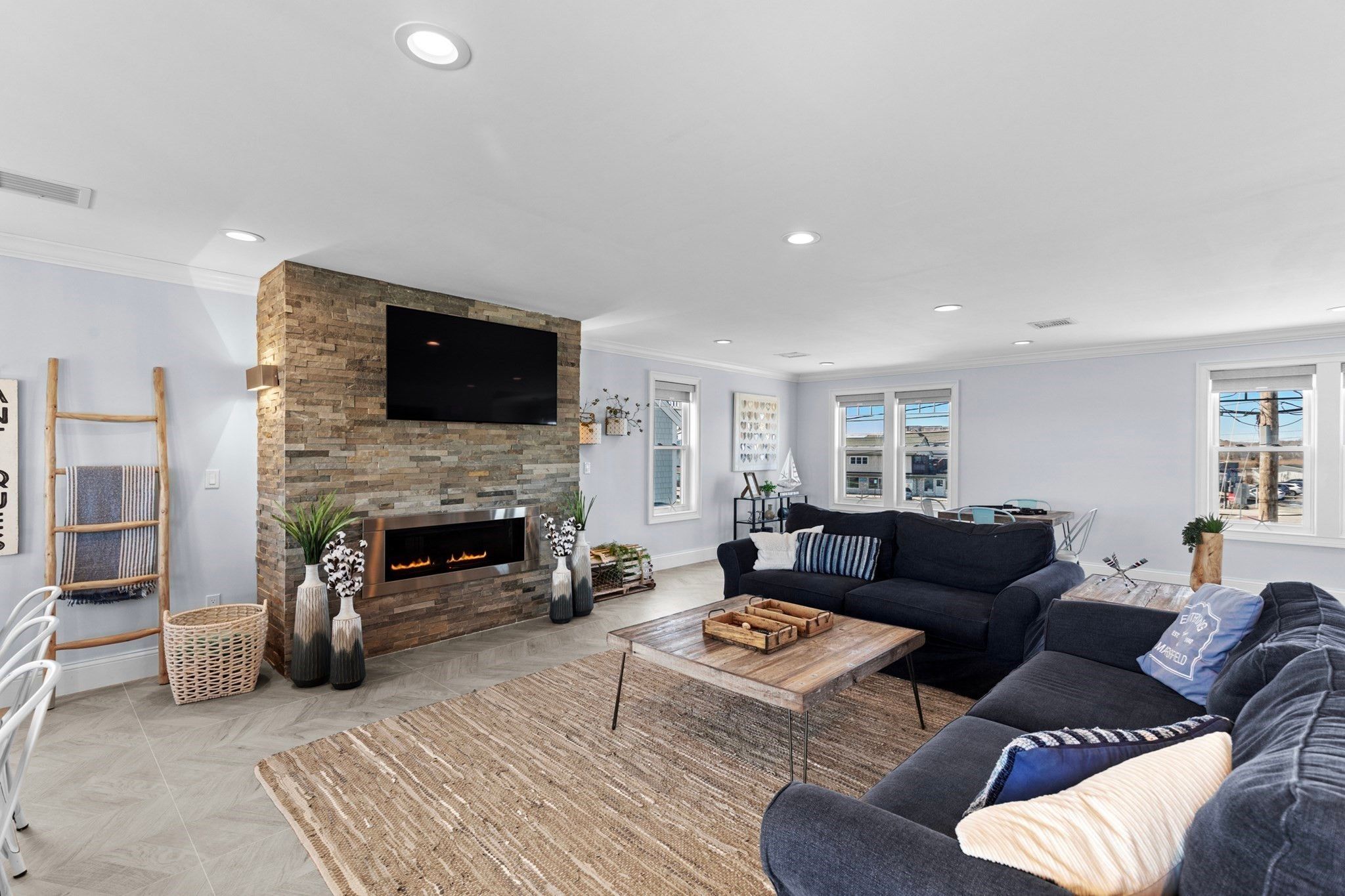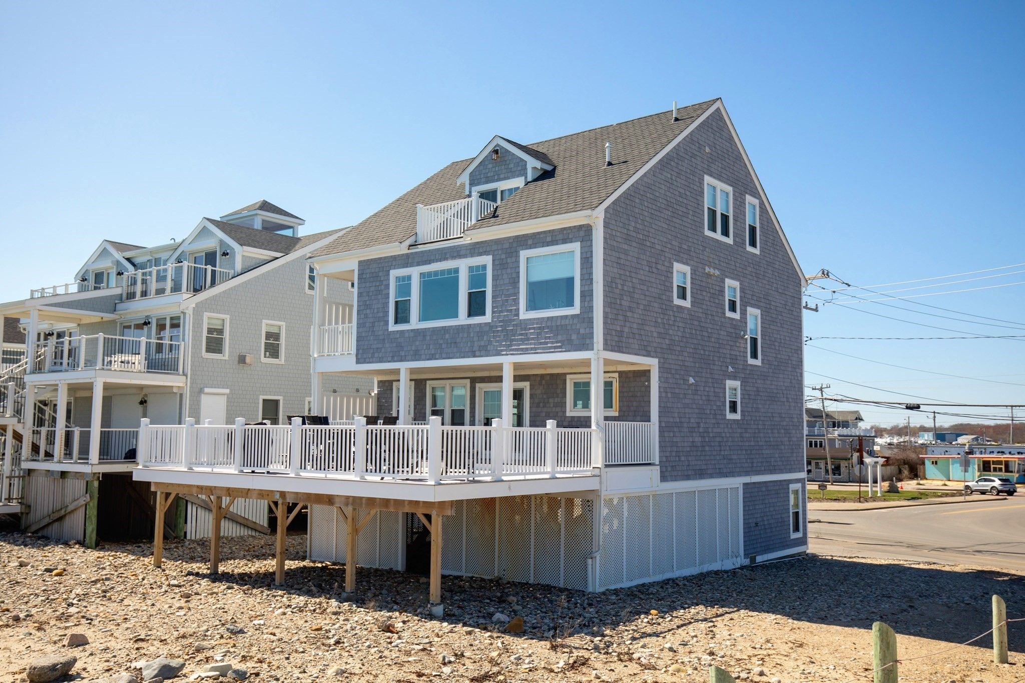 This stunning, fully updated oceanfront home offers the ultimate coastal lifestyle with unparalleled views and top-tier amenities! Spanning three levels, it provides ample space and tranquility to enjoy the mesmerizing ocean waves! The main level features an open-concept design with expansive ocean views, a gas fireplace, and elegant tile floors. The modern kitchen is a chef’s dream, boasting quartz countertops, high-end cabinetry, and premium appliances. On the 2nd floor, the primary suite offers a luxurious escape with a private deck and a spa-like ensuite, with a soaking tub, walk-in shower, and radiant heated floors. Two additional spacious bedrooms and a charming reading nook complete this level. The third floor is a versatile bonus space, perfect as a family game room or additional bedroom, featuring a private deck, full bath, and stunning views. Every detail of this home has been meticulously upgraded and includes an outdoor shower, large lot for parking and space for your boat, and an expansive deck!
