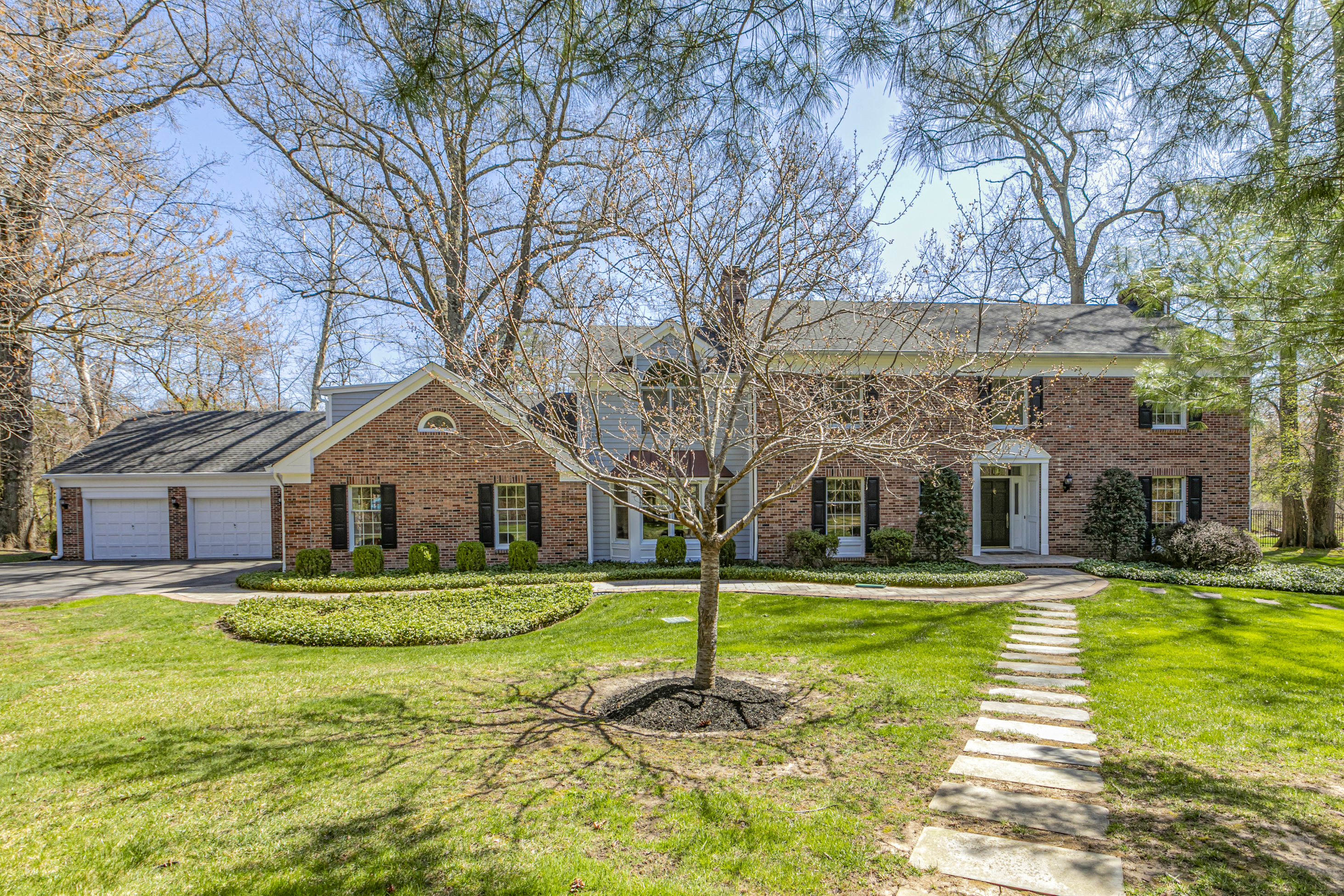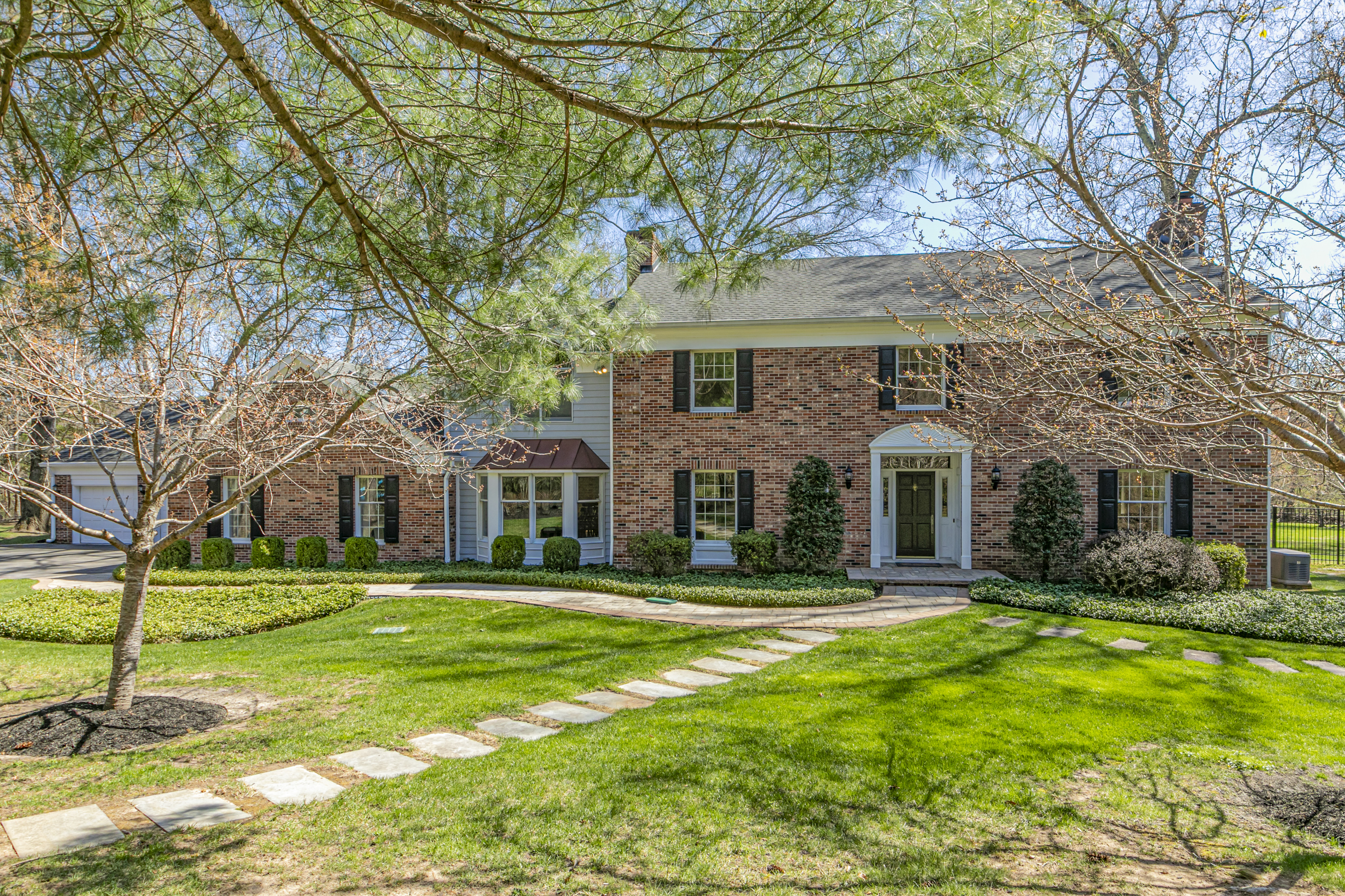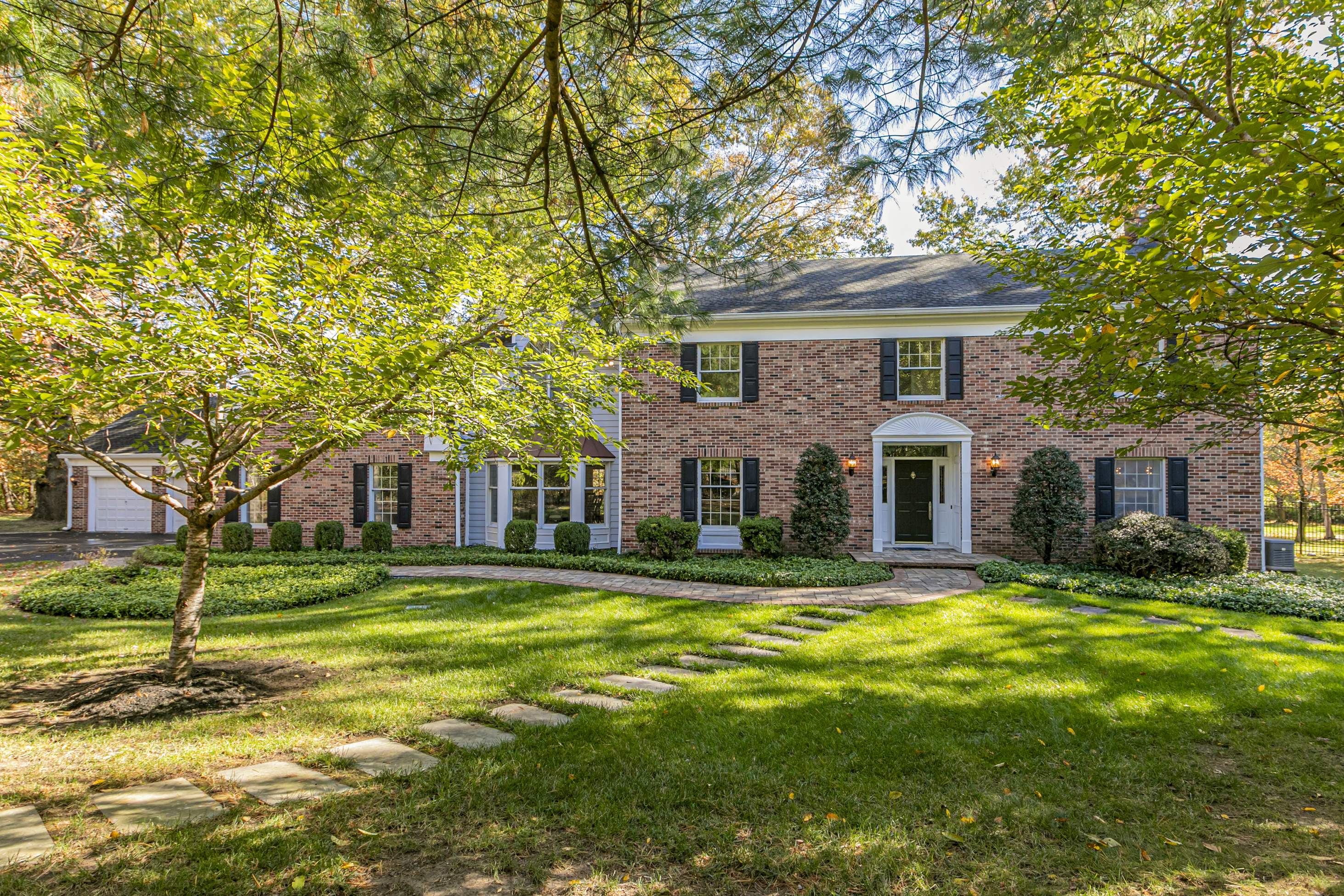 From the solid-brick construction to the impressive address, this gated home is intriguing from the start. One look at the private, nearly four-acre yard, where nature’s beauty is on full display, and you’re sure to be smitten! Inside, sunny space abounds, especially with a converted great room lined with big windows and topped with a skylit cathedral ceiling. A loft and loads of built-in storage let this valuable wing serve myriad needs. The home’s more traditional rooms include a front-to-back living room and an open dining room, both with fireplaces and hardwood floors. The central kitchen, equipped with a new fridge, Bosch dishwasher and double ovens, adjoins the breakfast room, where wide sliders open to a sprawling paver patio surrounding a pool and integrated spa. An office quietly situated beside the marble-floored powder room makes the main level complete. Atop the stairs, an updated hall bathroom serves two corner bedrooms. Two more bedrooms have baths en suite and stunning views of the grounds, including the airy, multi-room primary with endless potential. Laundry is located both upstairs and in the basement, a perk that will be appreciated when entertaining poolside. A pretty breezeway connecting the garage is another well considered touch that demonstrates the comfortable livability of this utterly refined home.