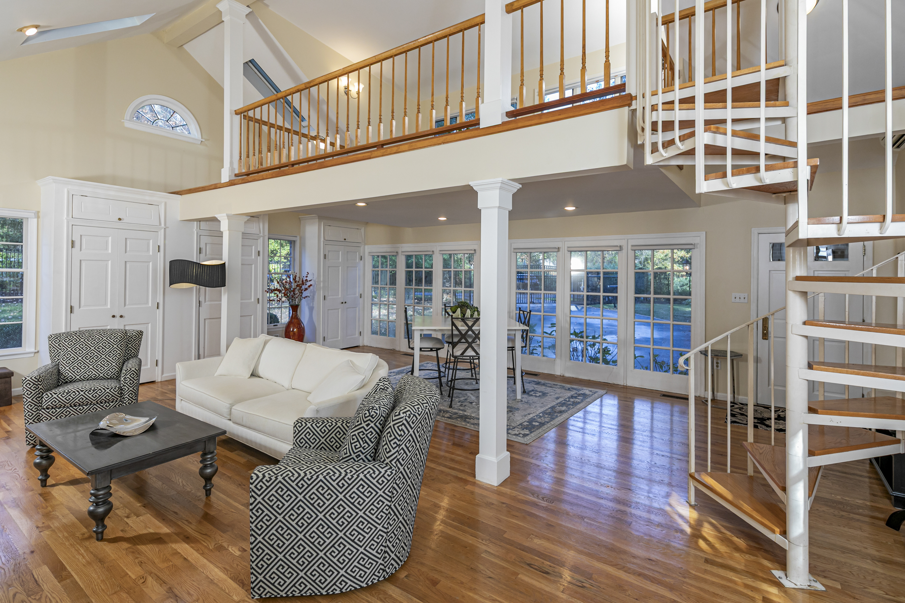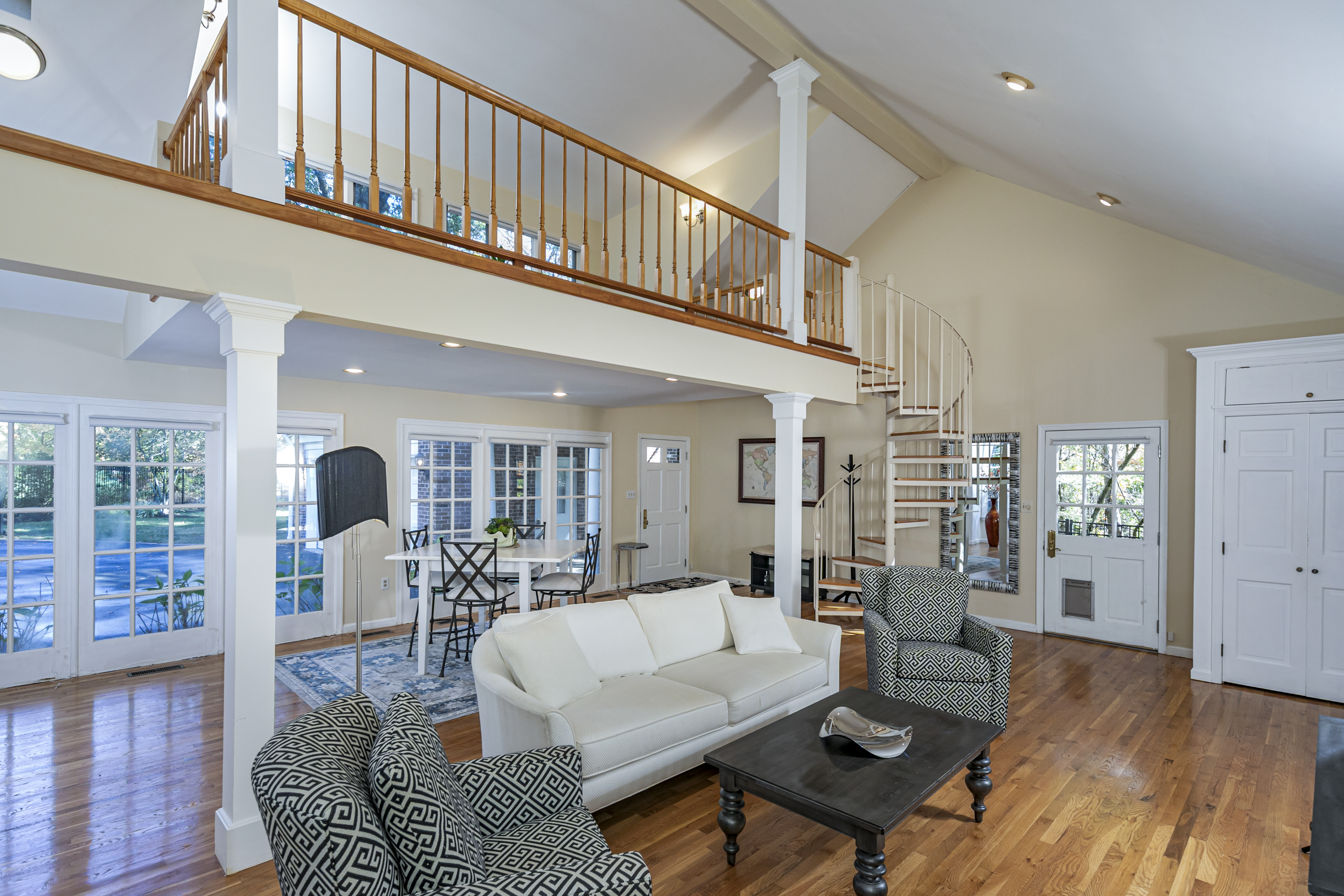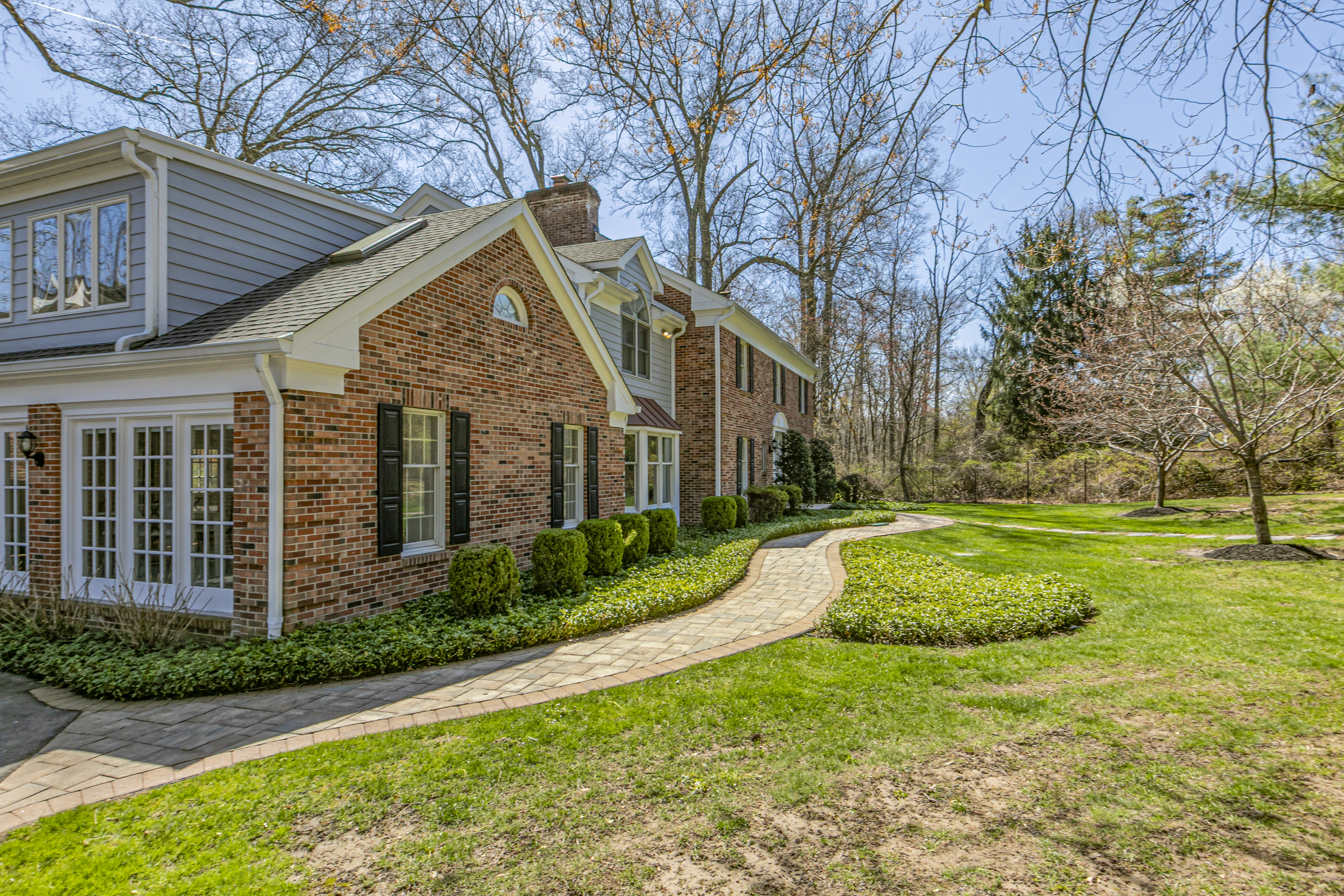 From the solid-brick construction to the impressive address, this gated home is intriguing from the start. One look at the private, nearly four-acre yard, where nature’s beauty is on full display, and you’re sure to be smitten! Inside, sunny space abounds, especially with a converted great room lined with big windows and topped with a skylit cathedral ceiling. A loft and loads of built-in storage let this valuable wing serve myriad needs. The home’s more traditional rooms include a front-to-back living room and an open dining room, both with fireplaces and hardwood floors. The central kitchen, equipped with a new fridge, Bosch dishwasher and double ovens, adjoins the breakfast room, where wide sliders open to a sprawling paver patio surrounding a pool and integrated spa. An office quietly situated beside the marble-floored powder room makes the main level complete. Atop the stairs, an updated hall bathroom serves two corner bedrooms. Two more bedrooms have baths en suite and stunning views of the grounds, including the airy, multi-room primary with endless potential. Laundry is located both upstairs and in the basement, a perk that will be appreciated when entertaining poolside. A pretty breezeway connecting the garage is another well considered touch that demonstrates the comfortable livability of this utterly refined home.