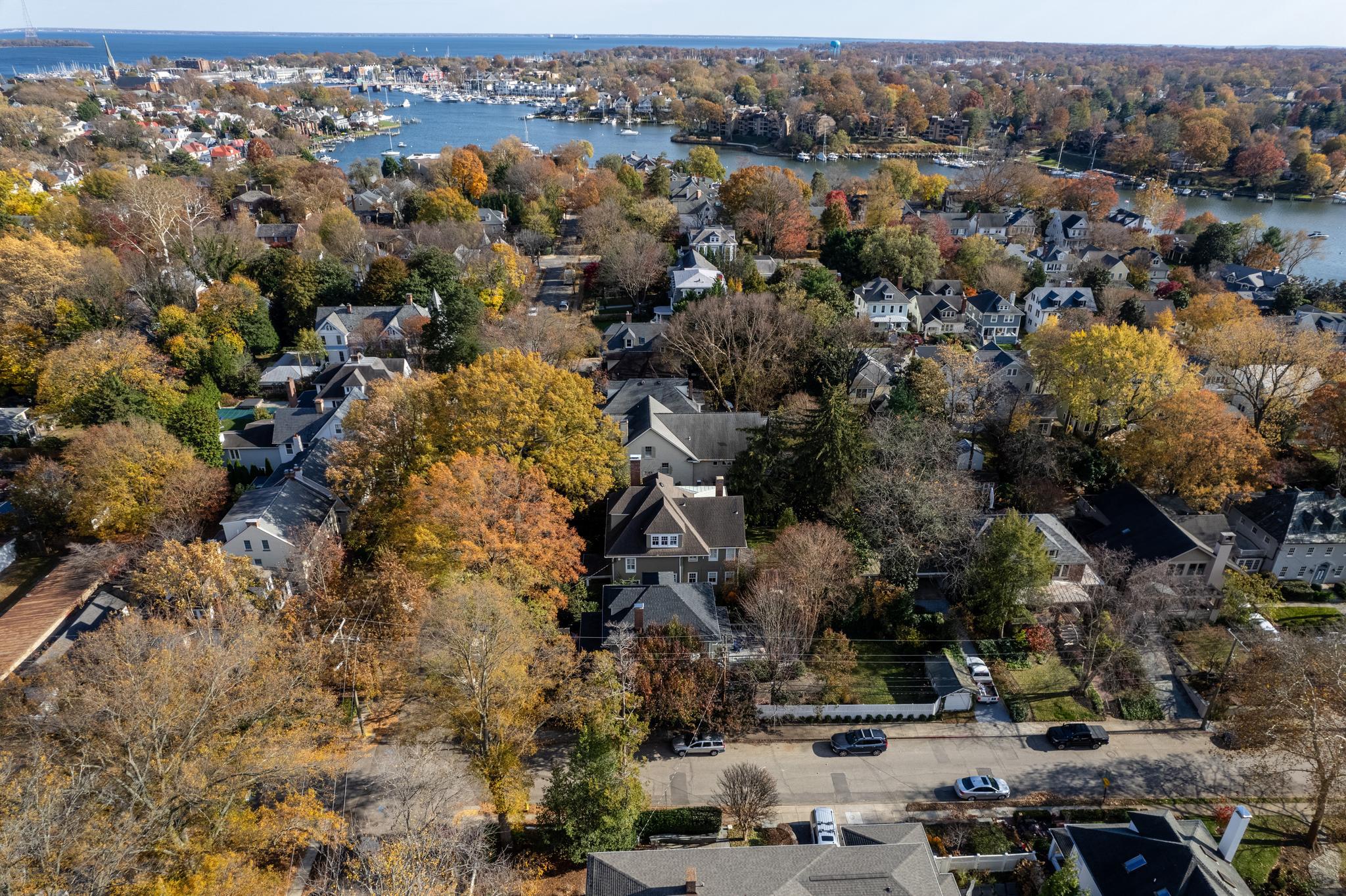 This Murray Hill masterpiece is a 5-bedroom, 4 bathroom home that was originally built in 1913 and underwent a complete custom renovation a few years ago. Situated on a double lot on one of the most desirable streets in Annapolis. It blends formal sophistication with modern luxuries including an elevator! Tucked behind the home is a surprising expansive lot that feels much larger than you would expect, framed by mature trees and landscaping, the back yard offers rare privacy. Offering private driveway, a two-car garage with separate storage room. The home features over 7,000 sq ft, state-of-the-art custom kitchen with two dishwashers, first and second floor laundry rooms, electric window blinds, screened-in-porch, a fully fenced yard, irrigation system, mature landscaping, two fireplaces, high ceilings, crown and dental molding, custom cabinetry throughout, two zones of HVAC, full service security system with cameras. Generous primary suite with fireplace, his and hers closets, marble shower and dual vanities. This property is a one of a kind and must see.