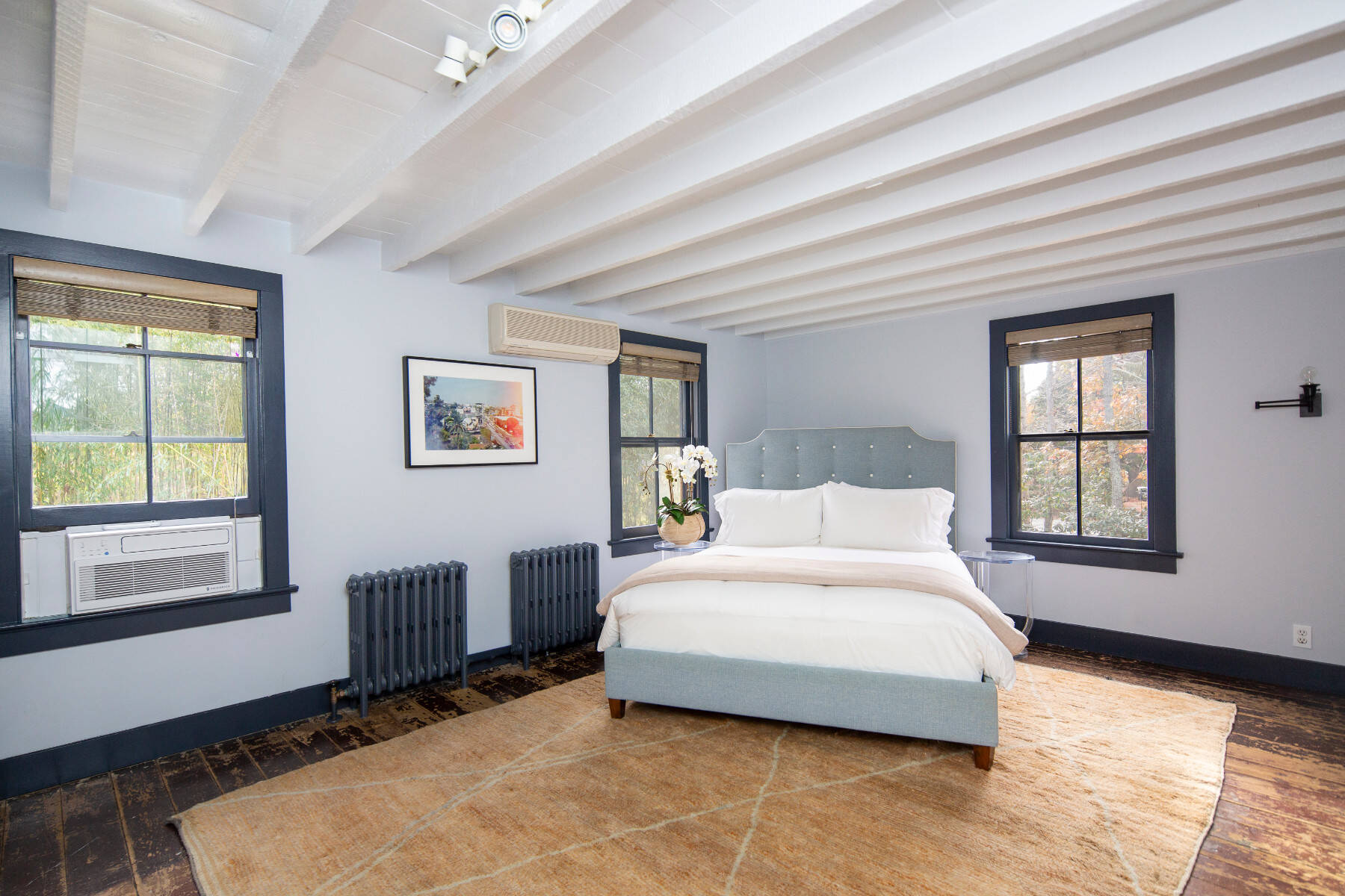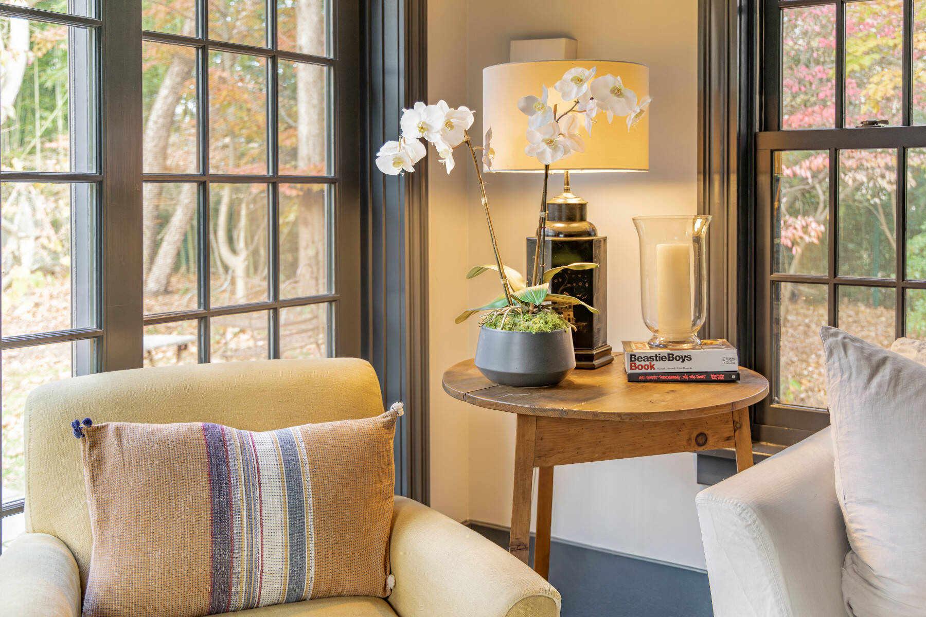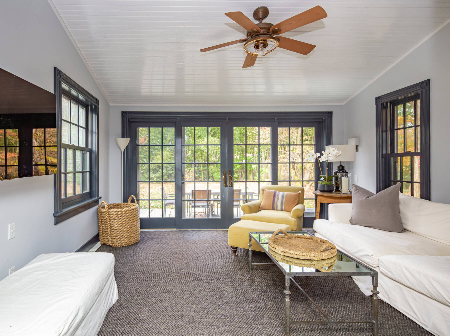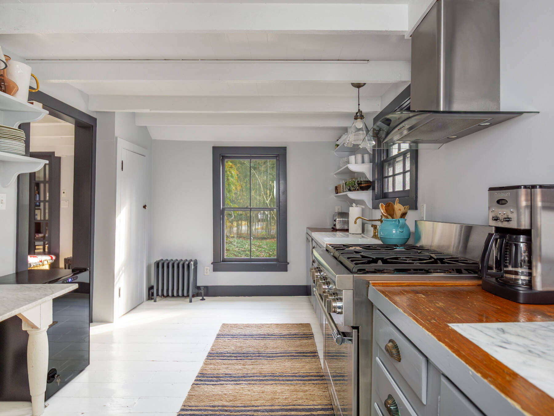 Tucked away on a quiet lane near Amagansett Village, this beautifully restored 1870s Federal farmhouse balances timeless character with sophistication. Just moments from town, the ocean, and favorite farm stands, it offers the quintessential Hamptons retreat. Inside, the 1,755-square-foot home is bright and welcoming, with white-painted wide-plank floors and exposed beams that create a relaxed coastal rhythm. The living room, anchored by a classic fireplace, opens to an all-season sunroom/TV room with white brick flooring and mullioned sliding doors that frame views of the surrounding gardens. Period details include original windows and soft blue-gray moldings, lending an authentic patina. An open dining area connects to the eat-in kitchen, where open shelving, stainless appliances, and an adjacent pantry/laundry room combine function with style. The sunroom, offers a perfect guest hideaway or flexible third sleeping space next to a full bath with a vintage claw-foot tub . Upstairs, the primary suite includes a gas fireplace and TV, a second bedroom with TV, a cozy reading nook with built-ins, and a thoughtfully designed full bath. Set on a half-acre shaded by mature oak, beech, and cherry trees, backyard dining area with gas BBQ, this Amagansett farmhouse embodies the appeal of village living, charming, chic, and just minutes from everything that makes this coastal hamlet so beloved. [[Rental Registration # 25-817]] EH RR #: 25-817