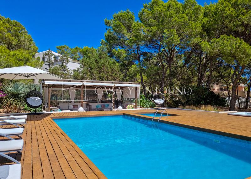 Outside, there is a 10x5m² swimming pool, as well as a jacuzzi and two large covered chill-out areas surrounded by garden. Technical room, large cisterns. All refurbished with excellent taste, to enjoy unforgettable days in a natural and sunny environment. In addition, the house enjoys a strategic and privileged location on the island, with easy access by car.