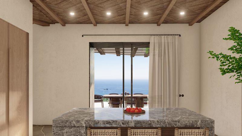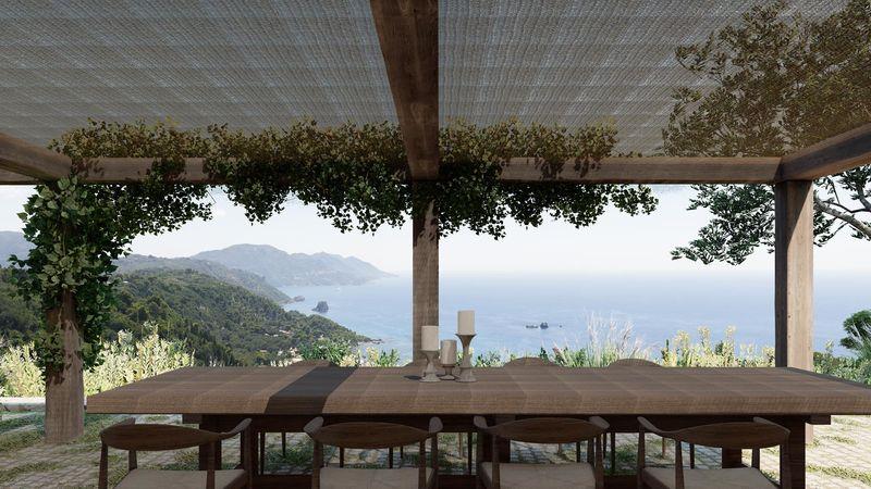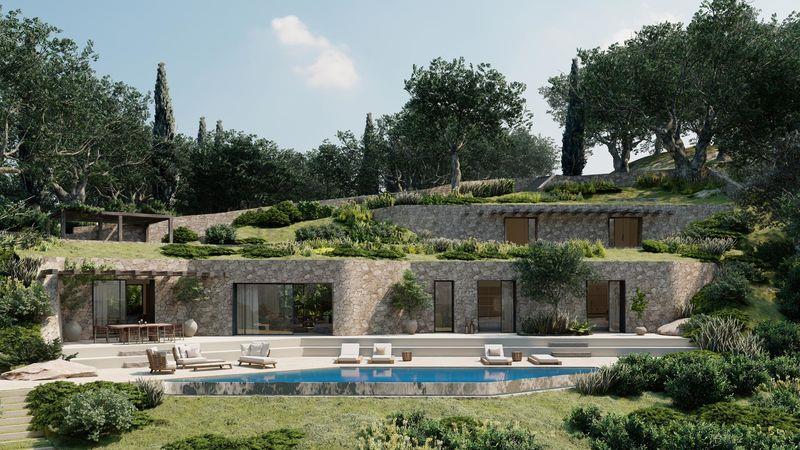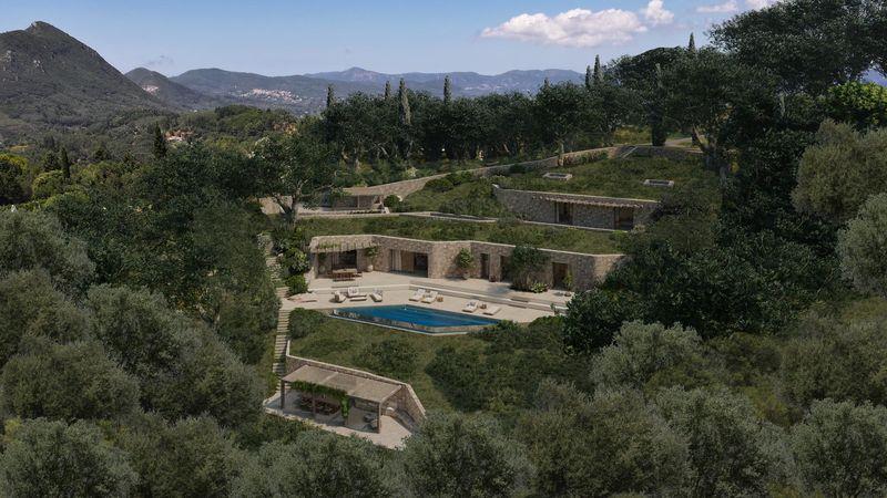 Prima Cavea is a stunning, bespoke 5-bedroom earth home with an amazing hillside location in Pelekas, west Corfu. Enjoying magnificent views of the beach below, the coast and sea, the property is hidden away within the natural landscape and offers total privacy, peace, and tranquility. A really special exclusive location and unique design for your home on the island.