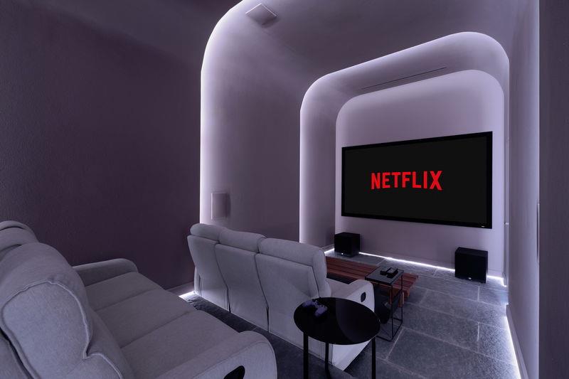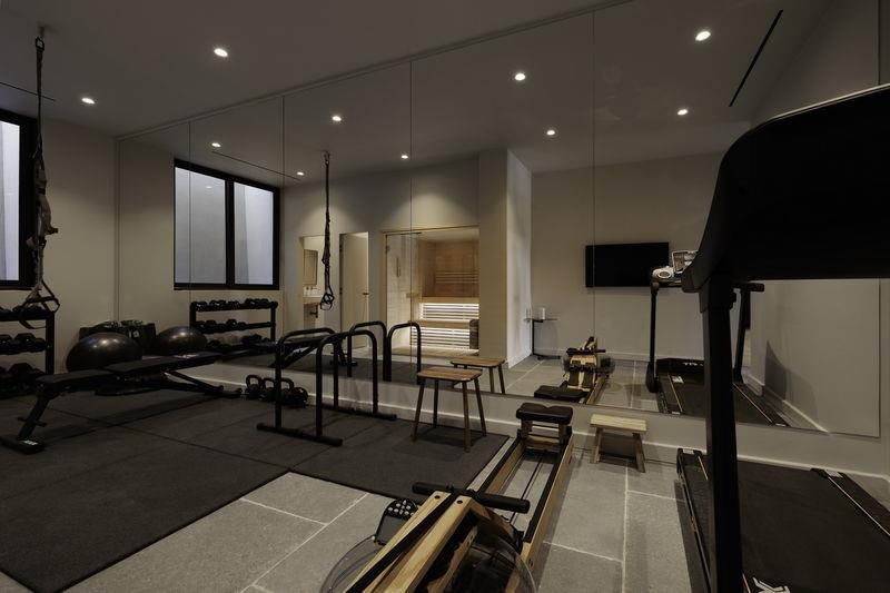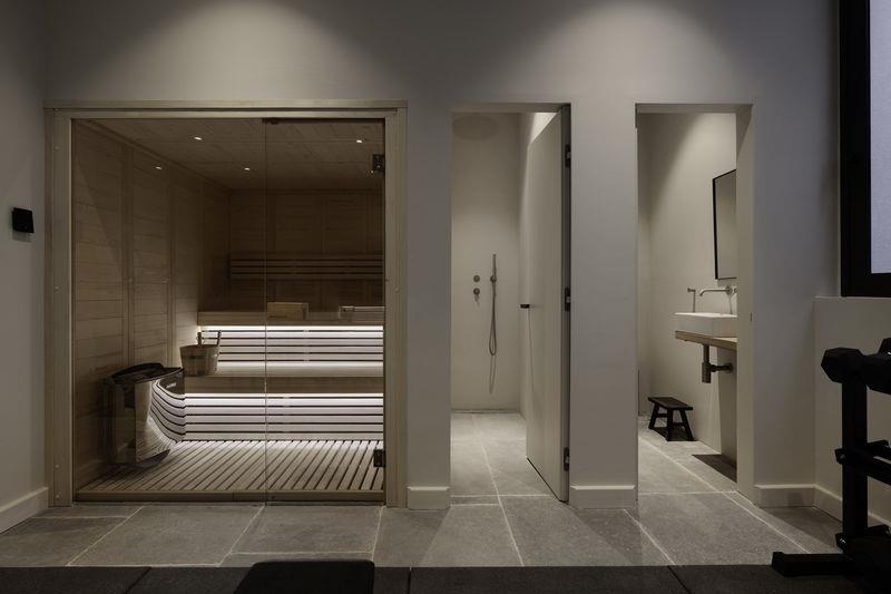 The lower level, which has access to the lower gardens and pool area, has a further 3 large bedrooms all with ensuite bathrooms and fitted wardrobes. Two have direct access to the gardens and pool and enjoy the stunning views. There is a laundry room, storage, and wine cellar as well as a further sitting area. This lower level is also all about health, wellbeing, and entertainment – there is a state-of-the-art private cinema, a gym with spa area, a sauna and a further bathroom.