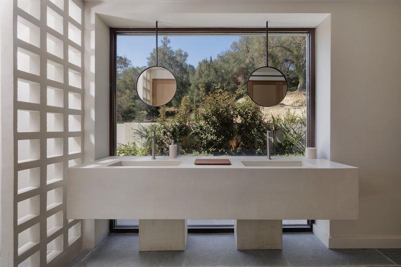 The villa is set within a plot of 6,066 sqm with its main access via a quiet road at the top of the land and a further road access at the bottom, that is closer to the beach. A private electronic gate leads into the grounds, the private parking and villa. Fully landscaped with a wonderful flow over two levels, the beautiful external areas and gardens have numerous terraces that are just magical for sitting, relaxing, or soaking up the sun all surrounded by wonderful olive trees, flowers, and shrubs. There is an external kitchen and dining area, and let’s not forget the private pool – 14 metres in length, this stunning infinity pool with paved sun terrace is positioned for you to make the most of the tranquil environment and stunning views.