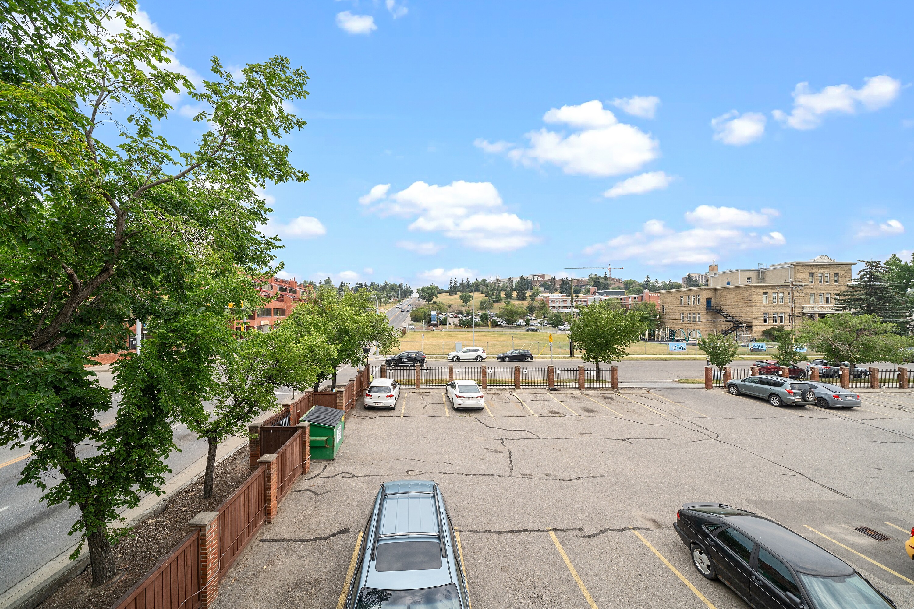 This 2-bedroom end unit is ideally located in an adult-only (18+) building in the sought-after inner-city community of Hillhurst, offering a comfortable, well-laid-out home with excellent access to everything the city has to offer. With over 860 square feet of interior space, the layout is open and practical, with generously sized rooms and abundant natural light throughout. Large sliding doors connect the living area to a spacious balcony with open views, creating an easy indoor–outdoor flow that works just as well for everyday living as it does for casual entertaining. The dining area is well proportioned and flows naturally into the galley-style kitchen, which features newer stainless steel appliances, ample cabinetry, and efficient counter space. Both bedrooms offer excellent scale and storage, with large closets and convenient access to the 4-piece bathroom, which includes thoughtful built-in storage. Additional features include a common laundry room and an assigned off-street parking stall. The location is a standout — just minutes from the Bow River pathway system, Riley Park, and the shops and cafés of Kensington, with quick access to downtown, SAIT, U of C, Foothills and Children’s Hospitals, and transit. Whether commuting, studying, or enjoying the surrounding amenities, this home offers a balanced and well-connected lifestyle. A solid opportunity to own in one of Calgary’s most established inner-city neighbourhoods, with the added value of one year of condominium fees paid by the Seller, payable on completion and adjusted on the Statement of Adjustments.