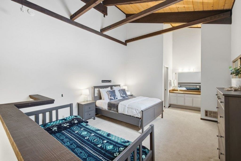 Exceptional mountain top retreat, 2 bedroom, 2 bathroom condominium offering a perfect blend of rustic tranquility and modern mountain living. Contemporary architectural style, featuring vaulted ceilings with large picture windows that capture the outdoor views and abundant natural light. The open-concept living, dining, and kitchen area is the heart of the home, complimented by a woodstove with stone hearth in the corner. Two spacious bedrooms provide comfortable accommodations and separation. The primary suite includes a private en-suite bathroom and walk-in closet. Stacking washer and dryer in the unit and an attached 1-car garage for parking and storage. The setting provides a true escape, offering year-round recreational opportunities: Winter: Direct access to world-class skiing and snowboarding, as well as nearby snowshoeing and cross-country trails. The property is ideally situated just minutes from the chairlifts of Alpine Meadows and Palisades Tahoe ski areas, providing unparalleled accessibility for winter sports enthusiasts. Summer/Fall: Surrounded by hiking and biking trails, with crystal-clear streams and alpine lakes just a short distance away. Alpine Springs Park offers tennis courts, a sports field and a swimming pond. This condo is perfect for a small family, a pair of couples, or an individual seeking a high-quality mountain retreat with exceptional convenience to outdoor recreation.