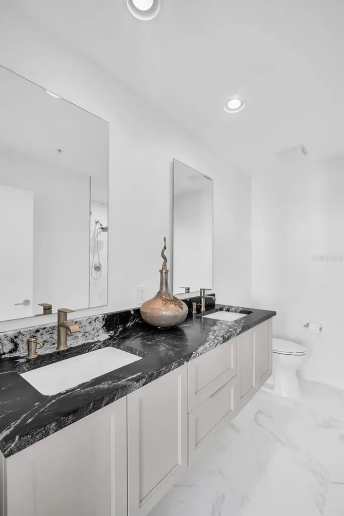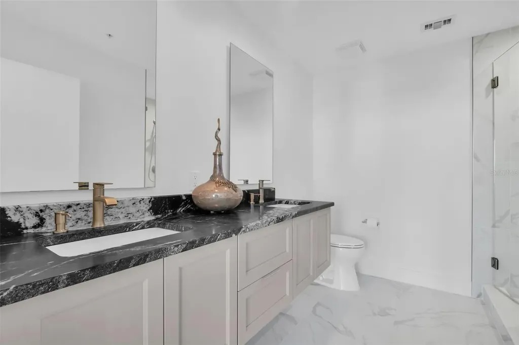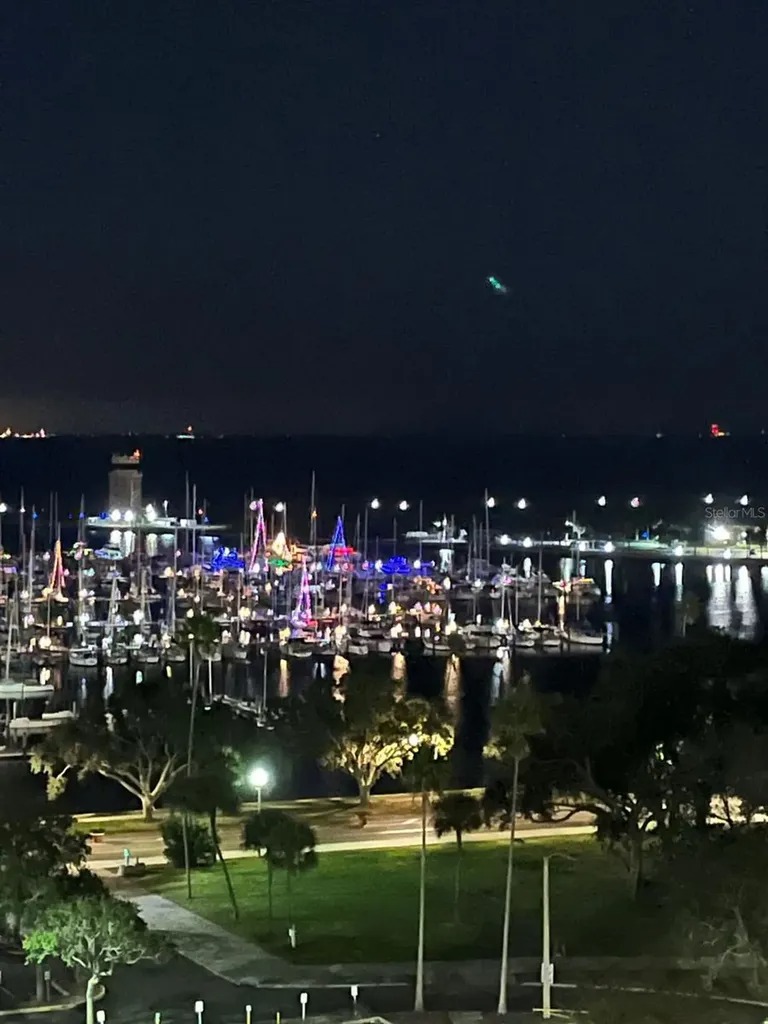 One or more photo(s) has been virtually staged. Spacious elegance. Walls of glass. Waterfront Balconies.This extraordinary residence is defined by light, scale, and jaw-dropping views. With two unobstructed waterfront balconies, the home overlooks Tampa Bay, The Pier, two marinas, the Saturday Morning Market, and the dynamic energy of Albert Whitted Airfield. A total of 36 floor-to-ceiling windows wrap the main living spaces, creating the feeling that every room is suspended above the water.A grand entry sets the tone, opening into an expansive layout designed to impress. The oversized primary suite offers a serene retreat with an enlarged, custom closet featuring adjustable shelving and a spa-inspired bath accented by custom-cut granite countertops and integrated soap dispensers.The guest suite is equally impressive-easily accommodating a king bed or dual twins with ample furniture-and is elevated further by its own private waterfront balcony, delivering an unforgettable guest experience.A stylish powder room adds a touch of playful sophistication with an LED color-changing faucet, a detail guaranteed to surprise and delight.The kitchen is a true statement piece. A dramatic granite waterfall island anchors the space, complemented by a full granite backsplash that extends seamlessly to the ceiling. The extra-wide countertop offers generous bar seating, while the custom-cut, leathered granite subtly sparkles as evening light washes across the room.The glass-wrapped dining area flows effortlessly into a spacious living room designed to accommodate an 85-inch or larger television, without sacrificing elegance. Kitchen, dining, and living spaces all open directly to the main balcony-creating a seamless indoor-outdoor experience framed by sweeping bay views. Two premium parking spaces and a convenient storage unit are also included.Residents enjoy full-service amenities including 24/7 concierge, a resort-style infinity pool surrounded by lush landscaping, private cabanas, outdoor grilling areas, refined social spaces, and a state-of-the-art fitness center.Step outside and into the heart of St. Petersburg, consistently ranked among the nation's most livable and walkable cities. From the 2.4-mile waterfront park and world-class museums to marinas, dining, shopping, and the iconic St. Pete Pier, everything that defines downtown living is just moments away.This is a rare opportunity to own a dramatically upgraded waterfront residence in one of downtown St. Petersburg's most iconic luxury towers.