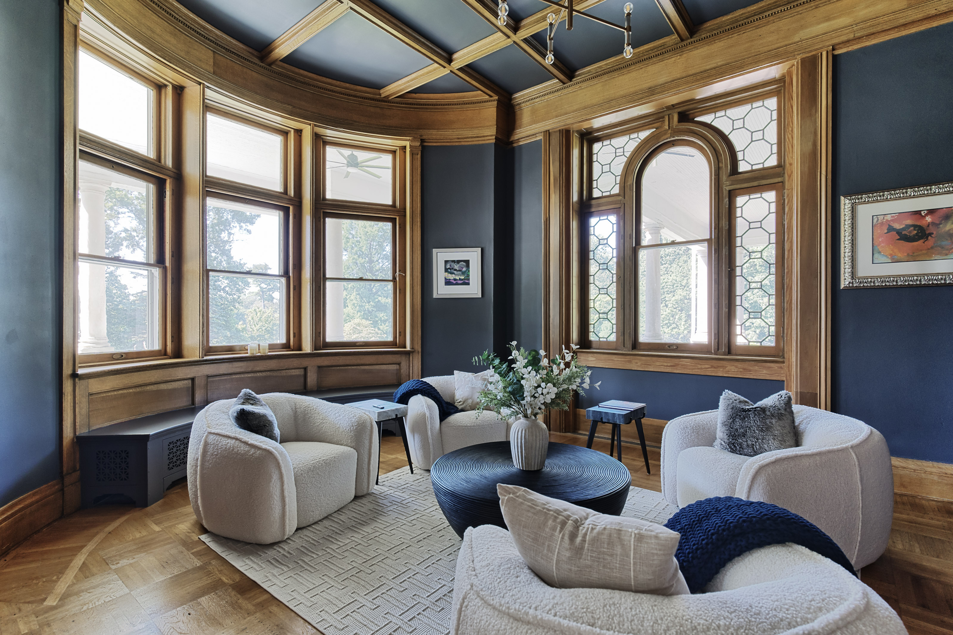 Welcome to the iconic Shirley Mansion at 2106 Homewood Drive, a one-of-a-kind estate situated on 5 breathtaking acres in one of Anchorage's most desirable locations and within the renowned Anchorage School District. Known for its timeless elegance and thoughtful renovations, this historic property seamlessly blends classic architecture with modern luxury. The main residence features 5 spacious bedrooms, 4 full bathrooms, and 2 half baths, along with a 4-car garage and a stunning 2024 addition. The new wing includes a luxurious primary suite, spa-inspired bathroom, handsome home office, cozy sitting area, and a cutting-edge golf simulator—ideal for today's lifestyle. The lower level of the addition includes garage entry, a media/theater room, and a mudroom with built-in cubbies and organizational space. At the heart of the home lies a gourmet kitchen with an oversized island, stainless steel appliances, and a striking brick-encased stove, perfect for entertaining. Additionally, the scullery adjacent to the kitchen offers ample space for meal preparation and a sizable farmhouse sink. The home also offers a formal dining room, an inviting study, a grand living room, ornate staircases, and hardwood floors throughout. The estate's outdoor living is just as impressive. The 5-acre setting is beautifully landscaped and incredibly private, complete with a full-size tennis court and a custom tennis pavilion. The pavilion offers a living room, bathroom, and a versatile lower level that can function as a guest bedroom, yoga studio, home gym, or entertaining lounge. Combining historic charm with every modern amenity, 2106 Homewood Drive is a true Anchorage treasure perfectly suited for both refined living and unforgettable entertaining.