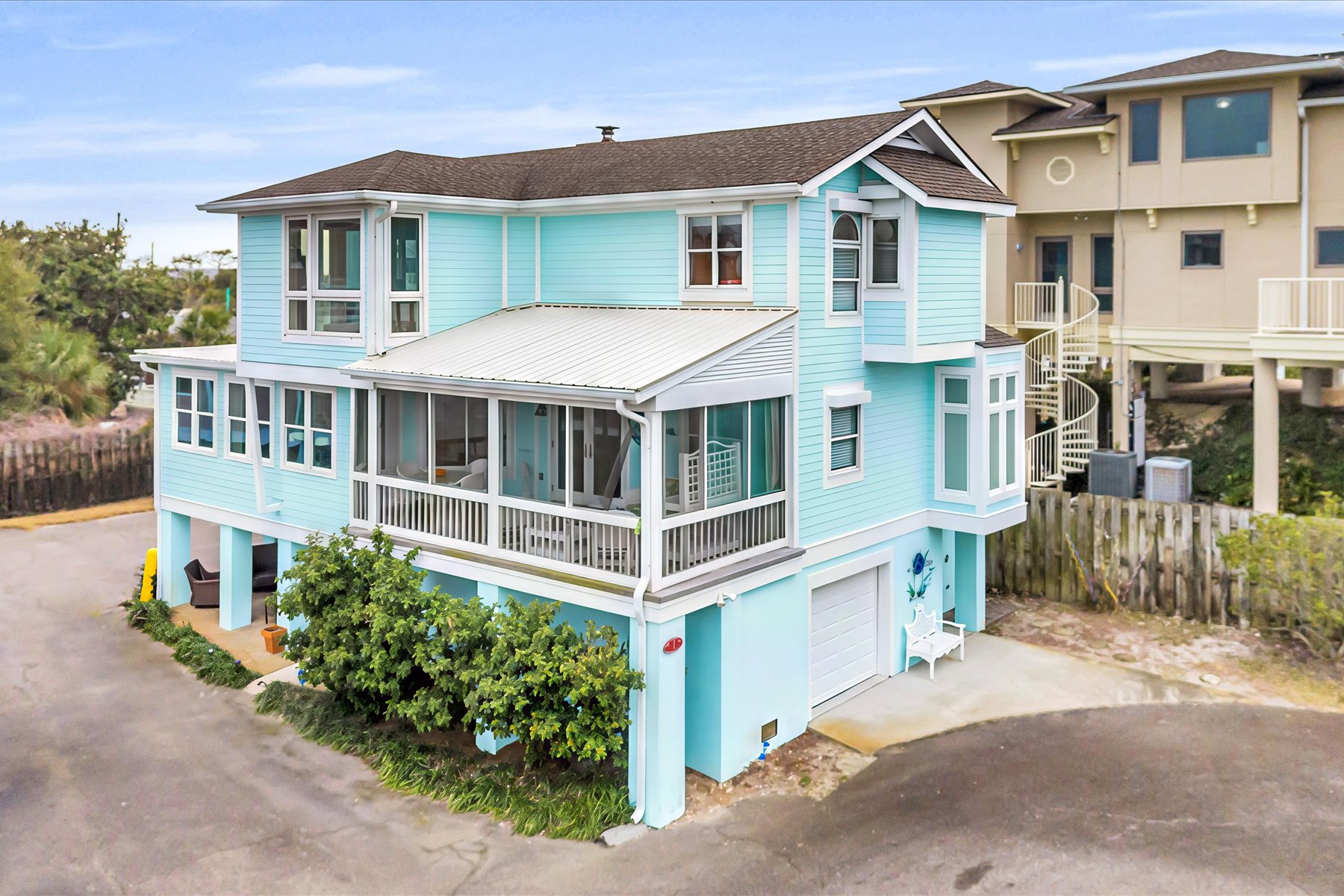 Own a spacious home, in a gated oceanfront community of just 4 other homes, complete with four bedrooms, four bathrooms, garage, and boardwalk access to the beach. Three story home comes fully equipped with elevator access, each floor featuring its own bedroom with oceanfront view, and full bathroom. The primary suite, on the top floor, has a private balcony with views of the lighthouse, as well as a Birds Eye view the Atlantic Ocean. The entertaining floor has an open plan, with several living and dining space options. Light and bright kitchen leads directly into your dining area and screened-in porch; ideal for al fresco dining by the ocean. A fully enclosed sunroom provides the exterior, all-weather space and ocean views for windy, rainy beach days. Comfortable family room space with gas fireplace is perfect for the winter, making this the ideal year-round beach home. There is an adjacent, buildable oceanfront lot across the cul-de-sac that could be included with purchase, separate listing includes both at a different price. Walkable Fort Screven area features the Tybee Lighthouse, Marine Science Center, Jaycee Park, the Tybee Island Dog Park.