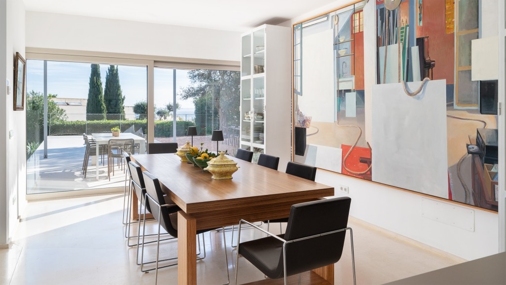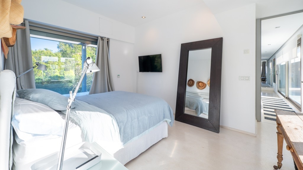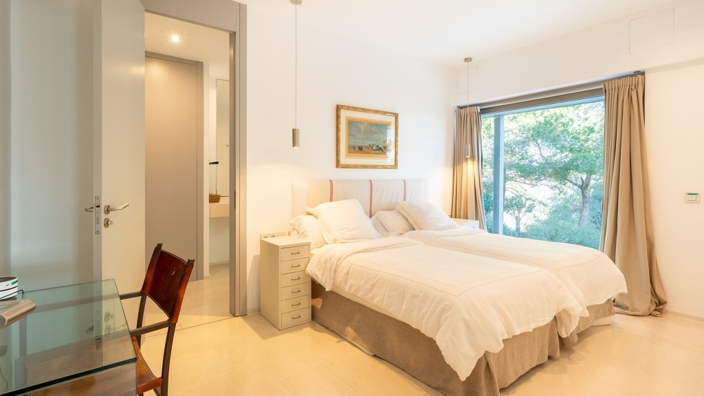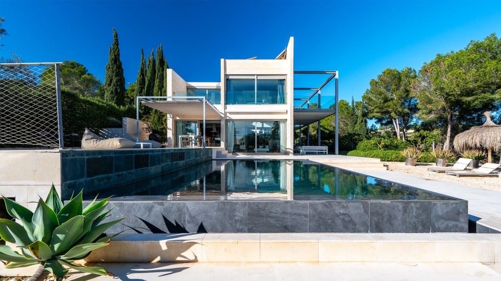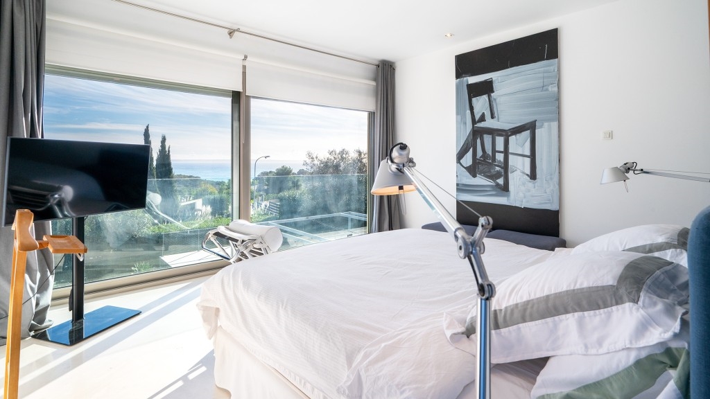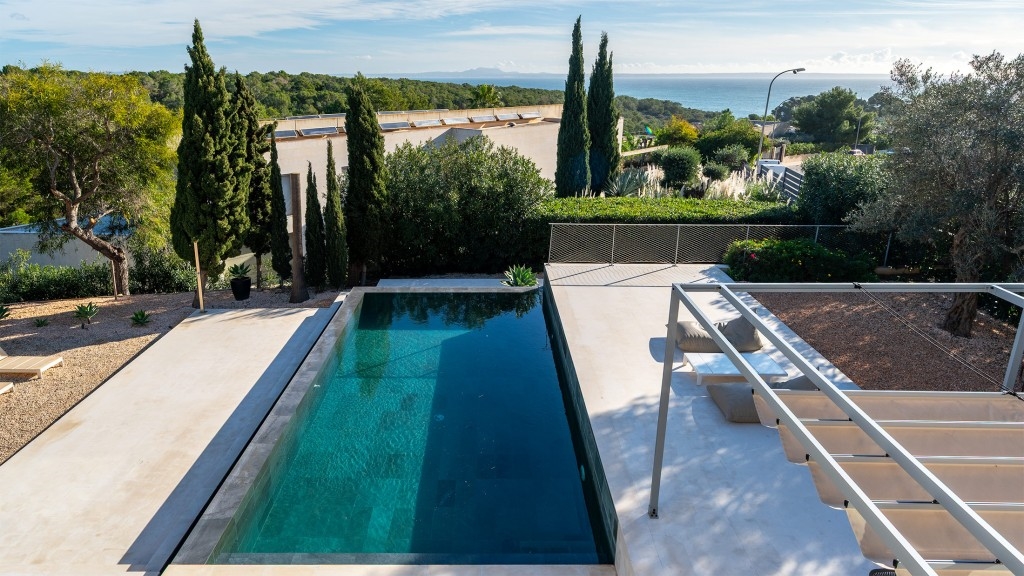 This impressive villa, furnished with exquisite taste, is located in an elevated position near the sea and offers stunning views of the bay of Palma. The property has a large infinity pool surrounded by a well-tended Mediterranean garden, as well as several covered and uncovered terraces with a chill-out area and barbecue.With approx. 450 m² spread over 2 floors, the property has 4 double bedrooms with en-suite bathrooms. The house is fully air-conditioned and has a modern, fully equipped kitchen. The exclusive furniture in all rooms creates a unique atmosphere of well-being.Furthermore, this villa is the ideal starting point for golf and cycling lovers.Locality and places of interestSol de Mallorca in the municipality of Calvia is a growing urbanization front line to the sea close to the beautiful beach of Portals Vells, the nudist beach Playa del Mago and the Poniente Golf Club. It enjoys easy access to a number of leisure areas, marinas, golf courses and beaches and is only 10 minutes away from the prestigious Puerto Portals as well as 20 minutes from the centre of Palma. Many of its residents are foreigners making the most of the lovely Majorcan climate.