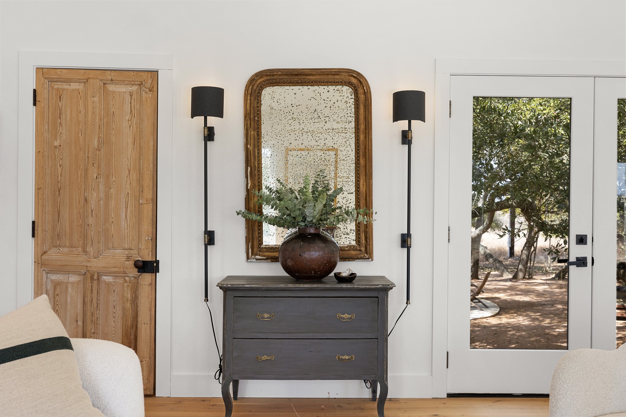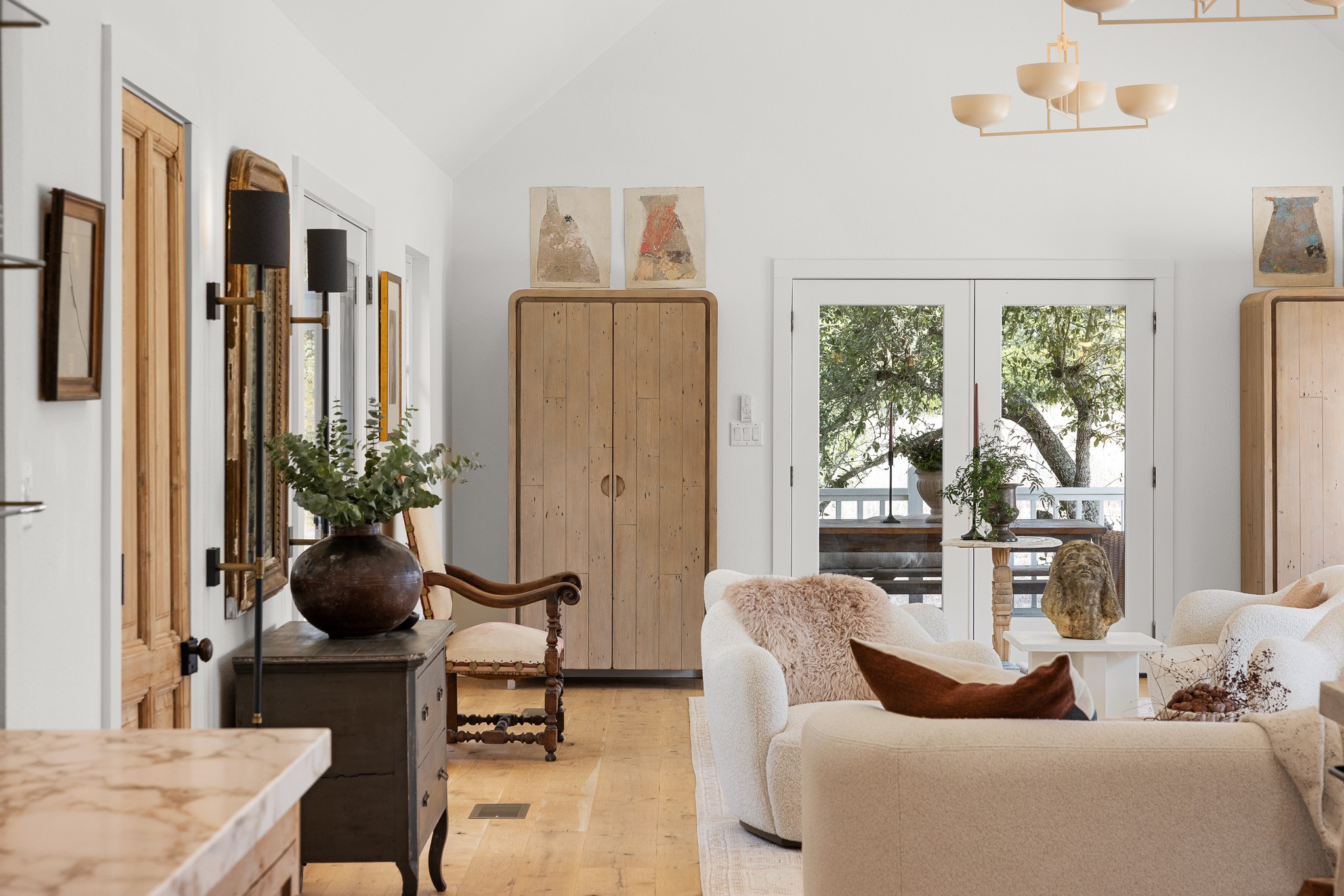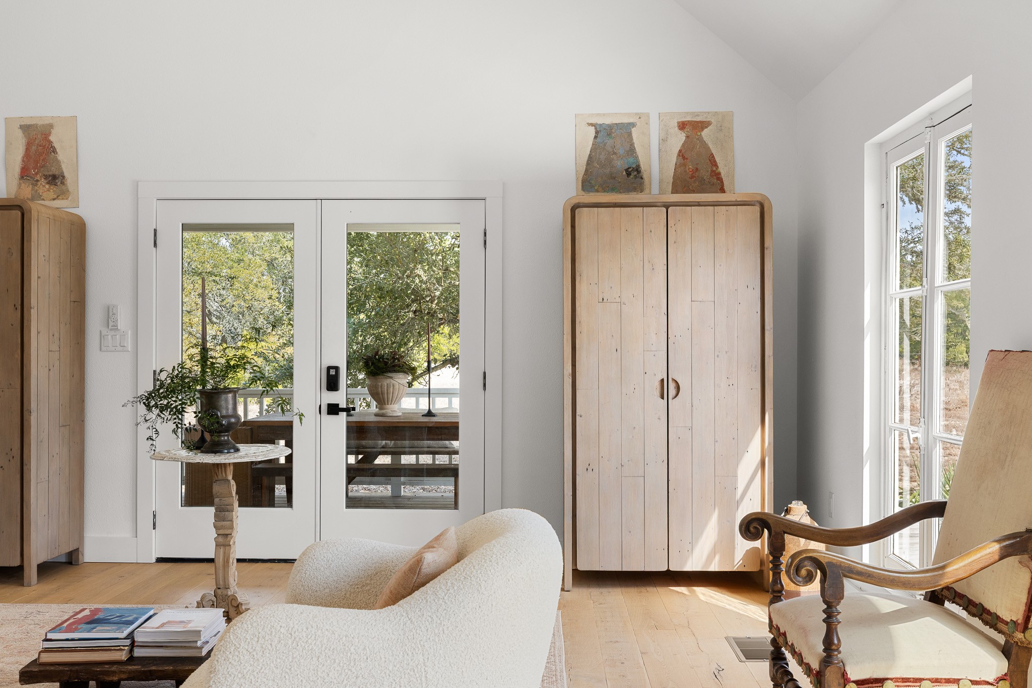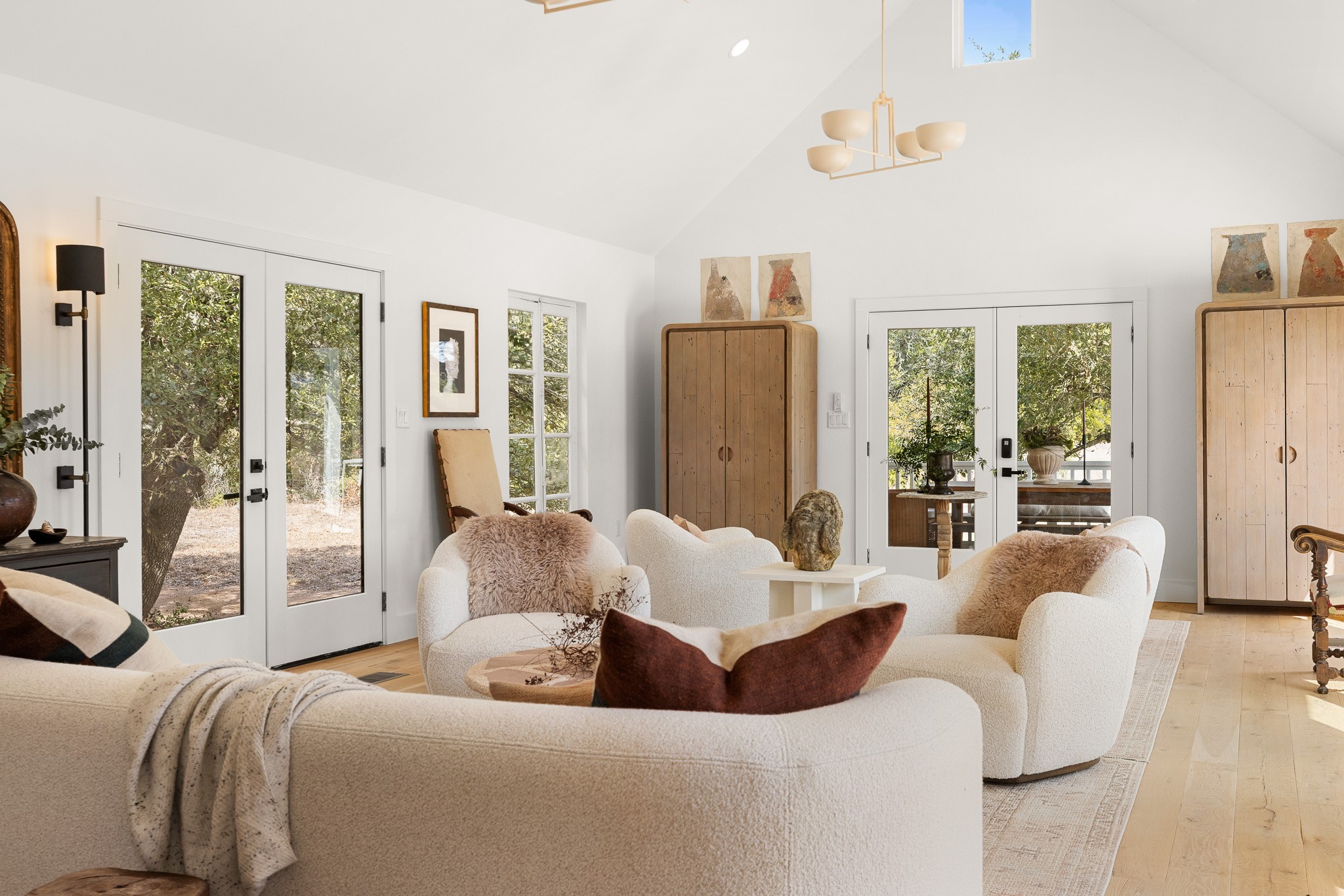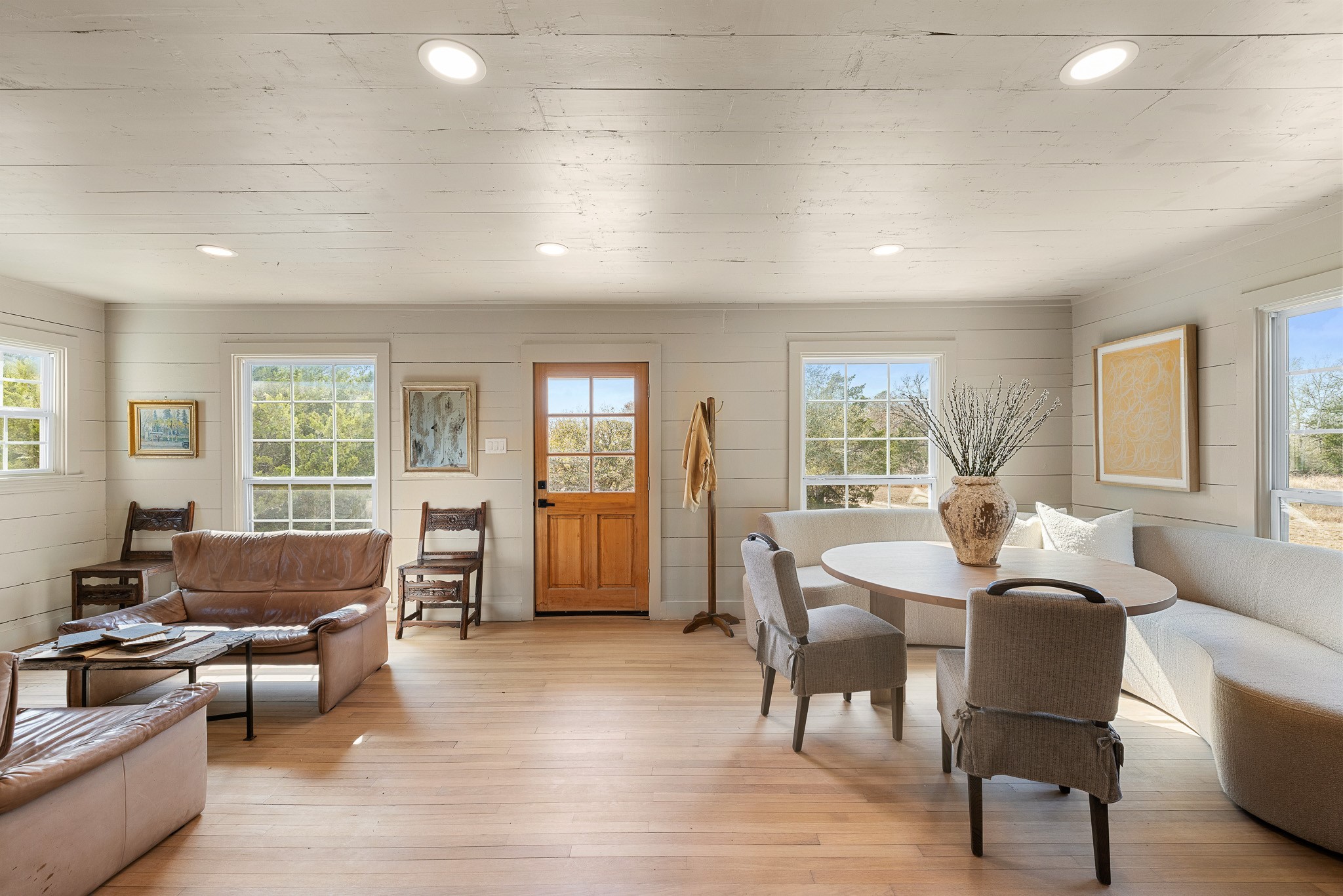 Set on 6.8 scenic acres in Round Top, this beautifully reimagined vintage farmhouse blends timeless charm with thoughtful modern design. The home features both a welcoming formal living area and a stunning great room with vaulted ceilings and peaceful views, creating multiple spaces for relaxing and entertaining. A spectacular, designer kitchen anchors the home with style and functionality. The downstairs primary suite offers a serene retreat, while the upstairs bedroom/loft area provide flexible accommodations for multiple beds and sitting area and include a full bath—ideal for guests. Outside, mature trees, 2 tranquil ponds, and excellent privacy from the road surround the home. Covered porches invite year-round enjoyment, while a recently added pool and gorgeous outdoor spaces complete this private escape. Property can be offered fully turn-key (for additional consideration) Enjoy being just minutes from the renowned shopping, dining, and iconic events of Round Top and Warrenton.