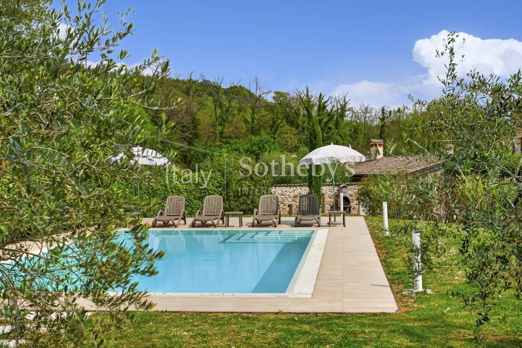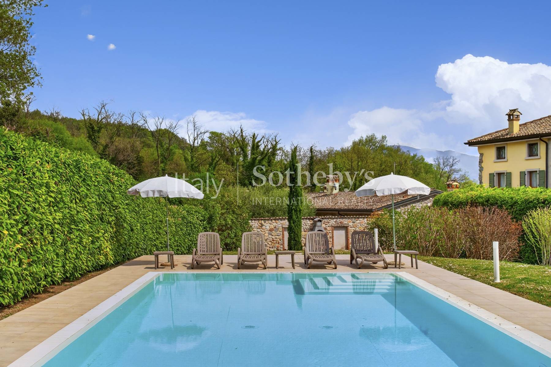 Early 20th-century historic property, set in the panoramic hills of Lake Garda, near the town of Garda. Recently renovated, it features a private garden with a swimming pool.The property is spread over four floors and offers a total surface area of 290 sqm. The welcoming entrance leads to a charming veranda, connected to the front courtyard through large sliding glass doors. Adjacent to the veranda, on the ground floor, there is an elegant kitchen and a guest bathroom. This level also includes a first bedroom with en suite bathroom.On the first floor, accessible via the original internal staircase, there are two additional bedrooms with private bathrooms, one of which enjoys panoramic views and a glimpse of the lake.The second and top floor comprises a bathroom, a panoramic hall, and a study, both featuring majestic exposed attic beams, ideal for conversion into additional bedrooms.Complete with storage rooms, a laundry area, an additional bathroom in the basement, and a large private parking area within the courtyard, this residence-conveniently located within easy reach of the airport-is perfect both as a prestigious private home and as a high-quality real estate investment.