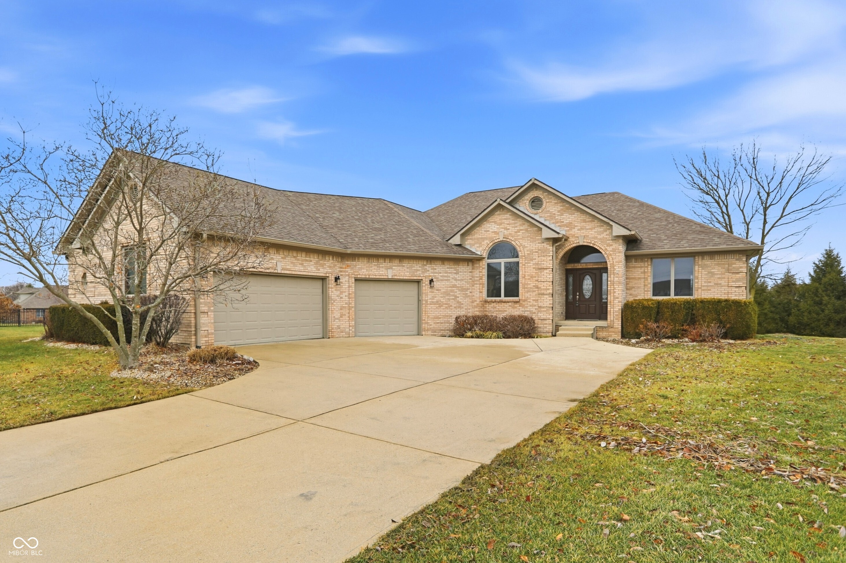 BACK ON THE MARKET!!! Highly sought after area in Grey Fox Woods on a Cul-De-Sac setting! Almost an Acre lot! Awesome Ranch with Basement & handsome brick exterior. Boasting with Beautiful, fine craftsmanship by Gorman Homes. Tray ceilings, crown molding, arched window, beveled glass front door, hardwood floors, built in bookshelves, solid six panel doors, casement window, ceramic tile floors and 42" cherry cabinets in the kitchen with updated countertops. Split bedroom concept separates the Primary Bedroom. Primary Bathroom is FRESHLY updated with ceramic shower and new double vanity countertops, faucets and Lights. 2nd and 3rd Bedrooms, has a Jack and Jill Bathroom. 4th Bedroom is in the Basement with a full Bathroom and a bonus room for movies and just over all family time and entertaining. 16' X 11' Brick/Screened in Porch to enjoy those lazy days of summer. 3-Car Sideload garage with plenty of storage. New washer in October 2023. All kitchen appliances stay. Newer Dishwasher has been recently added. New water heater in 2018. Dehumidifier stays. Yard has an irrigation system. Bathroom commode grinder has been recently replaced in Basement Bathroom. Water Softener works but might need some maintenance. Home theater system stays; projector does not work. Leaving the screen. 86" TV in basement may stay. Seller is relocating to another state for work. Close to shopping, dining, hospital, and easy access to 65 & 465.