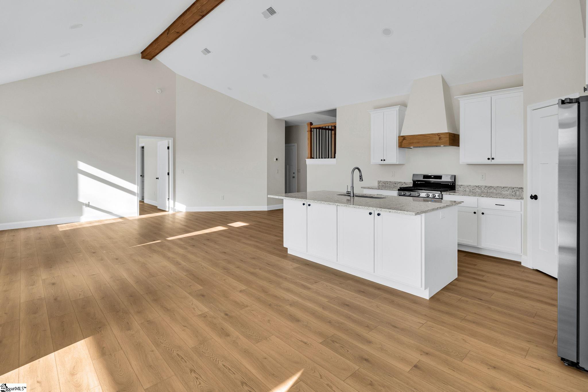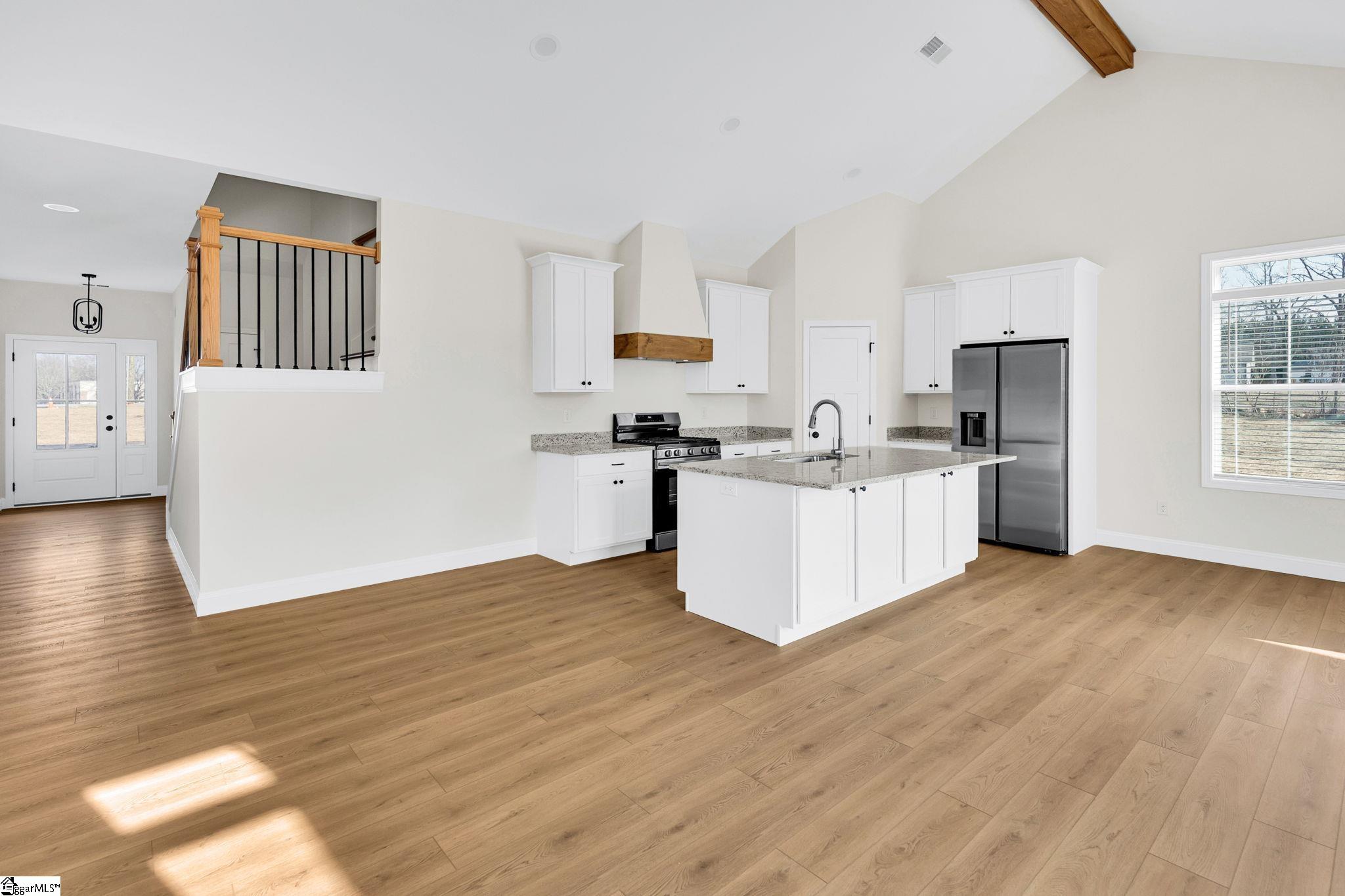 Experience the perfect blend of peaceful country living and everyday convenience with this brand-new Craftsman-style home in Simpsonville - thoughtfully built by a respected local builder and located just 10 minutes from grocery stores, dining, and shopping. Enjoy rural suburban living with NO HOA restrictions on nearly 2/3 of an acre. This beautifully crafted 4-bedroom, 2.5-bath the 4th bedroom could also serve as a large bonus room, office or flex space with a walk-in closet. The open floor plan is designed for both comfortable living and effortless entertaining, highlighted by a vaulted ceiling with a striking wood beam accent at the peak and a cozy gas log fireplace anchoring the spacious living room. The kitchen flows seamlessly into the dining and living areas and showcases granite countertops, and stainless steel appliances including a gas stove/oven, refrigerator, and dishwasher - all thoughtfully selected to combine function and style. Luxury vinyl plank flooring runs throughout the home, with ceramic tile in the well-appointed primary bathroom. The private primary suite offers a relaxing retreat, while additional bedrooms provide flexibility for family or guests. Step outside to the covered back porch overlooking a peaceful farm pasture - the perfect spot for morning coffee or winding down in the evening. A two-car garage, extra parking pad, convenient drop zone at the garage entry, and a spacious laundry room add practical touches to this beautifully designed home. Additional features include architectural shingles, gas heat, electric central A/C, and ceiling fans throughout. Great award winning schools including the recently built Fountain Inn High School. Note the Elementary and Middle school is just 1/2 mile away for convenience and peace of mind. If you've been searching for quality craftsmanship, modern finishes, room to breathe, and the freedom of no HOA - all within minutes of the heart of Simpsonville - this home is the one. Just 20 minutes from the GSP International Airport or fine dining or entertainment just 30 minutes to downtown Greenville.