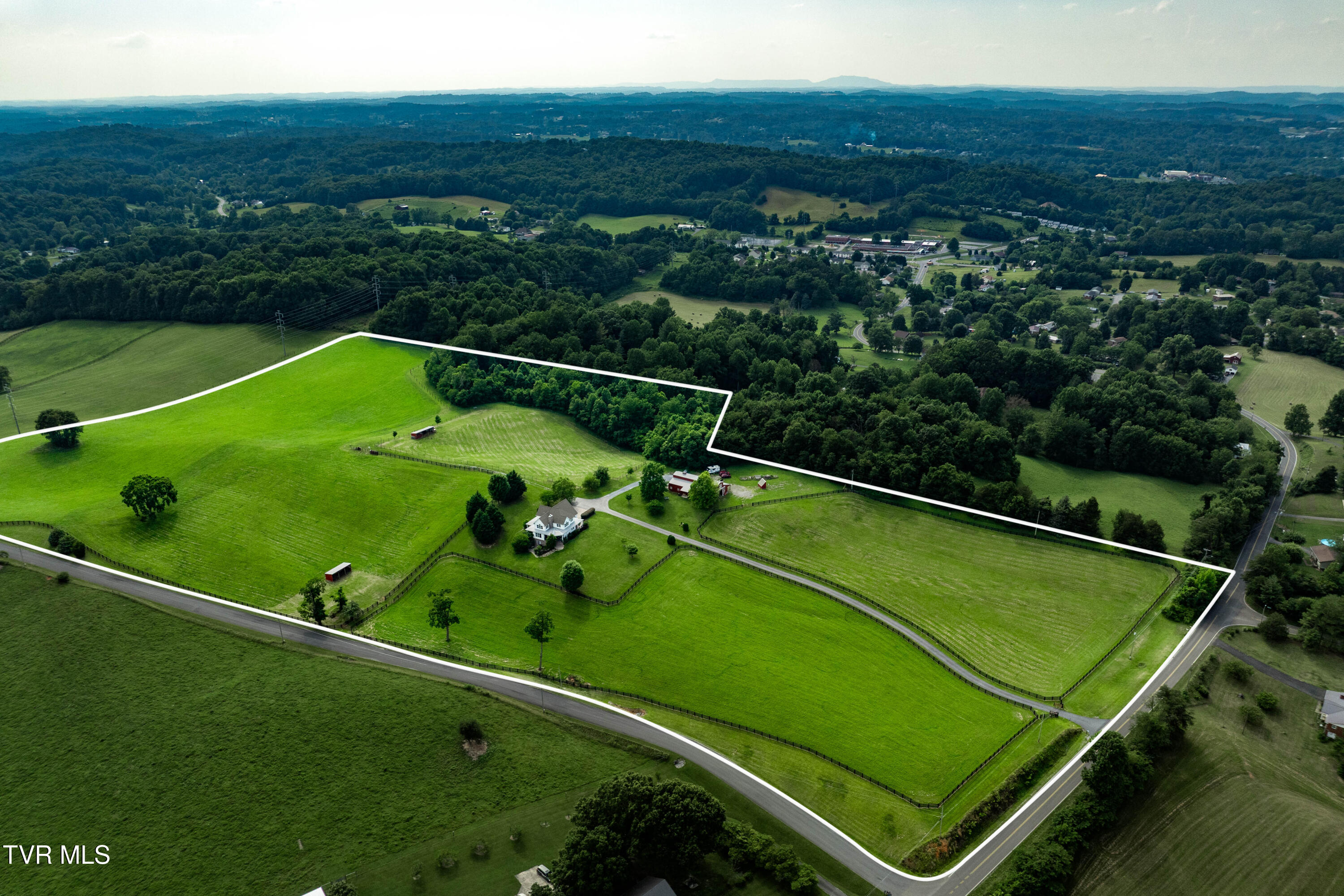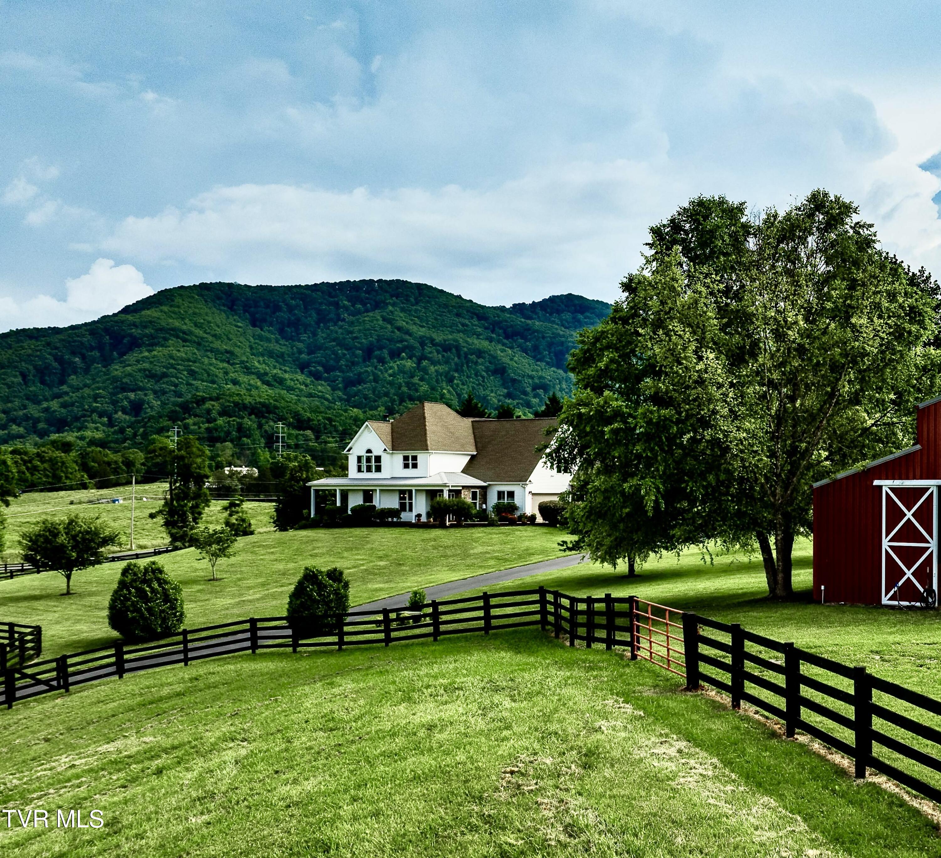 Welcome to Sea Biscuit Court. A Stunning 27 Acre Farmstead Retreat Tucked into the scenic beauty of East Tennessee, this extraordinary 27 acre farmstead combines luxury living with rural Tennessee charm, while being only 5 minutes from a major medical center, East Tennessee State University and Interstate 26. An electronically gated and long private driveway leads to a striking custom home and red barn set among mature trees atop a hill surrounded by the Appalachian Mountains. The 5,500 sq ft custom home features oversized windows that bring natural light and views into every living space. A main level primary suite offers convenient single floor living and privacy. Also on the main level is a large chef's kitchen with granite and quartz countertops, cherry cabinetry, and high end appliances. From the kitchen step out onto the large mountain facing porch with a cozy wood burning fireplace. The rear facing porch accessible from the primary suite, is very private and includes a hot tub for immersive and year round enjoyment of mountain vistas. On the second floor is an additional primary suite with a private bath and expansive views of the surrounding mountains. The rest of the second floor includes a large bonus room, two additional bedrooms and a third bath, allowing flexible family or guest arrangements. The lower level is designed for entertainment with a theater area, second wet bar, gym, game room, half bath, and abundant storage, don't forget the private lower patio with a serene waterfall and koi pond. The 2700+ sq ft barn is a showpiece with four horse stalls, a full bathroom, tack room, two insulated workshops, and an additional 720 sq ft of loft storage space. The views from the barn, including from the swing on the porch of the barn, are stunning. The property includes several individual pastures that are fenced and carefully maintained with quality grasses. Two pastures have their own run-ins for farm animals. Free spring water flowing from nearby Buffalo Mountain supplies clean water to the pastures, the yard of the house, and the barnyard. Explore winding hiking trails through mature hardwoods and visit your private park in the wooded section of the property. Wild blackberries, walnuts, honeysuckle, and wild roses abound and beautify this area of the property. The Cherokee National Forest is within a half mile from the property and provides extensive horseback and mountain bike riding and hiking opportunities. Outdoor living is central here and each season brings its own incredible beauty that can never be captured in a simple photo. This property is a versatile farm retreat that will suit your farm animal needs and your recreational or multigenerational lifestyles. The land is subdividable to a minimum of 5 acres. Street Address for the gated entrance is 2294 Dry Creek Road Buyer/Buyers agent to verify ALL MLS info.
