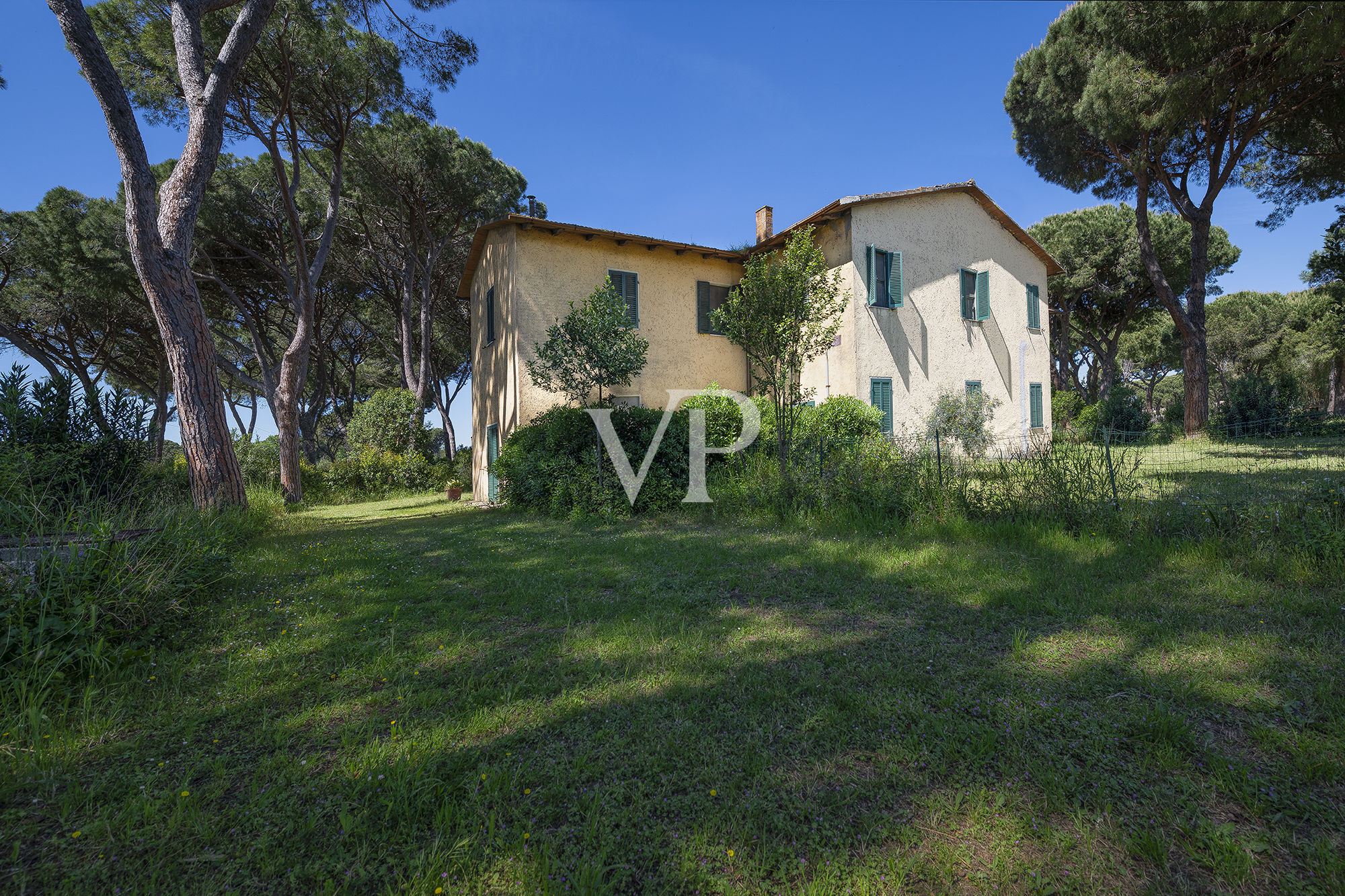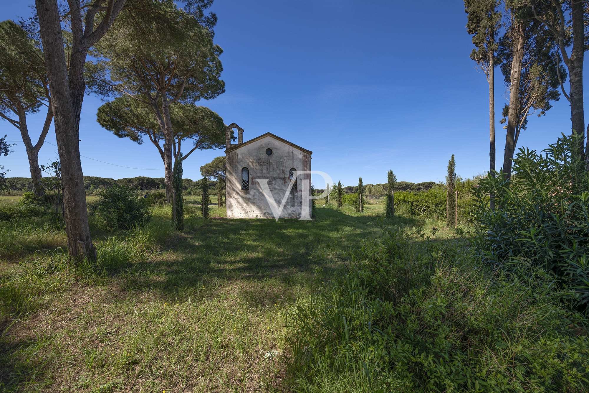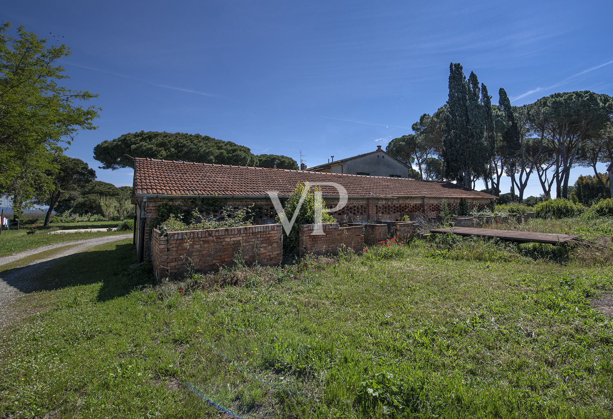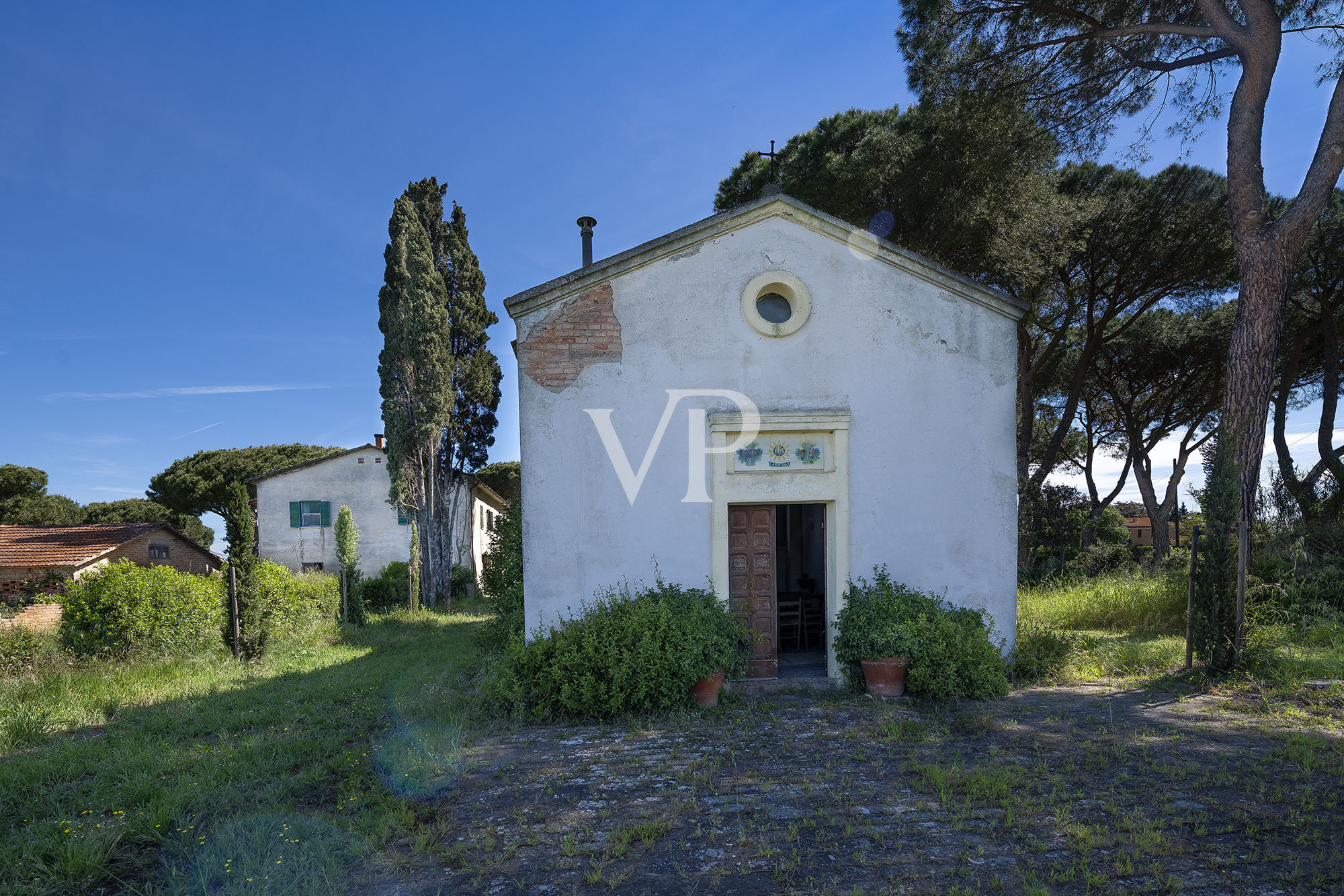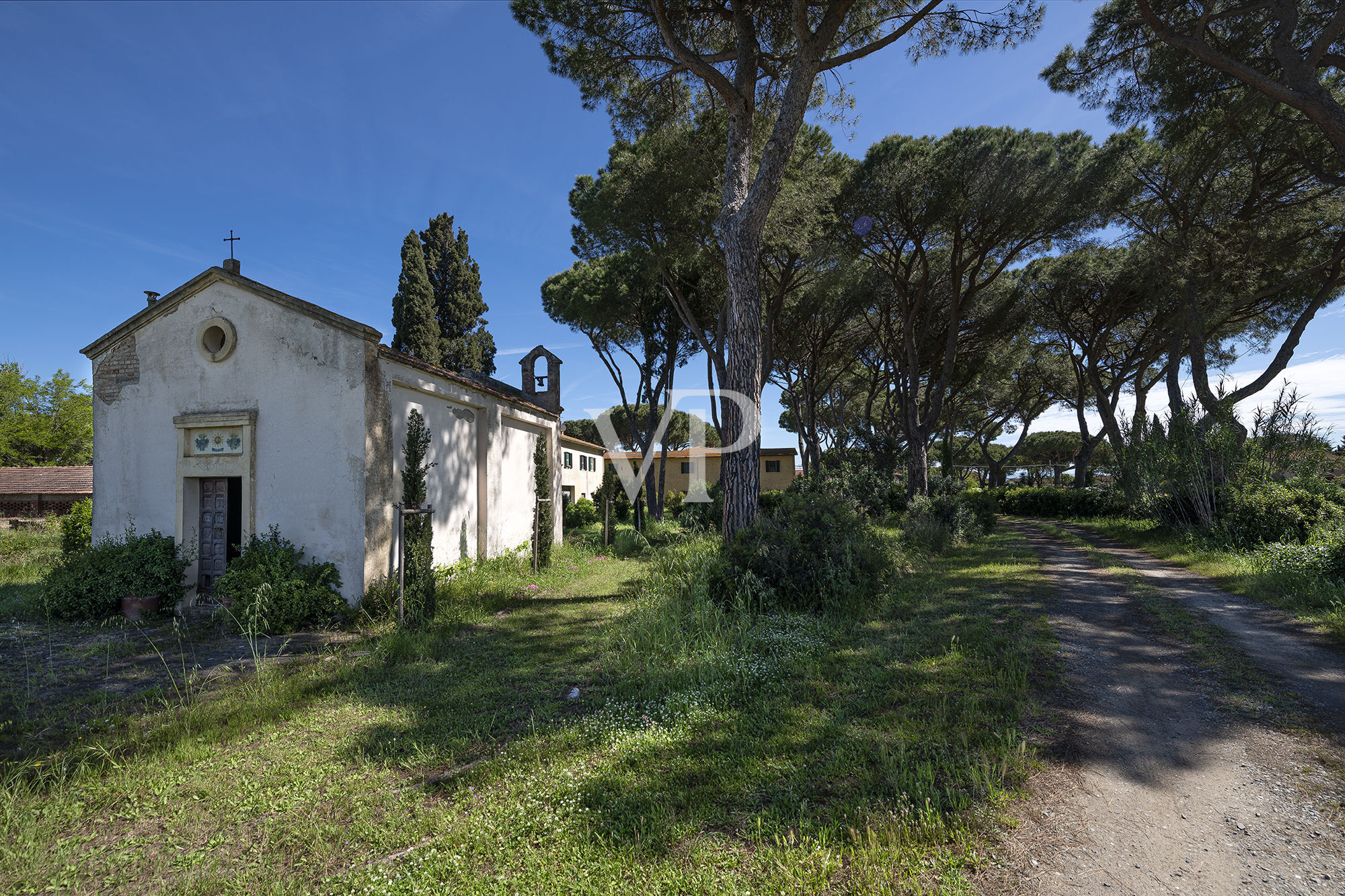 Among the most picturesque places in the Tuscan Maremma, with a 57-hectare centuries-old pine forest and 12 hectares of irrigated arable land, this farm with an important property size stands out for both its location and its excellent accessibility.Ready to be transformed into a prestigious estate, the farm consists of 4 real estate bodies, 3 of which are of high historical value, for about 900 sq. m. habitable, but dated and partly to be restored in a conservative way, in order to maintain all their historical strength, a powerful expression of the territory.The uniqueness of the location a few kilometers from the sea, from the capital, from all services, easily accessible in 10′ drive, via paved road, framed by a pine forest identical to that represented by the Macchiaioli, because unchanged.There is, moreover, also an unpaved road within the property, which reaches the sea, to be resurfaced.The manor part, a 400 sq. m. building organized on two levels that can also be used to create receptivity , as well as the more than 400 sq. m. of the second body of the property, with 2 apartments on the second floor, inhabited, and warehouses on the ground floor.In the real estate consistence there are another 150 sq.m. approximately between henhouse and pigsty to be totally recovered , as well as various shedsAccompanying, a small consecrated church immersed in the pine forest, splendid, intimate and excellently maintained.A reservoir provides irrigation for the land .All active utilities.