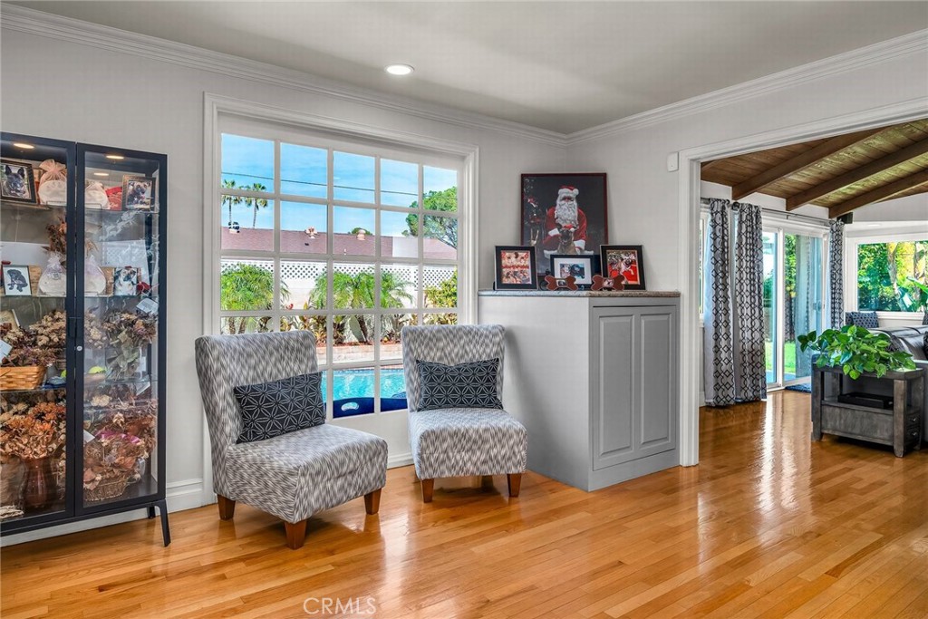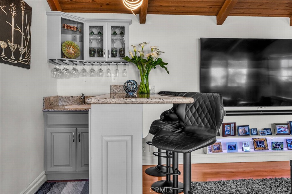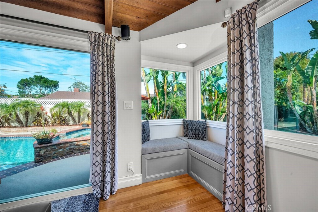 A Rare Single-Story Offering on a Quiet West Hills Cul-de-Sac. This beautifully updated home blends timeless design, thoughtful craftsmanship, and seamless indoor-outdoor living. Custom stonework, manicured landscaping, and classic brick detailing create exceptional curb appeal and a memorable first impression. Double doors open to a bright, open floor plan designed for refined living and effortless entertaining. The formal living room features rich hardwood floors, floor-to-ceiling picture window, stone fireplace, recessed lighting, and sliding doors framing backyard views. An expansive family/media room showcases vaulted wood-beam ceilings, walls of windows, statement fan, wet bar, and direct outdoor access. At the heart of the home, the remodeled chef's kitchen flows into the living, dining, and family spaces and features ceiling-height cabinetry, quartz countertops, stainless steel appliances, and generous center island. Just beyond the kitchen are a spacious laundry room, expansive pantry, and remodeled guest bath for convenience. The adjacent dining room offers dramatic wood-beam ceilings, decorative lighting, and dual bay windows filled with natural light. The private primary suite serves as a true retreat with walk-in closet and custom built-ins. The spa-inspired ensuite bath includes jetted soaking tub, oversized step-in shower, dual-sink vanity, and frosted window. French doors open to a secluded patio with fountain, creating a peaceful escape. Two additional generously sized bedrooms and an updated hall bath complete the interior. Designed for year-round enjoyment, the backyard delivers a resort-style experience. Lush landscaping surrounds a sparkling pebble-finish pool and raised spa with waterfall. A custom covered pavilion with vaulted timber ceiling, fans, and lighting creates an inviting outdoor living room, while a generous grassy area provides space for entertaining or play. Additional highlights include an attached two-car garage with built-in storage, insulated door, and separate ductless mini-split HVAC system - ideal for a gym or workshop. The home also features central HVAC, copper plumbing, a 200-amp electrical panel, tankless water heater with circulating pump, and dual-pane windows. Award-winning schools: El Camino Real, Chaminade, Hale, and Pomelo. Single-story cul-de-sac homes with this level of upgrades, privacy, and resort-caliber outdoor living rarely become available in West Hills and tend to attract strong early interest.