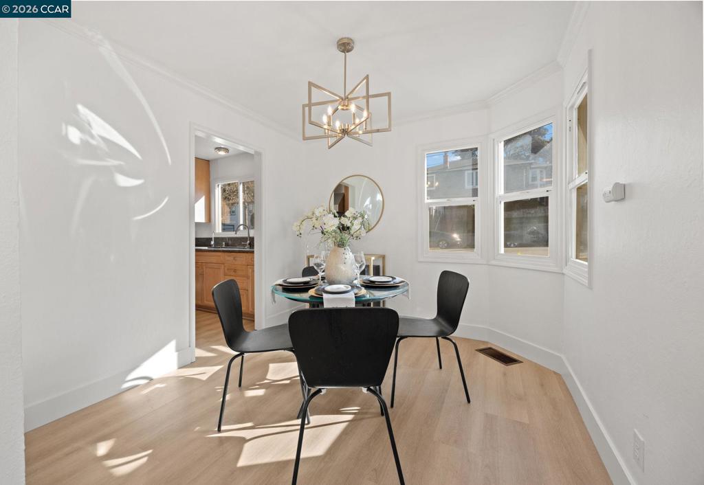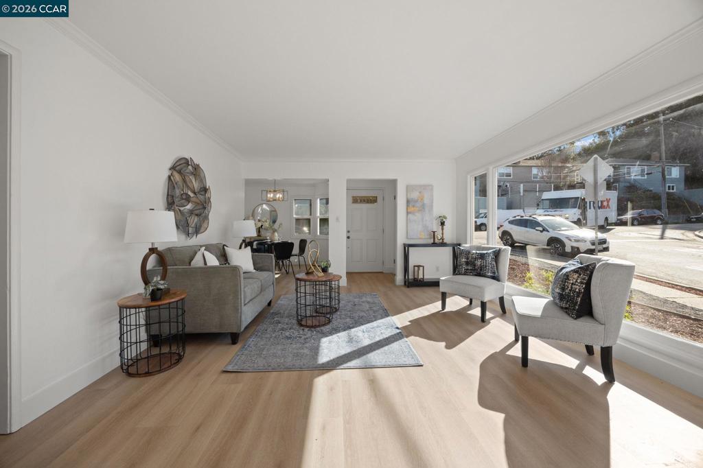 This upgraded 3BD/1.5BA single-level mid-century home sits on a 5,100 sq ft lot ideally located between downtown Castro Valley and historic downtown Hayward. The 1,186 sq ft home lives large with bright living spaces, large living room windows, and a bay window dining area. Recent improvements include fresh interior and exterior paint, new light oak luxury vinyl flooring, updated kitchen and dining lighting, a brand-new dishwasher, refreshed landscaping, and deck repairs with fresh paint (all Feb 2026). The kitchen features custom cabinetry and a Viking gas range, perfect for everyday cooking or hosting. Enjoy indoor-outdoor living with front and back yard spaces, a deck, and relaxing hot tub. Major upgrades include a bolt & brace seismic retrofit (Apr 2025) and roof replacement (2019). A rare highlight is the oversized two-car garage with EV charger, offering exceptional space for parking, hobbies, or storage. Conveniently located near parks, the San Lorenzo Creek Trail, Japanese Gardens, Castro Valley BART, respected schools, and the shops and dining of downtown Hayward.