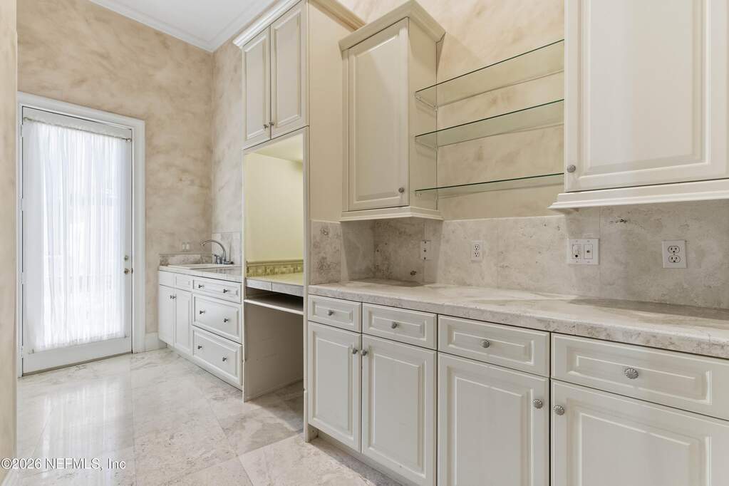 Elegant Mediterranean estate designed and built by award-winning architectural and design-build firm Cronk & Duch, inspired by the timeless 1920s Palm Beach mansions of Addison Mizner. This exceptional residence showcases old-world craftsmanship, refined architectural details, and stunning marsh and water views that create a breathtaking natural backdrop. The gourmet kitchen features state of the art appliances and a large island with concealed refrigeration drawers, blending sleek design with everyday functionality. Expansive living spaces are designed to capture the beautiful marsh vistas, creating a seamless connection between indoor and outdoor living. Step outside to enjoy the private outdoor retreat featuring a heated saltwater pool, perfect for relaxing or entertaining while overlooking the tranquil marsh and water views. Located within the gated Queens Harbour CC community, this home offers timeless character, luxury finishes, and an extraordinary waterfront lifestyle.