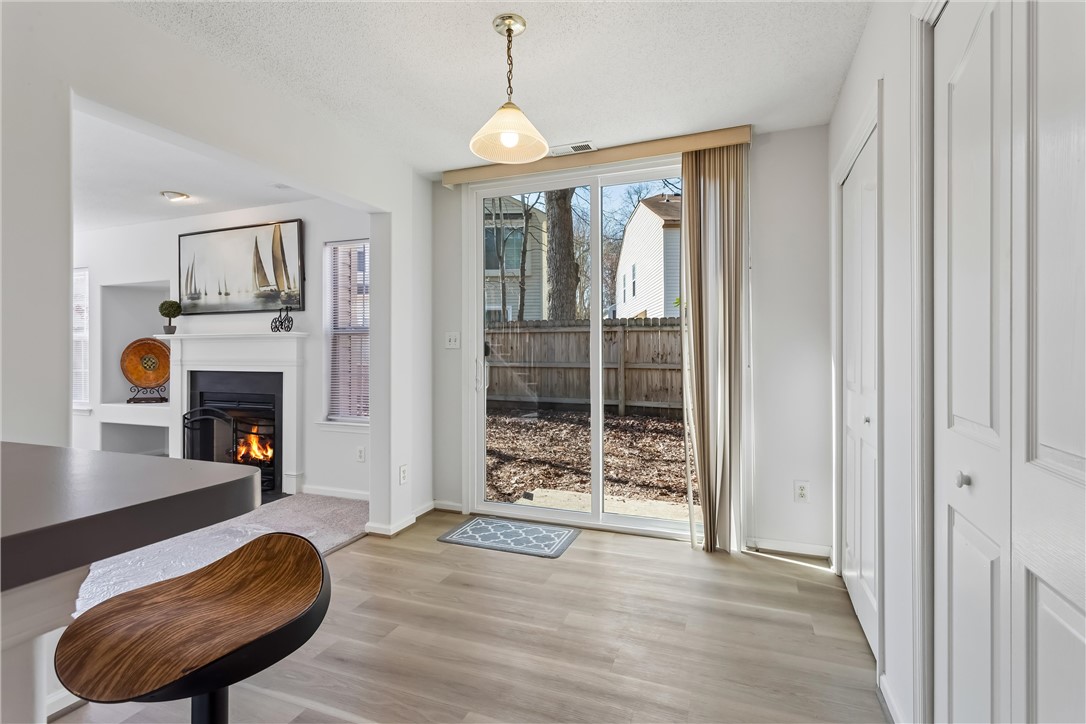 Freshly updated and move-in ready! This single-family home features new paint and flooring throughout as well new blinds, smoke detectors and lighting. The spacious front family room boasts a vaulted ceiling, new ceiling fan, and cozy wood-burning fireplace. The eat-in kitchen offers stainless steel appliances, new kitchen faucet, pantry, new sliding patio door, and luxury vinyl plank flooring that continues through the foyer and guest bath. Upstairs you'll find a versatile loft, convenient utility closet, and a generous primary suite with walk-in closet and ensuite bath featuring separate tub and shower. A guest bedroom and full hall bath complete the second level. Enjoy the fenced backyard, two-car garage, and double driveway, perfect for everyday living and entertaining.
