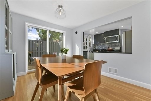 Stunning Corner Townhouse in Watertown's The Village . Bright, beautifully updated, and move-in ready, this desirable corner townhouse offers the perfect blend of style and functionality. The first floor features an open-concept living space with three walls of windows, gleaming oak floors, and recessed lighting that create a warm, inviting atmosphere. The dining area opens through sliding glass doors to a private, enclosed deck, perfect for morning coffee or entertaining guests. The modern kitchen boasts quartz countertops and stainless steel appliances, ideal for cooking and hosting. Upstairs, you'll find two spacious bedrooms with oak floors and a full, windowed bathroom featuring tile floors and a tiled tub-shower combination. Partially finished basement adds versatile space for a home office, gym, or media room, with additional unfinished areas for laundry, storage, and utilities. Enjoy the perks of a professionally managed community, including a clubhouse and pool.