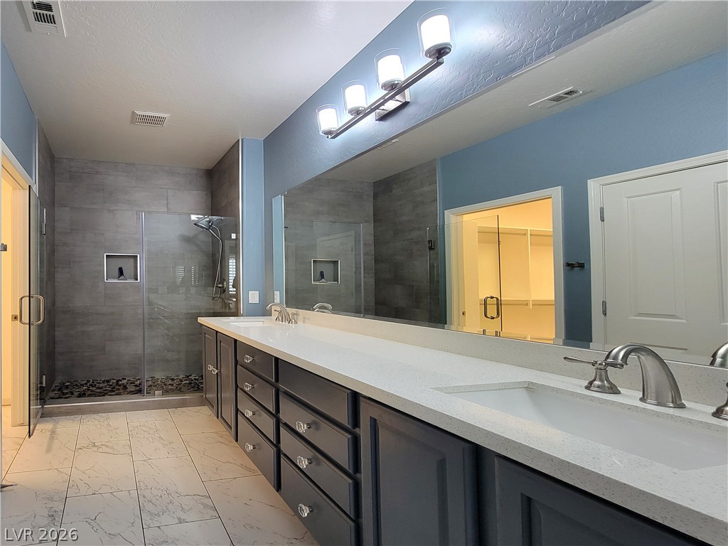 Beautifully home in Solera on a wide lot.*Quartz Countertops * Stainless appliances * Roll out kitchen shelves * Custom primary shower * Huge primary built out closet * Ceiling fans * Water Softener * Vinyl Floors, Plantation Shutters *