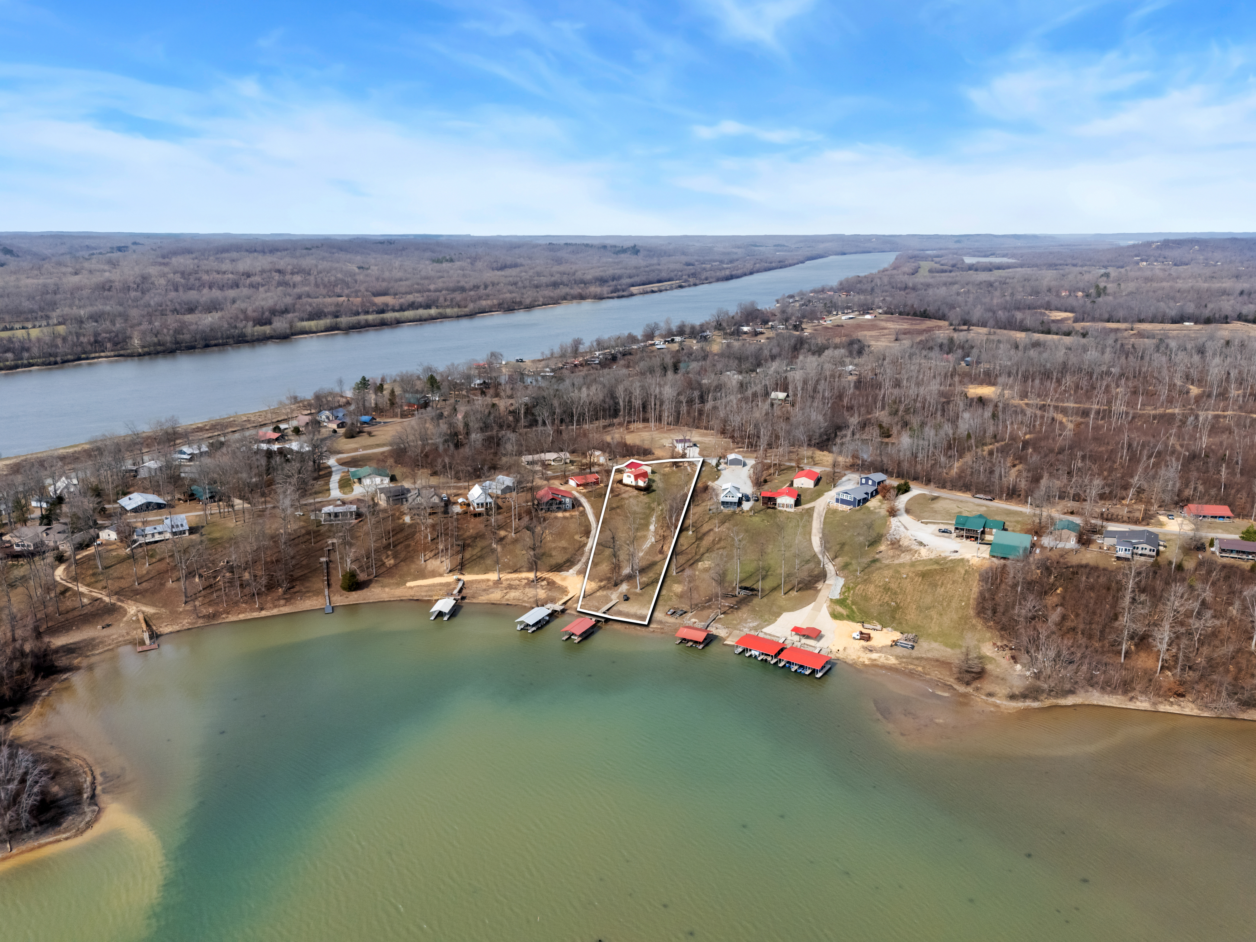 Lake house living with a quick weekend getaway only 1.5 hours from Nashville, Brentwood, Franklin. Make your weekends on the water a dream come true. Tucked away on a private cove on the TN River, just off the main channel with an owner's dock and impressive lift system, 30x30 garage, and community launch ramp. Upgraded all to PEX plumbing in crawl space and water heater and bathroom sinks, 2025 New Anderson back door, new deck and flooring added 2020, new 30 gallon water heater 2025, new carpet 2025, and fully encapsulated crawlspace. Septic pumped 2025. Home can be sold furnished as an option.