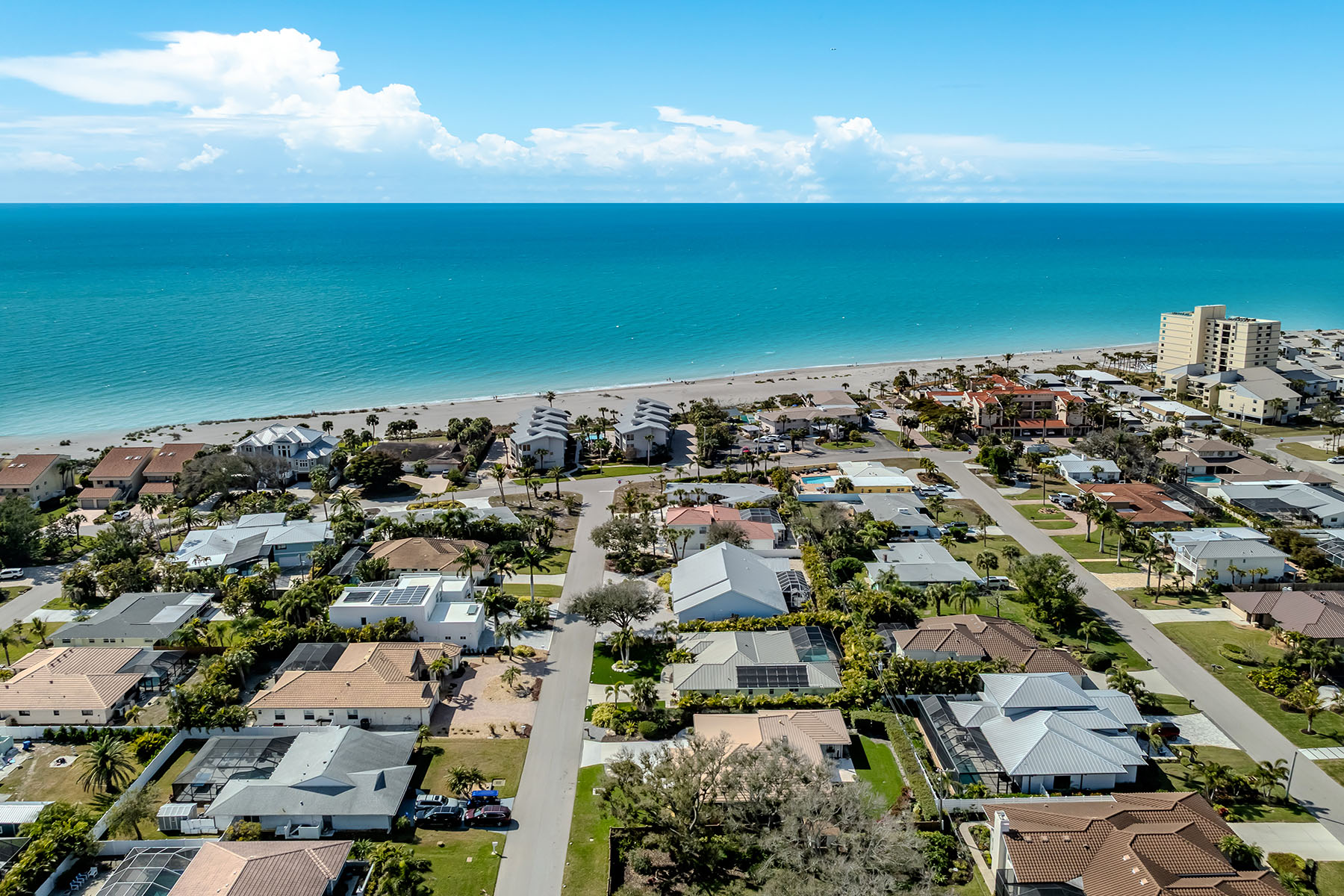 Just five homes down from the private, member-only Golden Beach access point, 444 Baynard Drive presents a single-family residence offering 2,265 square feet of well-designed interior living space. Built in 1993, this three-bedroom, two full and one half bath home features a spacious split floor plan designed for privacy, with two guest bedrooms and a full bath positioned separately for guests to enjoy. The interior includes a cozy den with built-in bookshelves and living areas enhanced by large windows that provide abundant natural light. The open kitchen offers ample space for dining and casual seating, creating a central gathering area in the home. Additionally, there is a large dining area and separate living room with a gas-burning fireplace, heated by a propane tank outside the home which could also deliver gas to the kitchen if desired. Outdoor living includes a large screened rear patio in addition to an open-air patio space. Mature landscaping frames a private backyard with lush views. Golden Beach provides private access to Venice's renowned Gulf shoreline. From the beach, enjoy toes in the sand as you head south toward Sharky's on the Pier, Fins and the Venice Fishing Pier. Downtown Venice is accessible within minutes by car, golf cart or bike and offers boutique shopping, dining, restaurants, art and craft festivals, a weekly farmers market, theater, library and performing arts venues. Notable improvements include roof replacement in 2013, HVAC 2022, water heater 2026 and several windows replaced with high-impact glass in 2018. This is a gem of a property that will bring enjoyment and memories for its new owners.