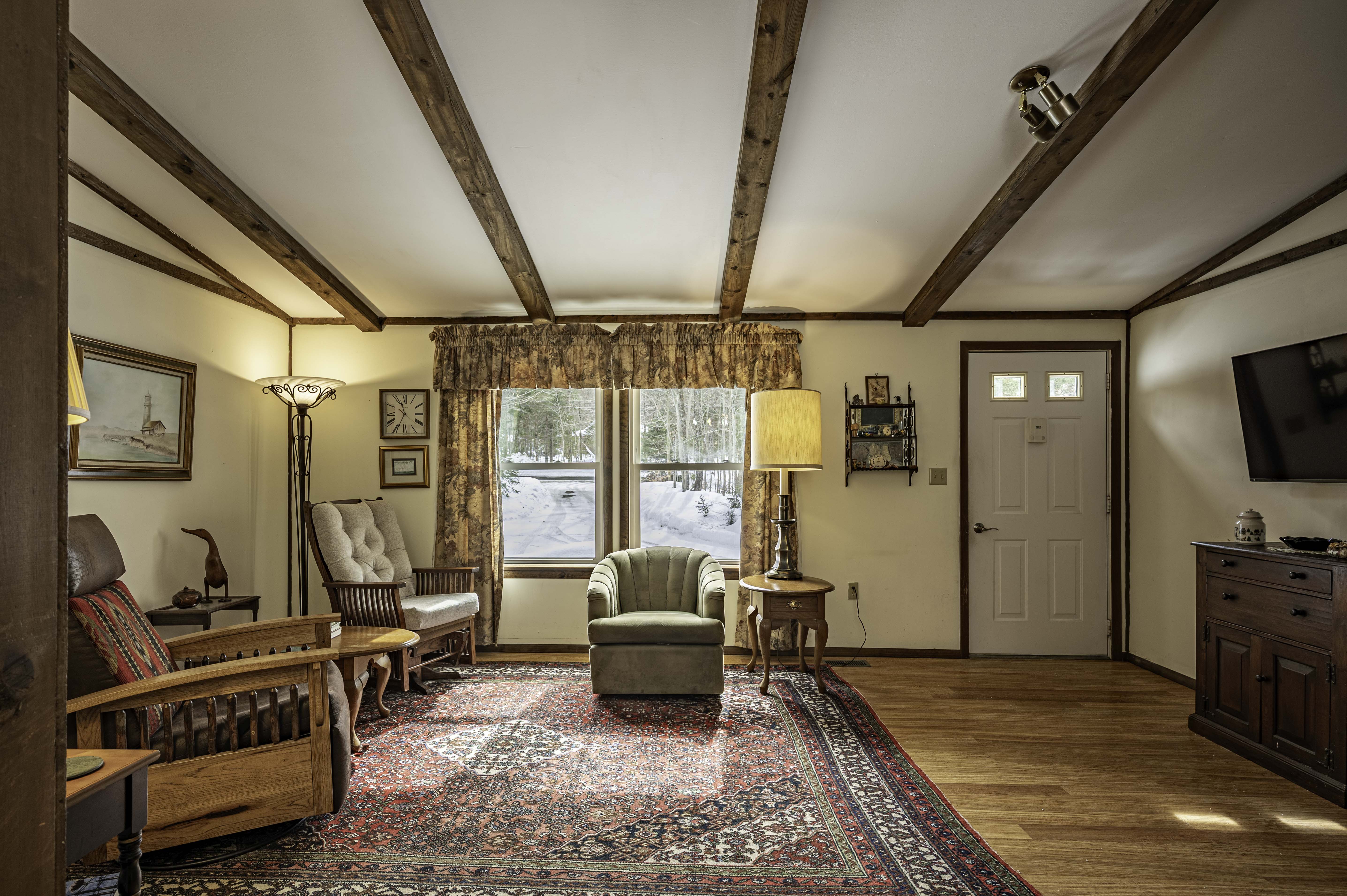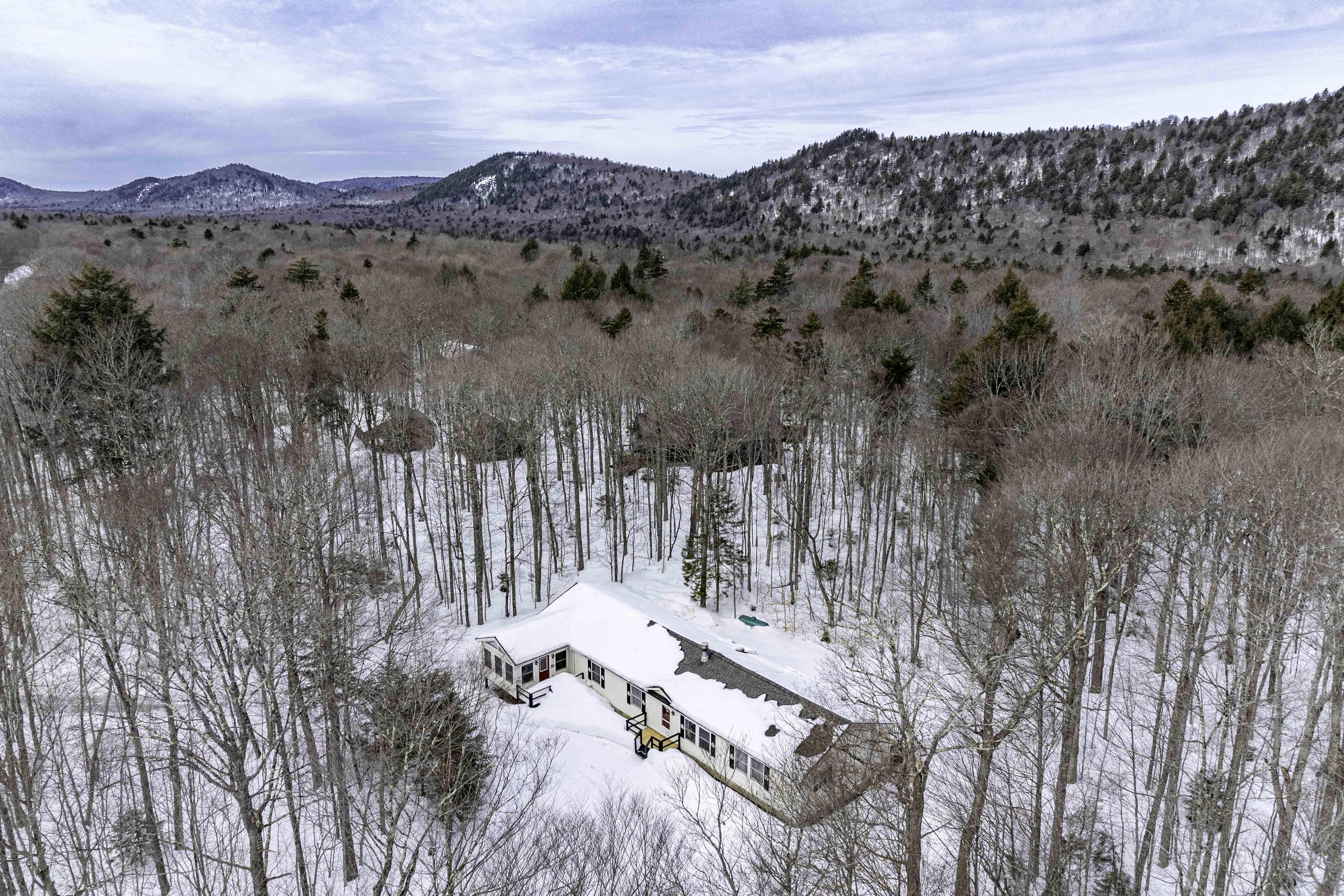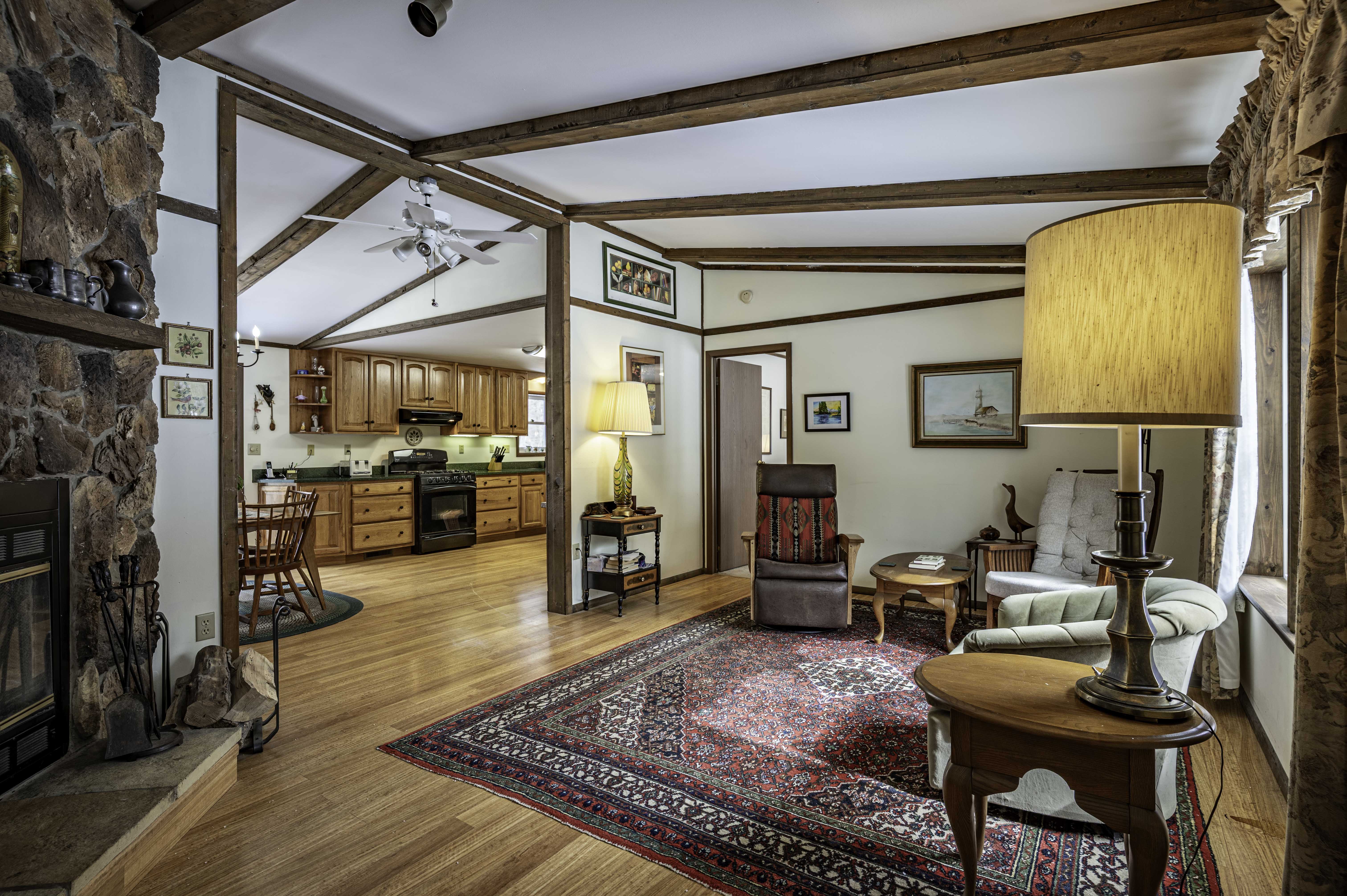 This year-round ranch sits on a private 3.6-acre wooded lot bordering New York State lands, offering exceptional privacy and direct access to the natural beauty of the Adirondacks. This year-round home features 3 bedrooms, 2 full baths, a living room with a wood-burning fireplace adjoining a spacious eat-in kitchen, and a dedicated office. A beautiful addition provides an expansive entertainment area featuring a propane fireplace and dining room. Relax on the inviting three-season porch or enjoy the peaceful wooded setting from the 8' x 32' rear deck. Additional highlights include a drilled well, hot-air heat, a full, unfinished basement, an oversized two-car garage, abundant parking, and a generator. Located in a highly desirable area for snowmobiling and just minutes from Eagle Bay and Inlet.