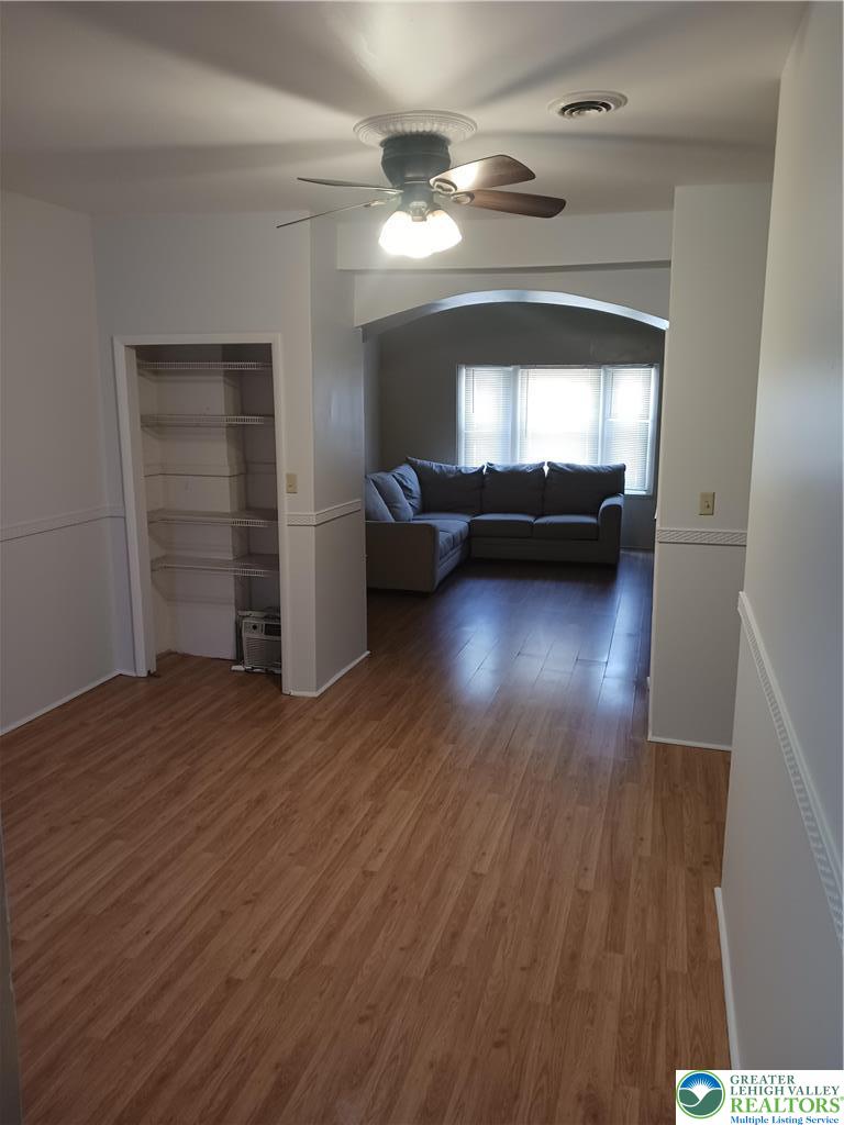This exceptional three-story townhouse in Easton's prestigious College Hill neighborhood is a prime opportunity for owner-occupants or investors. Surrounded by single-family homes, rentals, and small businesses, it enjoys the area's vibrant historic charm and prime proximity to Lafayette College - one of the most sought-after student locations. Zoned CH District, it allows residential use with mixed-use/commercial flexibility for diverse living or income strategies. The main level boasts a grand front living room with a custom wide archway to a formal dining room, plus a modern eat-in kitchen featuring cathedral ceilings and a skylight for bright, airy dining. A convenient powder room completes this floor. Upstairs, the second level offers three spacious bedrooms, a large full bath, and an in-unit laundry room for everyday ease. The third floor provides two additional bedrooms, ideal for expanded living or added rental potential. Thoughtful updates blend seamlessly with original charm, complemented by reliable gas hot air heating. Rare off-street parking for two cars adds tremendous value in this walkable, in-demand area. With a proven 14-year rental history to college students, this property delivers strong demand and stability. A current lease (June 11, 2026-May 24, 2027) at $3,450/month + utilities ensures immediate cash flow for investors. A true gem with excellent value, income potential, and unbeatable location - don't miss this investor-friendly standout! Open Sat 1-3pm