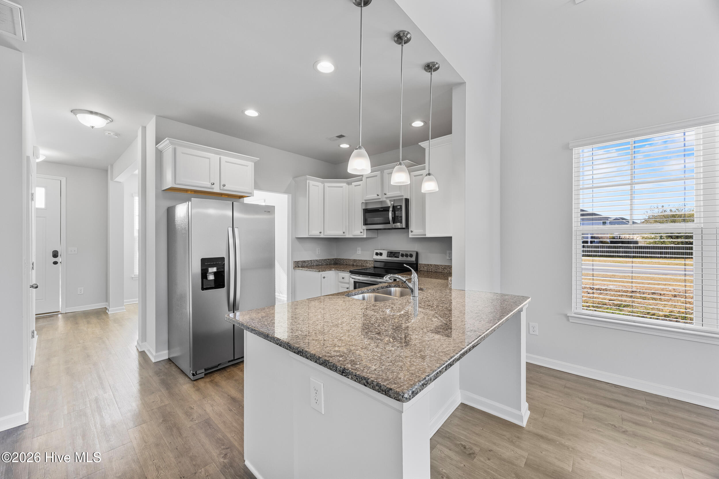 Premium end-unit townhome with 3 bedrooms and 2.5 baths, offering 1,932 sq. ft. of light-filled living space, added privacy, and a maintenance-free lifestyle. Tucked away at the very end of a cul-de-sac, this home backs to common green space and features serene pond-front views. Inside, you'll love: Dramatic 18-ft ceilings and an abundance of windows that fill the grand living room with natural light, Formal dining area, Kitchen with granite countertops and a breakfast bar for casual dining, Main-level primary suite with a spacious en-suite bath and large walk-in closet. Upstairs: Large open loft--ideal for a home office or playroom, Two additional guest bedrooms, each with a walk-in closet and hall bath, Laundry closet with washer and dryer included. Turn-key ready: Freshly painted and professionally deep-cleaned (including carpets), this home is ready for move-in day. HOA: The reasonable HOA assessment of $412 is paid quarterly and covers yard and landscaping, exterior maintenance and roof. Conveniently located for work and play--less than 15 minutes to Wrightsville Beach and UNCW, and within a couple miles of nature parks, dining, shopping, and entertainment. Whether you're looking for a high-yield investment with a strong rental history, a primary residence, or a second home, this townhome delivers.