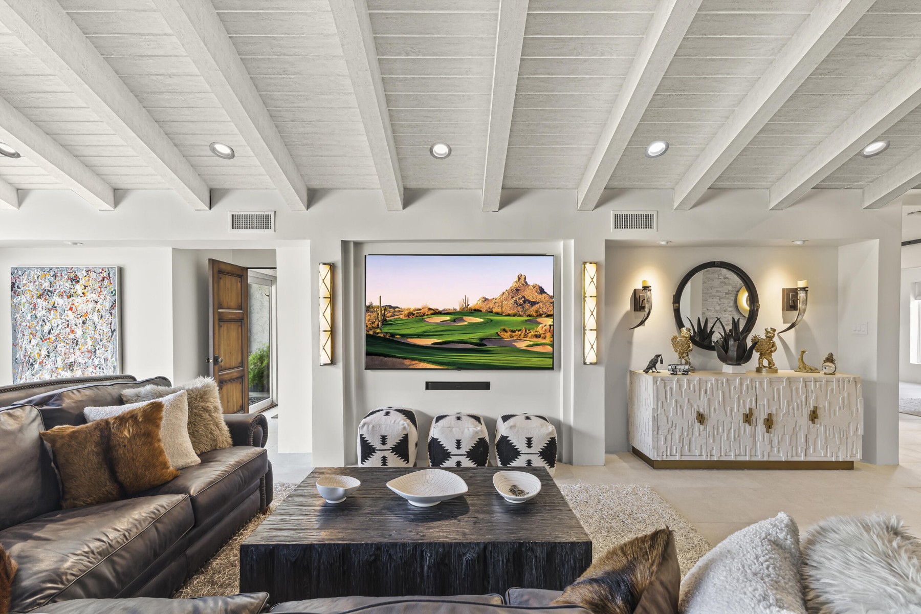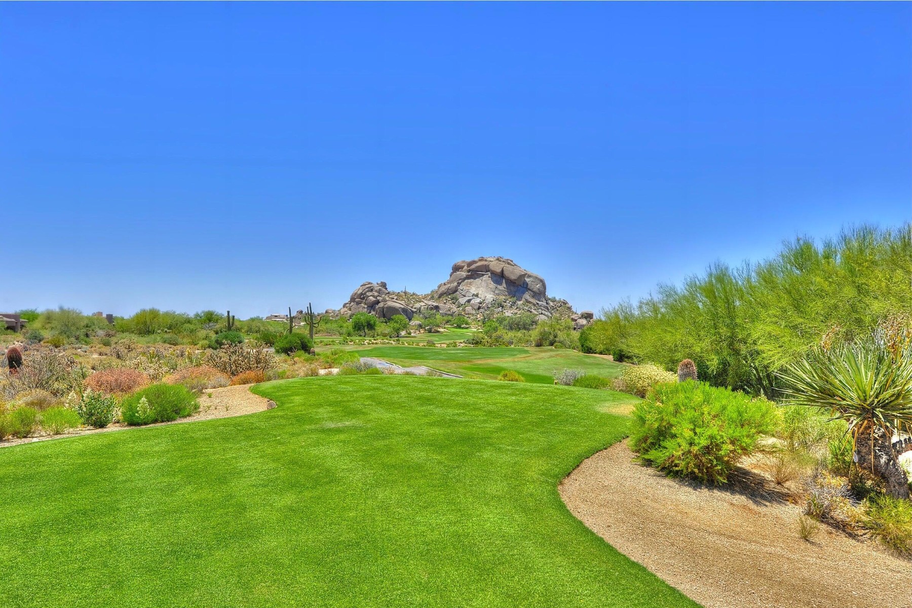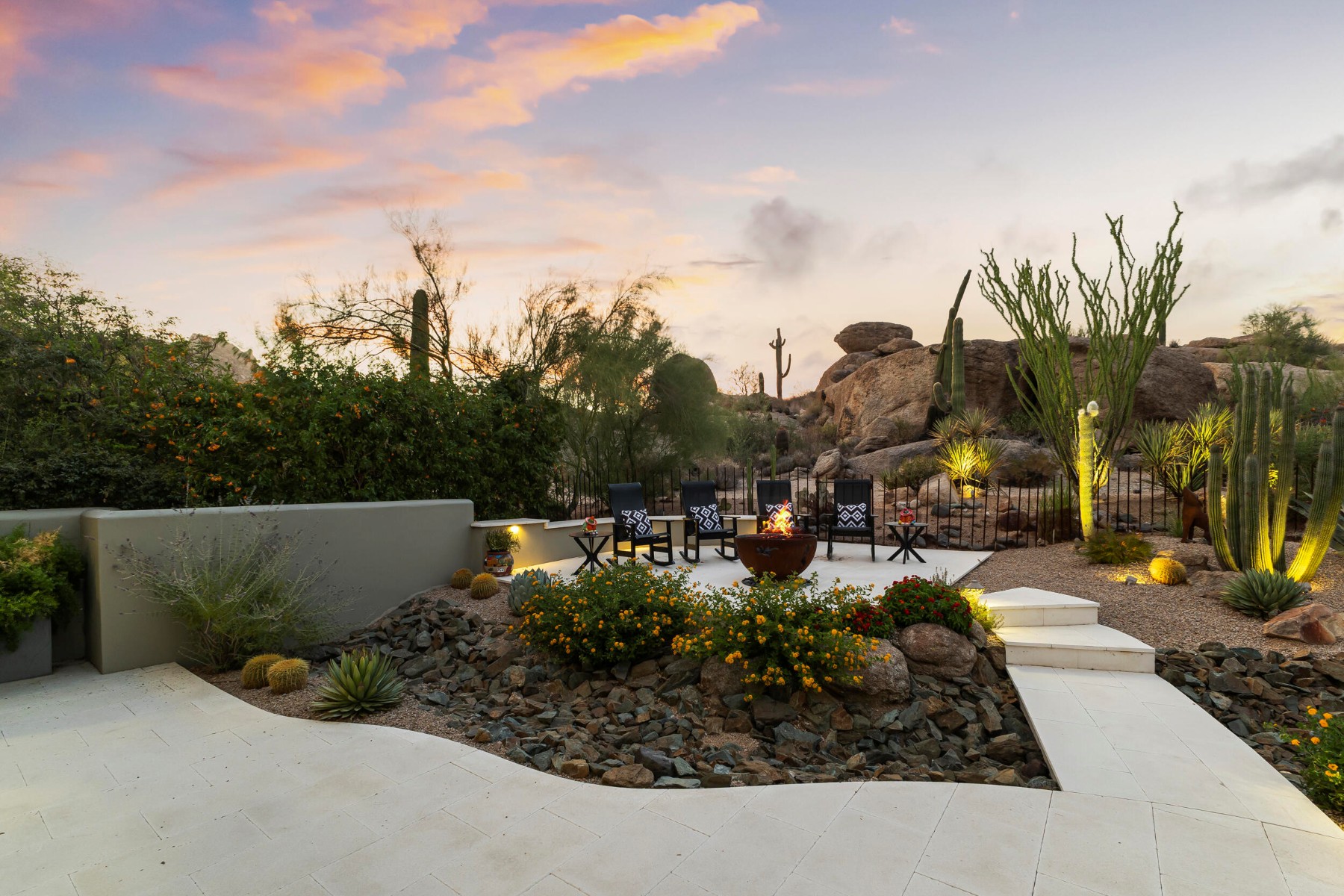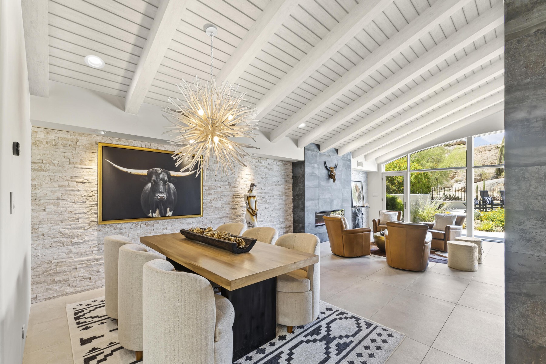 Recently featured on The American Dream, this fully renovated Desert Contemporary retreat is set within one of the most breathtaking and tranquil settings in Scottsdale's world-renowned community, The Boulders. Surrounded by iconic granite formations and the natural beauty of the Sonoran Desert, the home offers a rare blend of timeless architecture and modern luxury. Built with durable materials like copper service lines and modernized over time, this residence offers updated plumbing, gas, and electrical systems, smart features, high-end finishes, and a move-in-ready experience for today's buyer. Inside, soaring glass walls frame dramatic boulder outcroppings and expansive desert vistas while filling the home with natural light. The open-concept floor plan flows seamlessly from the designer kitchen to the spacious great room, creating an inviting environment ideal for both relaxed living and sophisticated entertaining without one step. Luxury details are found throughout, including oversized stone tile flooring, sleek floating cabinetry, and beautifully appointed designer bathrooms with custom tilework. Every space has been curated to reflect a refined Modern Desert aesthetic that complements the surrounding landscape. Step outside to a serene backyard retreat and private observation deck, where spectacular sunsets, peaceful desert mornings, and brilliant stargazing create a true resort-style experience. This home can be purchased fully furnished with designer pieces specifically selected for the home, this single-level residence presents an exceptional turn-key opportunity or luxury lock-and-leave. Just a short two-minute walk to the community pool and moments from The Boulders' renowned resort amenities, including championship golf, world-class spa, fine dining, tennis, and miles of scenic desert trails. A rare opportunity to own a thoughtfully updated desert sanctuary where natural beauty, modern comfort, and resort living come together effortlessly.