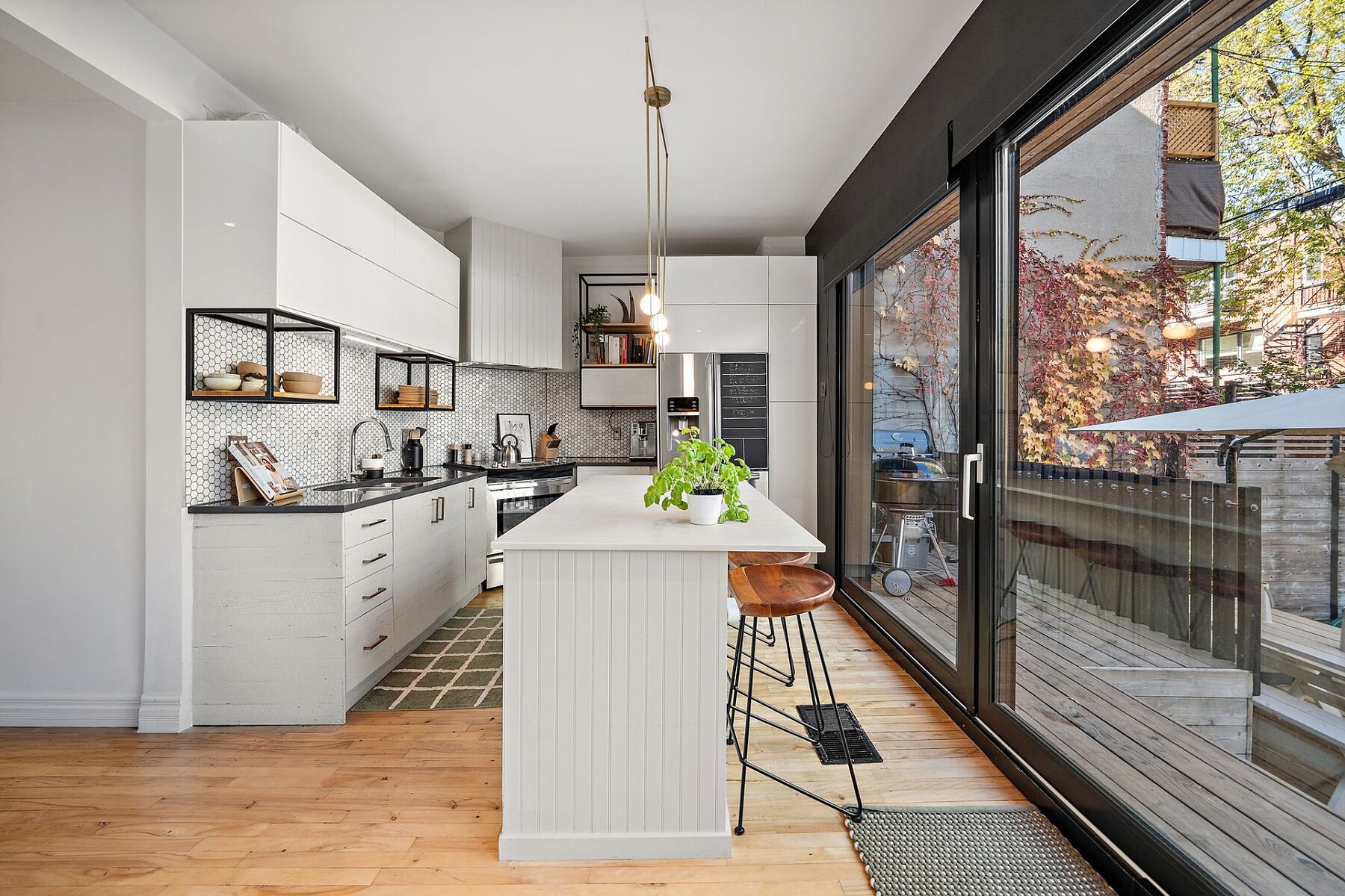 Discover this beautiful modern renovated house in Vieux-Rosemont. Very bright, it offers 3 bedrooms and 2 bathrooms, a beautiful staircase leading to the upper floor, and a convenient office nook at the top. Enjoy a private fenced yard with a large patio, ideal for entertaining or relaxing. A functional and elegant living space, perfect for a family seeking comfort, brightness, and a vibrant neighbourhood lifestyle. Rosemont is prized for its cafés, shops, and friendly atmosphere. Close to The Promenade Masson, Parc Maisonneuve, the Olympic Stadium, the Pie-IX metro station, and Montreal's main highways. An instant favourite!