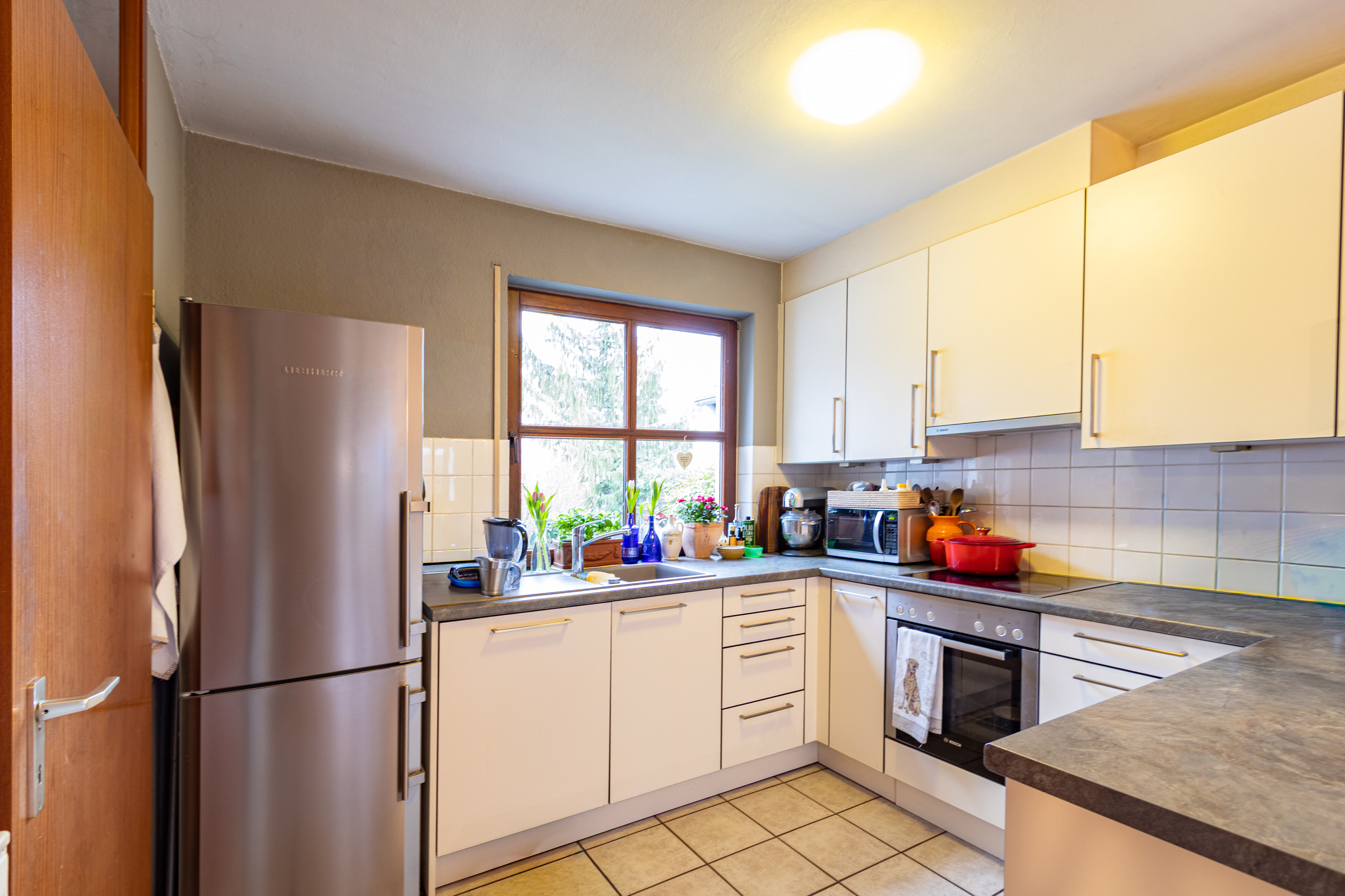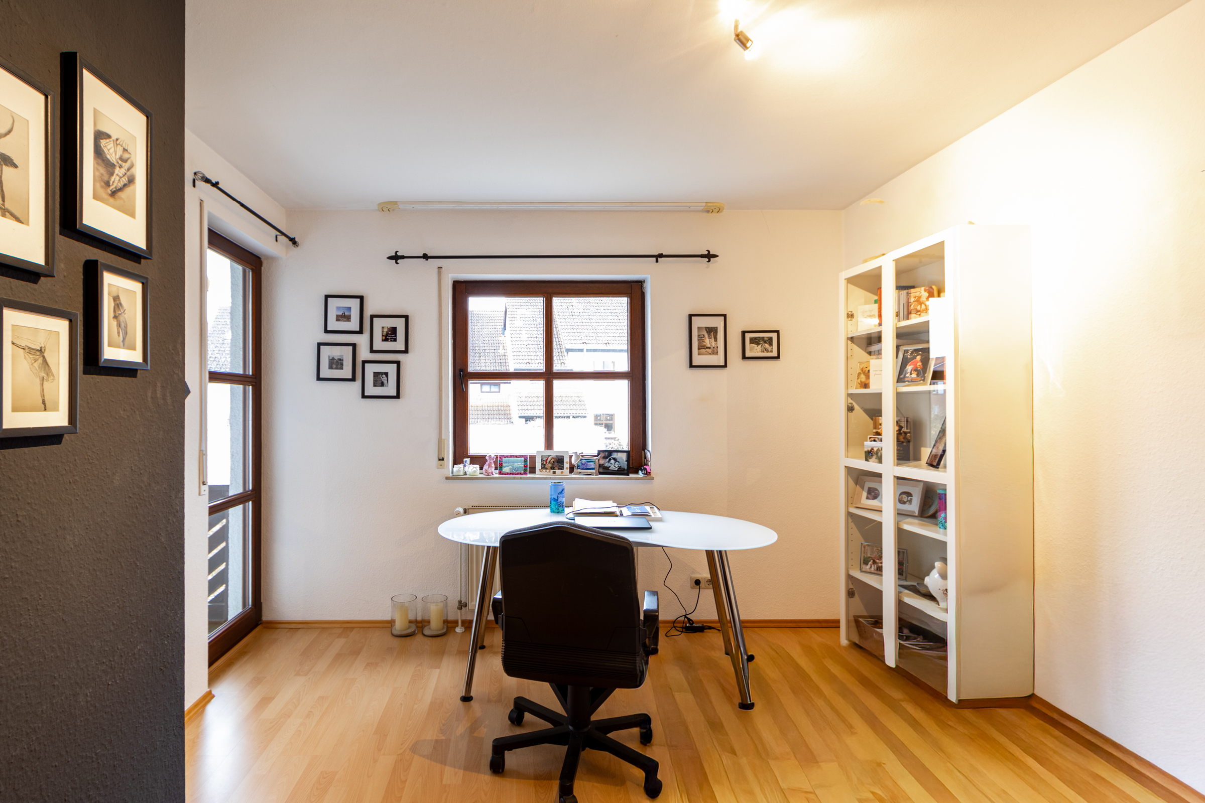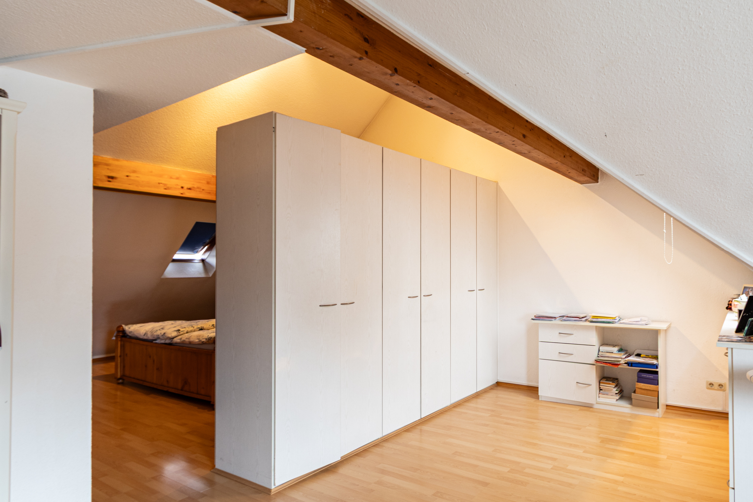 This architecturally appealing terraced house (built in 1993) impresses with a rare combination of idyllic location at the edge of a field, plenty of privacy, and a family-friendly floor plan. The 138 sq.m. of living space comprises 5 rooms with 4 bedrooms – complemented by approx. 47 sq.m. of usable space in the basement with a spacious hobby room (33 sq.m.). The small, mature and easy-care garden with terrace offers just the right amount of greenery – with places to retreat and space for relaxing hours outdoors. A single garage and a large storage room above the garage complete the offer.
