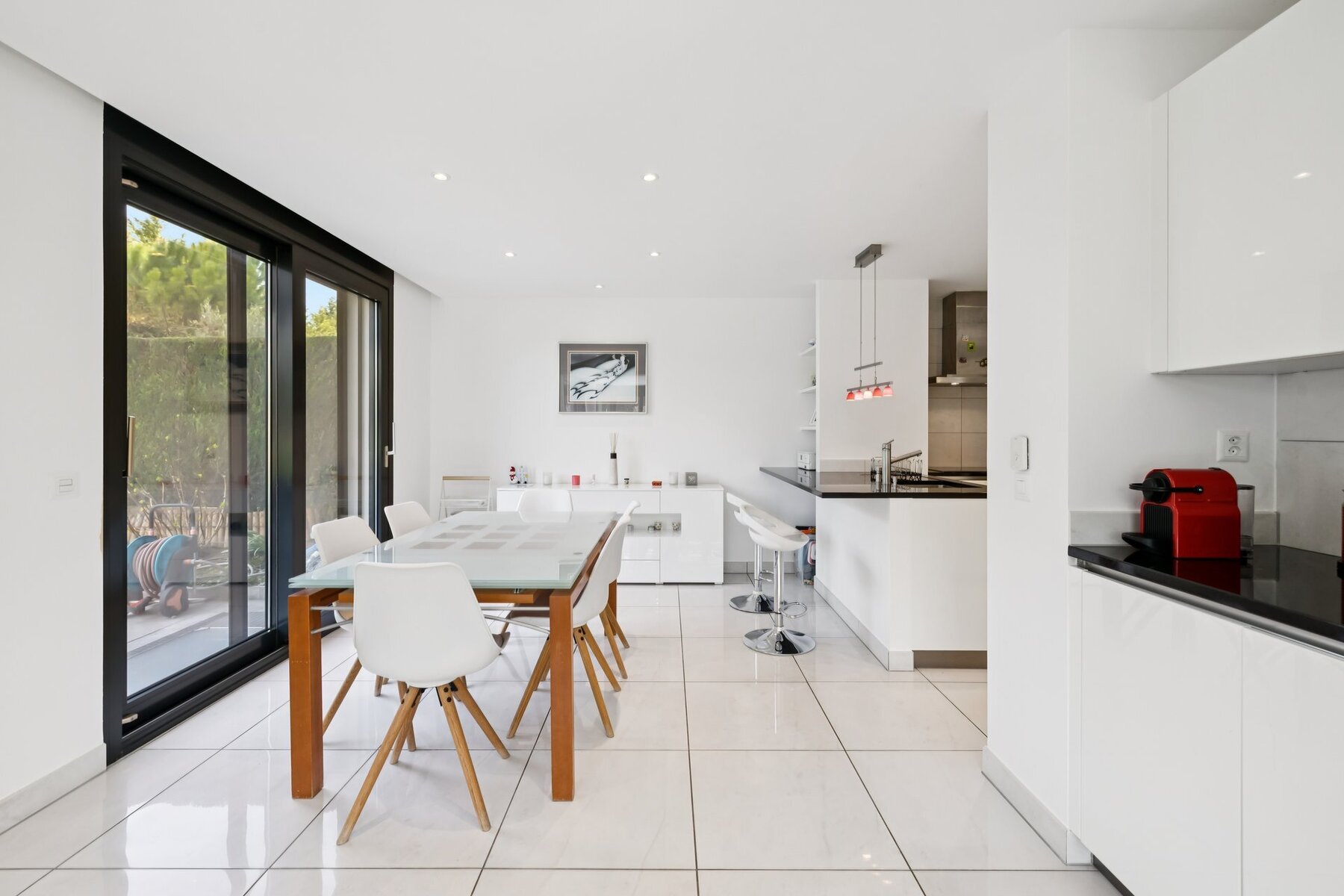 The first floor opens onto a vast living room bathed in light thanks to large bay windows, offering direct access to a magnificent terrace of around 40 m² as well as a private garden of around 500 m². The open kitchen, perfectly integrated into the living space, creates a convivial and contemporary atmosphere. A guest WC completes this level.