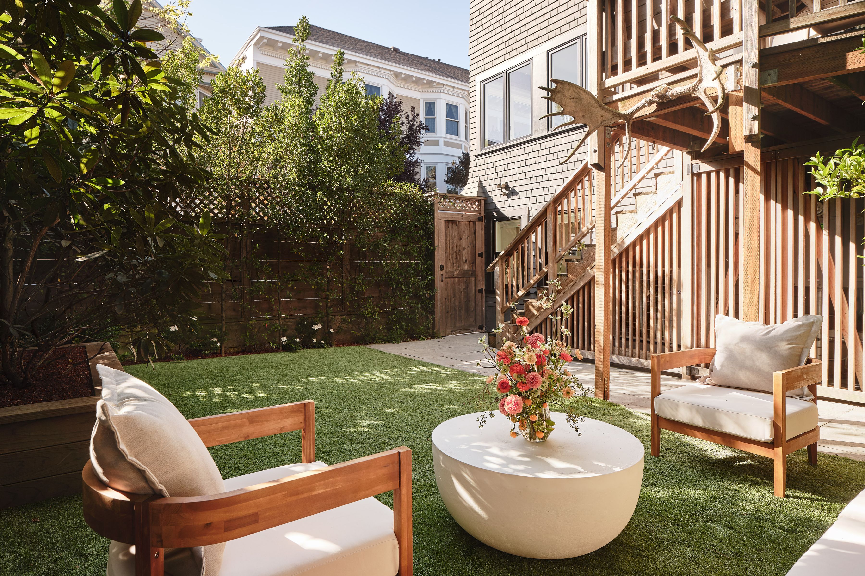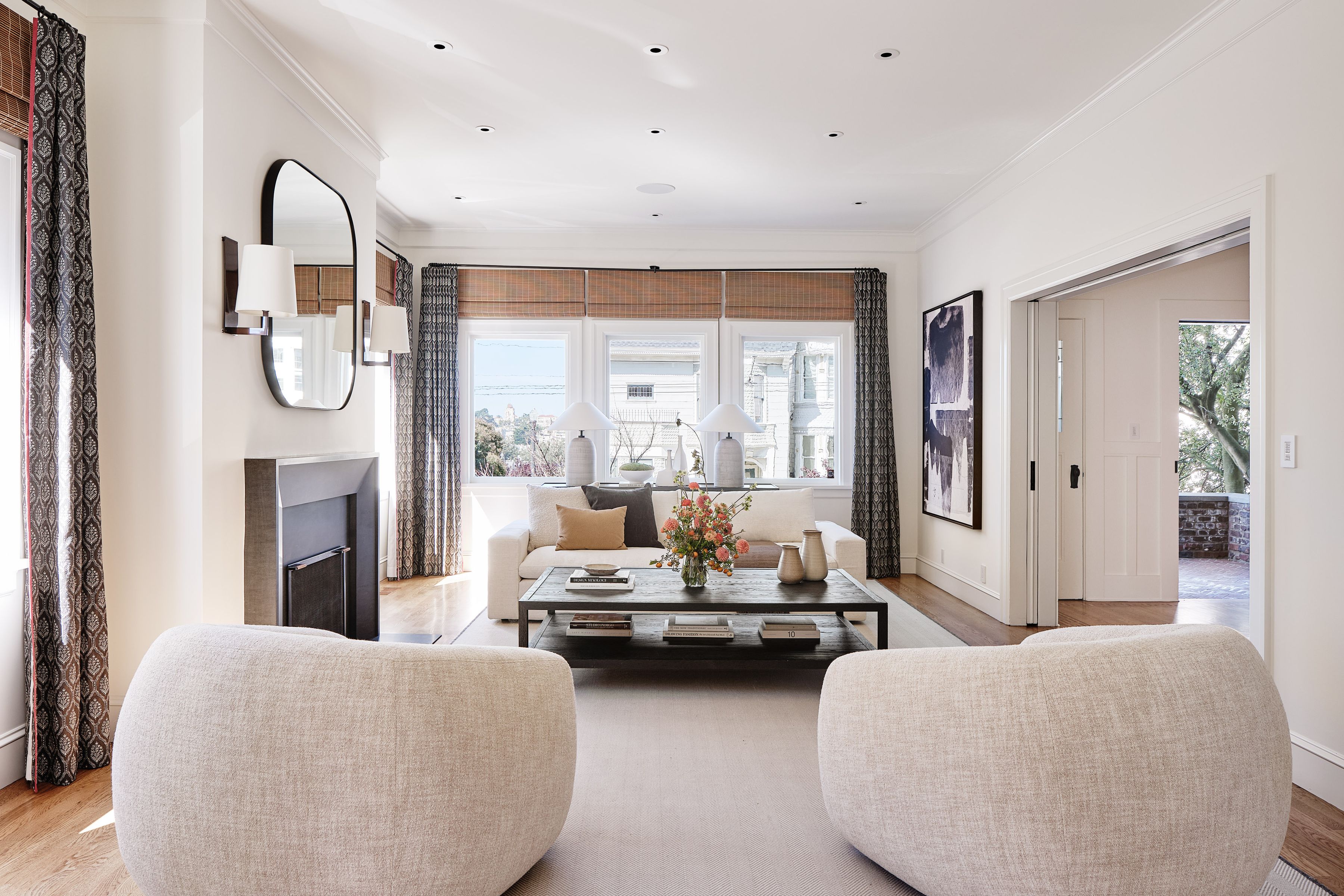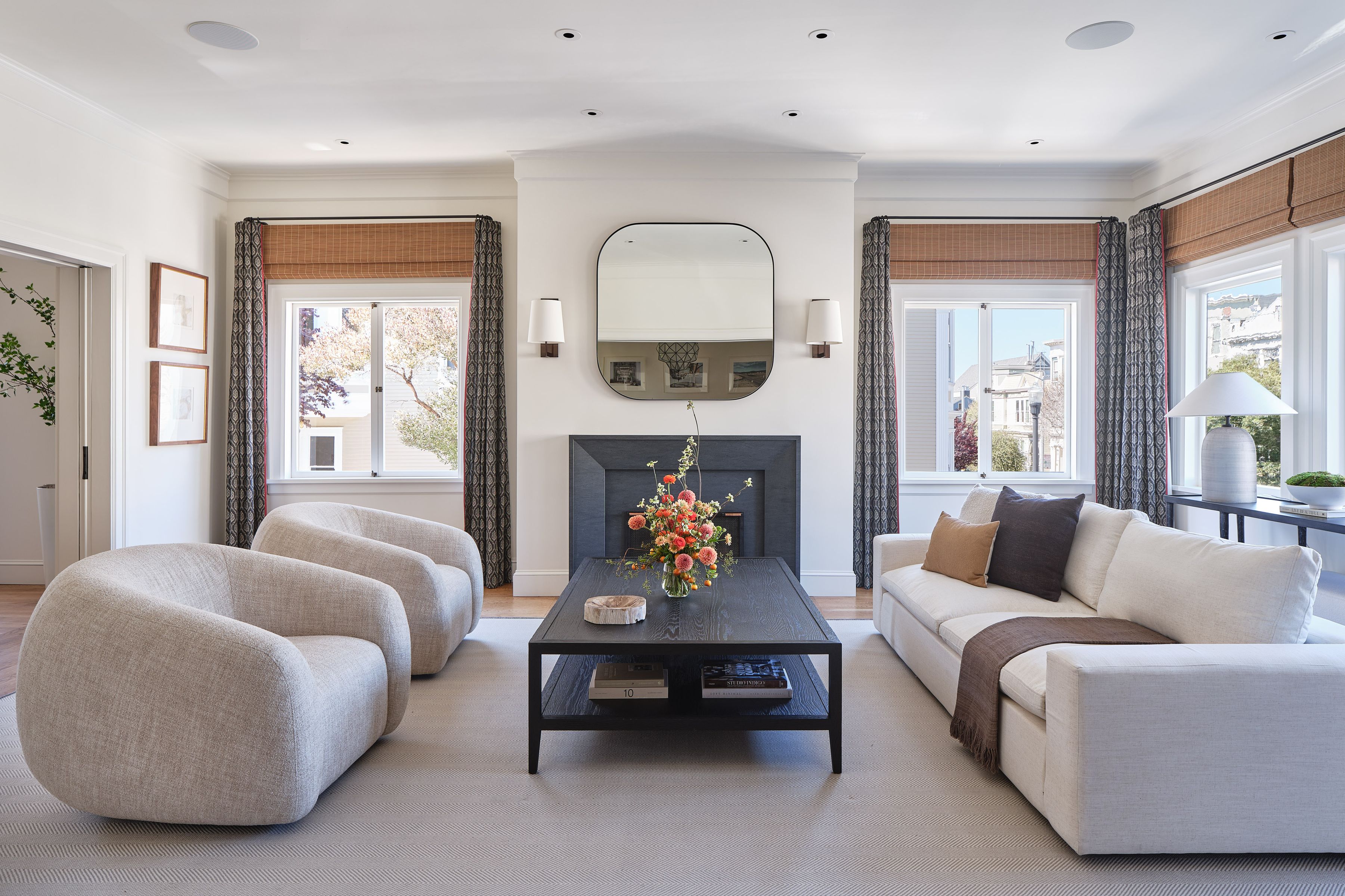 Prominently positioned on a light-filled corner lot in the heart of Cole Valley, this beautifully renovated 1904 home blends preserved architectural character with thoughtful modern updates. Exceptional natural light fills the interiors, highlighting white oak hardwood floors, intricate moldings, and wainscoting, while the home's gracious scale creates an inviting setting for both everyday living and entertaining. Built-in speakers and custom window coverings enhance comfort and livability. A spacious entry foyer introduces the main level, framed by leaded glass doors to the coat closets and a striking front door featuring a beveled glass sunburst. The formal living and dining rooms showcase classic period detail and are separated by pocket doors, offering flexibility for open gatherings or more intimate occasions. The living room features a fireplace, adding warmth and character to the space. At the rear of the home, the kitchen and family room are thoughtfully integrated, creating an open and inviting setting for daily living with walk-out access to a deck with a dedicated gas line for BBQ and stairs leading to the sunny south-facing garden surrounded by mature greenery. The chef's kitchen is anchored by a large island with counter seating and features Calacatta Oro marble, two sinks, a Wolf range, premium Dornbracht fixtures, and a walk-in pantry. The upper level is anchored by the expansive primary suite, a serene retreat featuring a walk-in closet and a sun-filled sitting area framed by a wall of windows with built-in desk and seating overlooking the surrounding greenery. The spa-like bath is finished in Calacatta Oro marble and features a dual vanity, walk-in shower, refined Waterworks fixtures, and a convenient laundry chute. Two additional bedrooms offer generous proportions and excellent light and share a beautifully appointed full bath, while an office or fourth bedroom provides exceptional flexibility with built-ins, a fireplace, and media area. The lower level offers a spacious family/media room with built-in cabinetry and a temperature-controlled wine cellar. A private guest suite with bedroom and bath enjoys its own entrance directly from the garden, creating an ideal space for guests or extended stays. A dedicated laundry room and rare two-car side-by-side garage complete the home. Ideally located just moments from the shops and restaurants along Cole Street and close to Buena Vista Park.