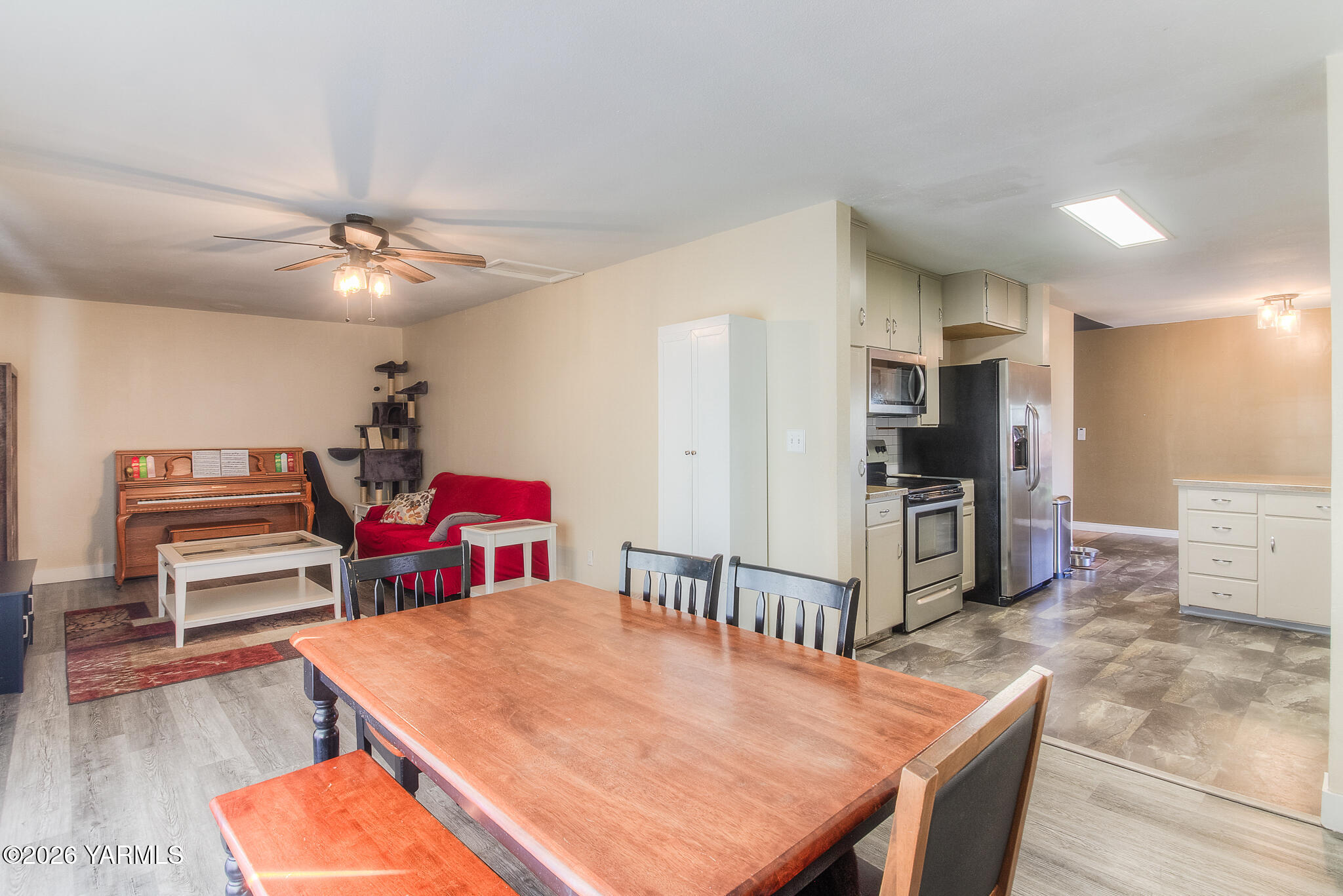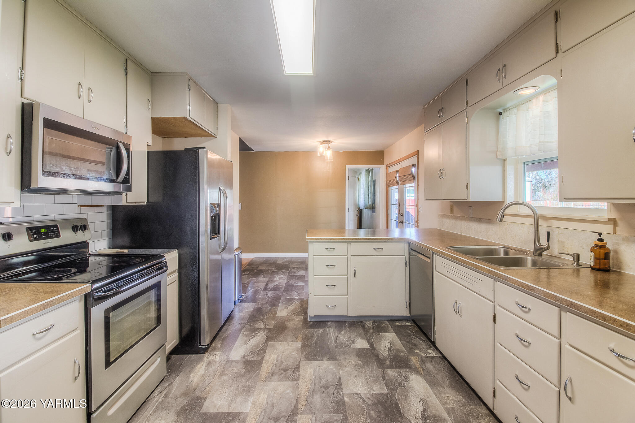 Welcome to this well-maintained single-level home offering 3 bed 1.5 bath in a convenient Yakima location. Built in 1965, this home features a practical layout with comfortable living spaces and updated flooring in select areas. The kitchen is spacious and open to the dining area creating a functional space for everyday living. Outside, enjoy a generously sized backyard with room to garden, entertain, or relax. The large detached garage easily fits two vehicles and includes additional space ideal for storage, hobbies, or a small workshop area.Clean, move in ready, and full of potential, this home is a great opportunity for first time home buyers, downsizers, or anyone looking for an affordable single level option.
