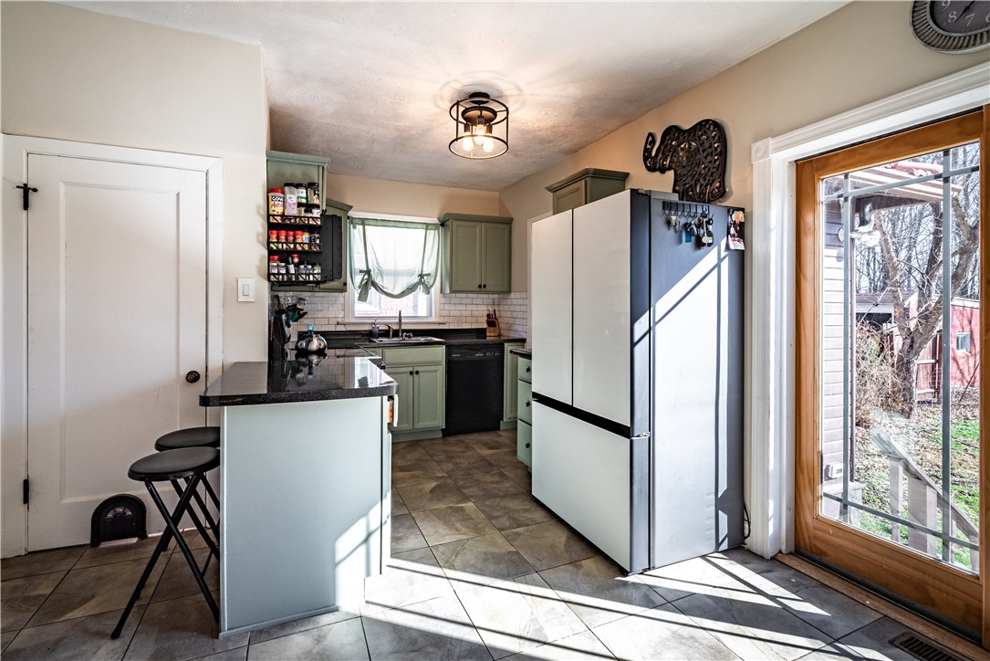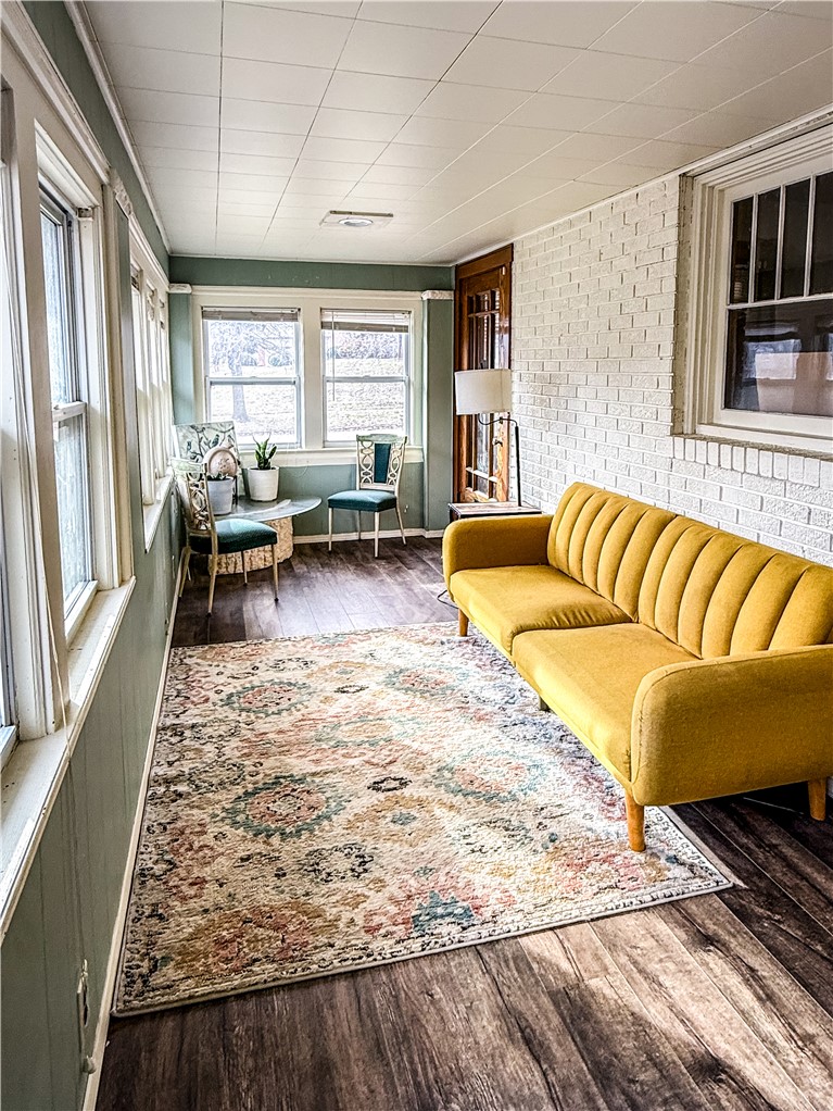 Welcome to this distinctive home with classic details and inviting living spaces throughout. Full of character and timeless appeal, this brick home offers four bedrooms, one being a captive bedroom that would be great for an office, nursery or walk-thru closet. The truly eye-catching tile roof sets this home apart and makes a great first impression. The living room showcases hardwood flooring and a beautiful fireplace with custom built-ins, creating a warm focal point. A modern kitchen opens to a spacious dining room that provides the perfect setting for gatherings, while the bright sunroom offers a peaceful retreat filled with natural light. A walk-up attic, basement and garage allow for additional storage. Step outside to enjoy the patio space overlooking a rare, private, wooded view, ideal for relaxing or hosting guests.