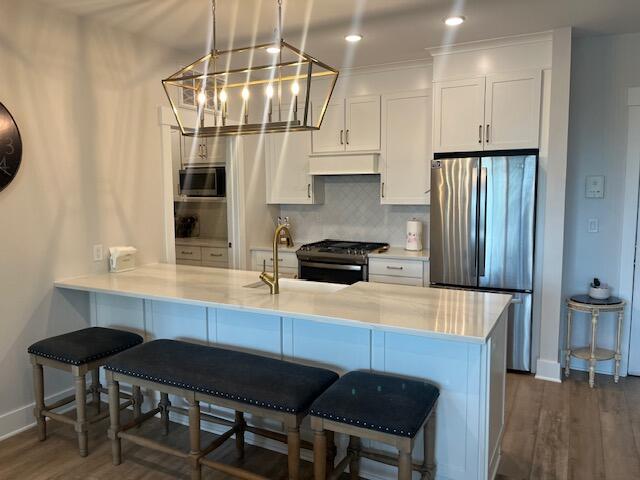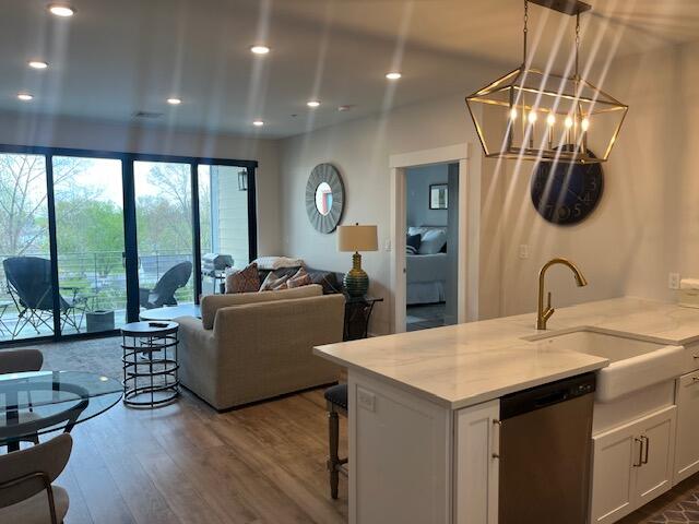 Luxury & quality in Saratoga Springs! In a bustling residential, recreational & commercial corridor, blocks to Broadway. High-end features: all Hardwood flooring, quartz/granite counters, designer lighting, 9' ceiling, butler's pantry, in-unit laundry rm, oversized private balcony, 42' gourmet cabinets, brand new GE cafe style stainless gas appliances, and dishwasher. walk-in closets in both bedrooms, glass & tiled showers/baths & electric remote-controlled blinds throughout. Heated roof-top pool. Fitness center, private lounge, elevator, heated garage, and abundant surface parking. Stroll to The Community Farm, The Arts District, the train station & Broadway.