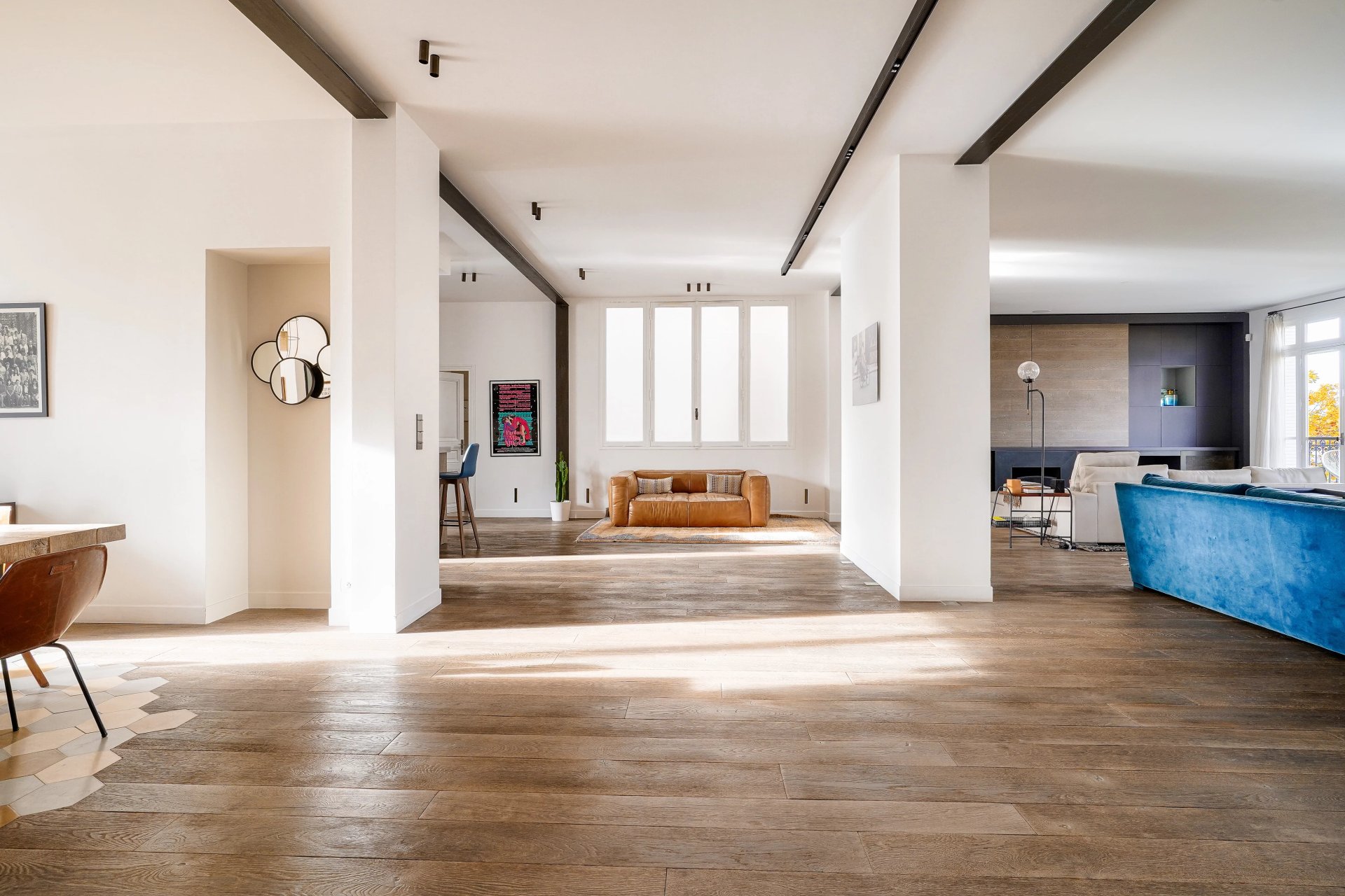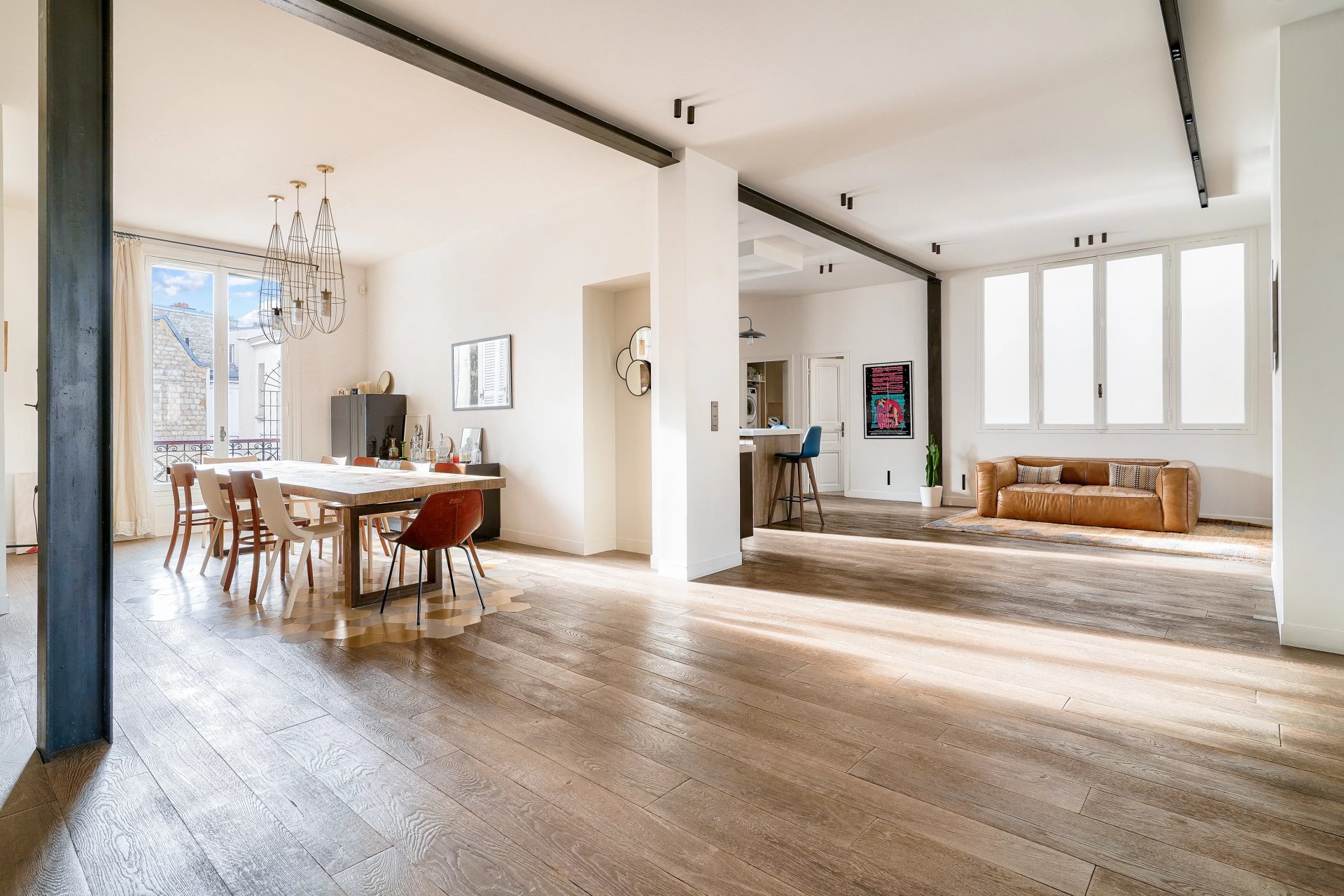 Sole Agent. Malesherbes neighbourhood. This over 300 sqm duplex apartment on the 5th floor of a luxurious late 19th century freestone building has been renovated throughout in a resolutely contemporary style.