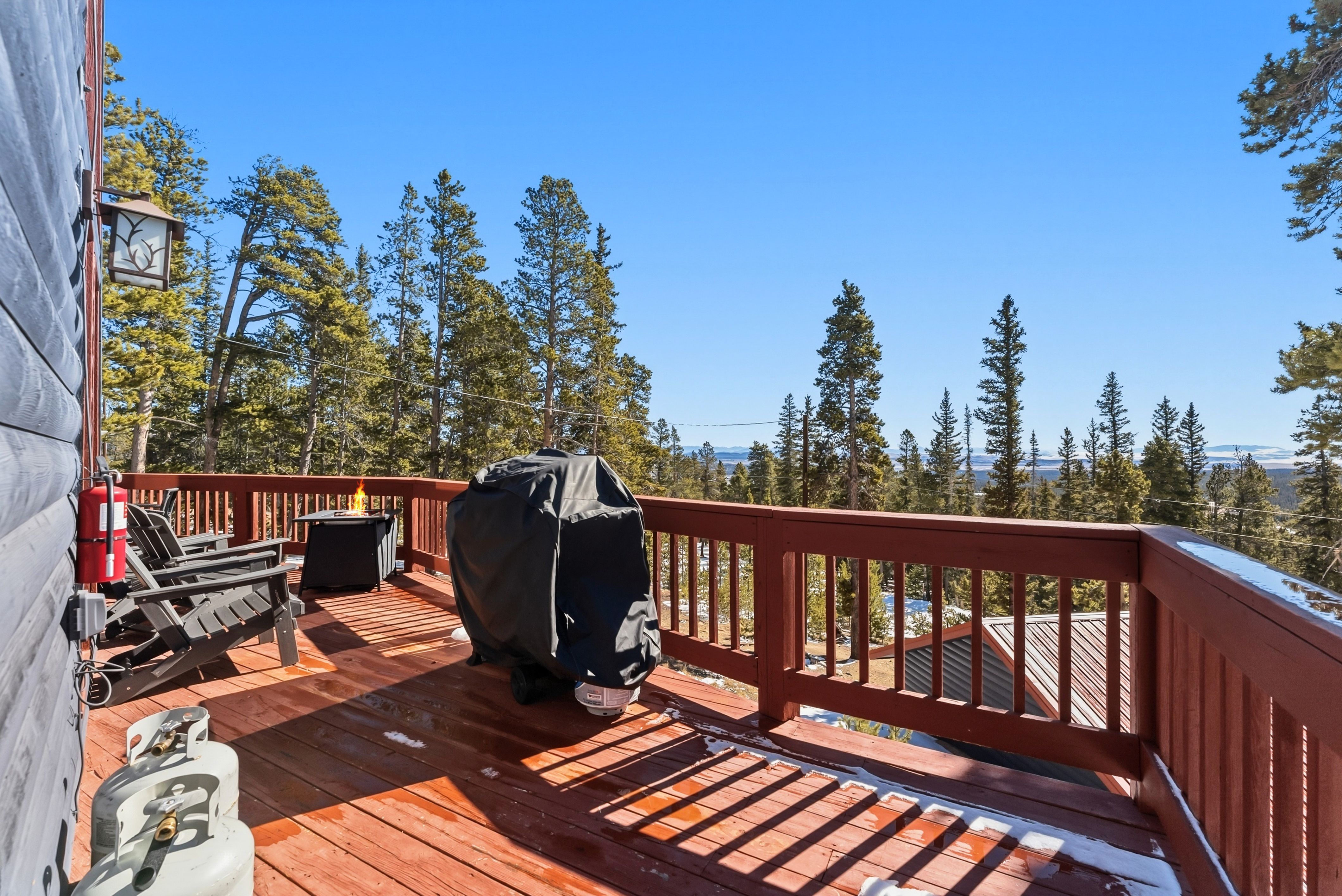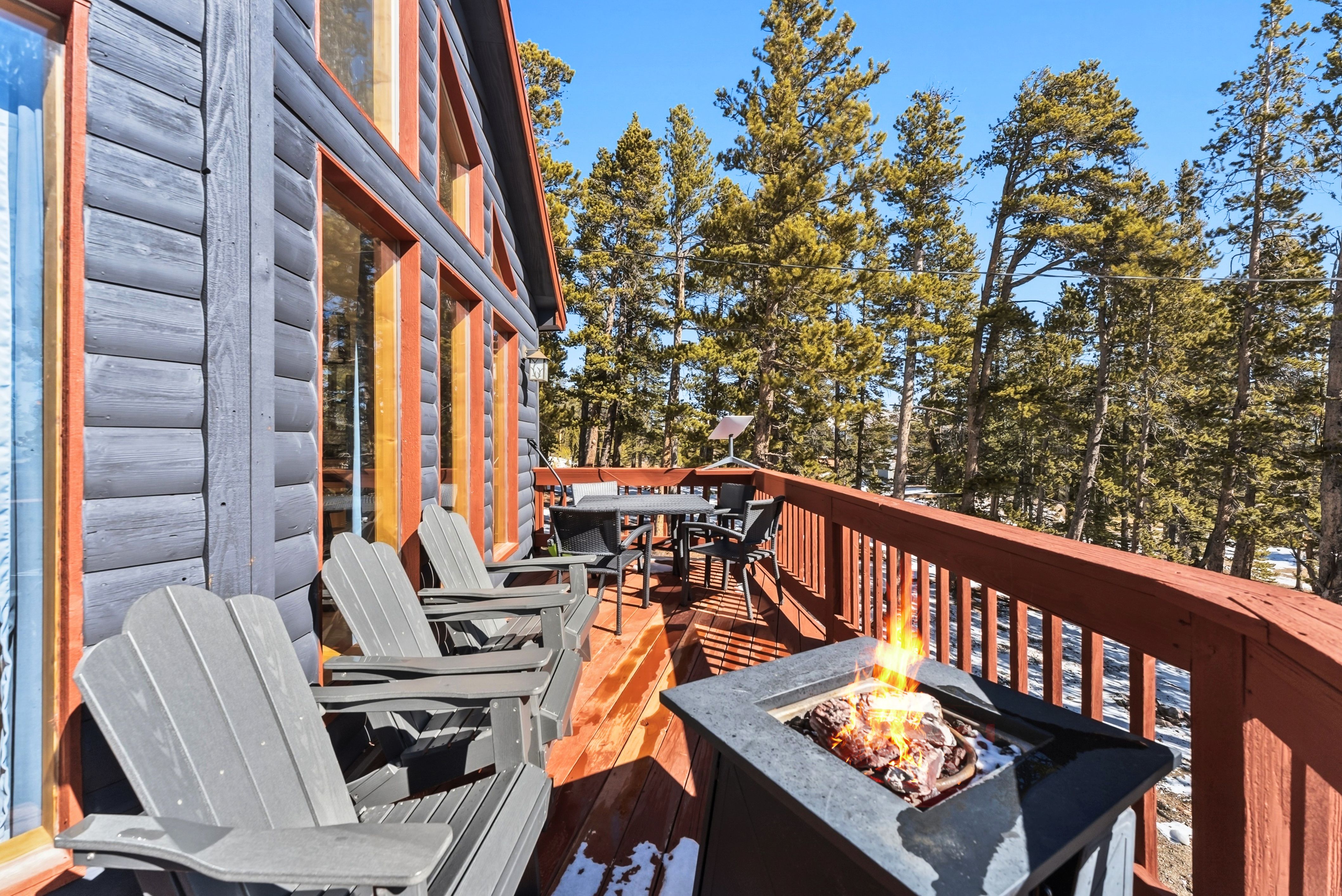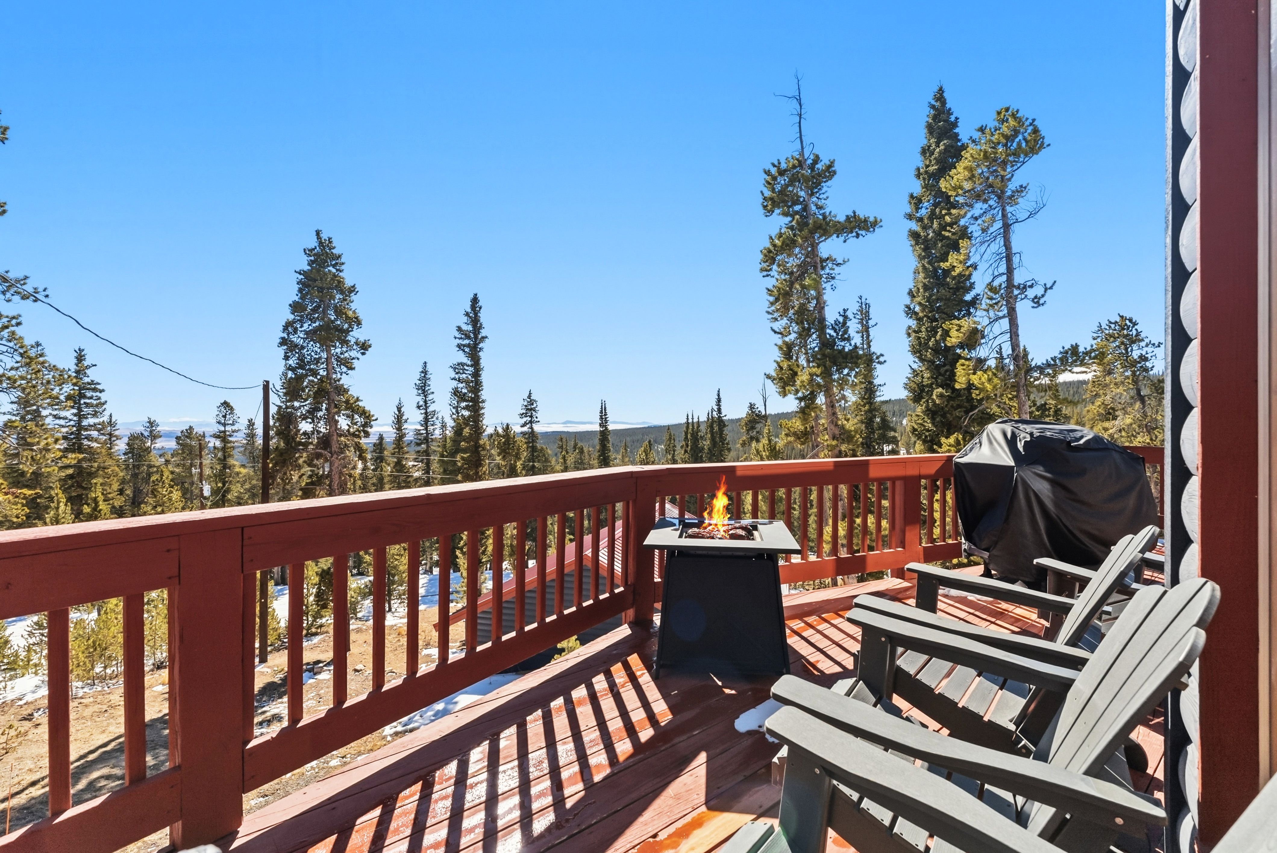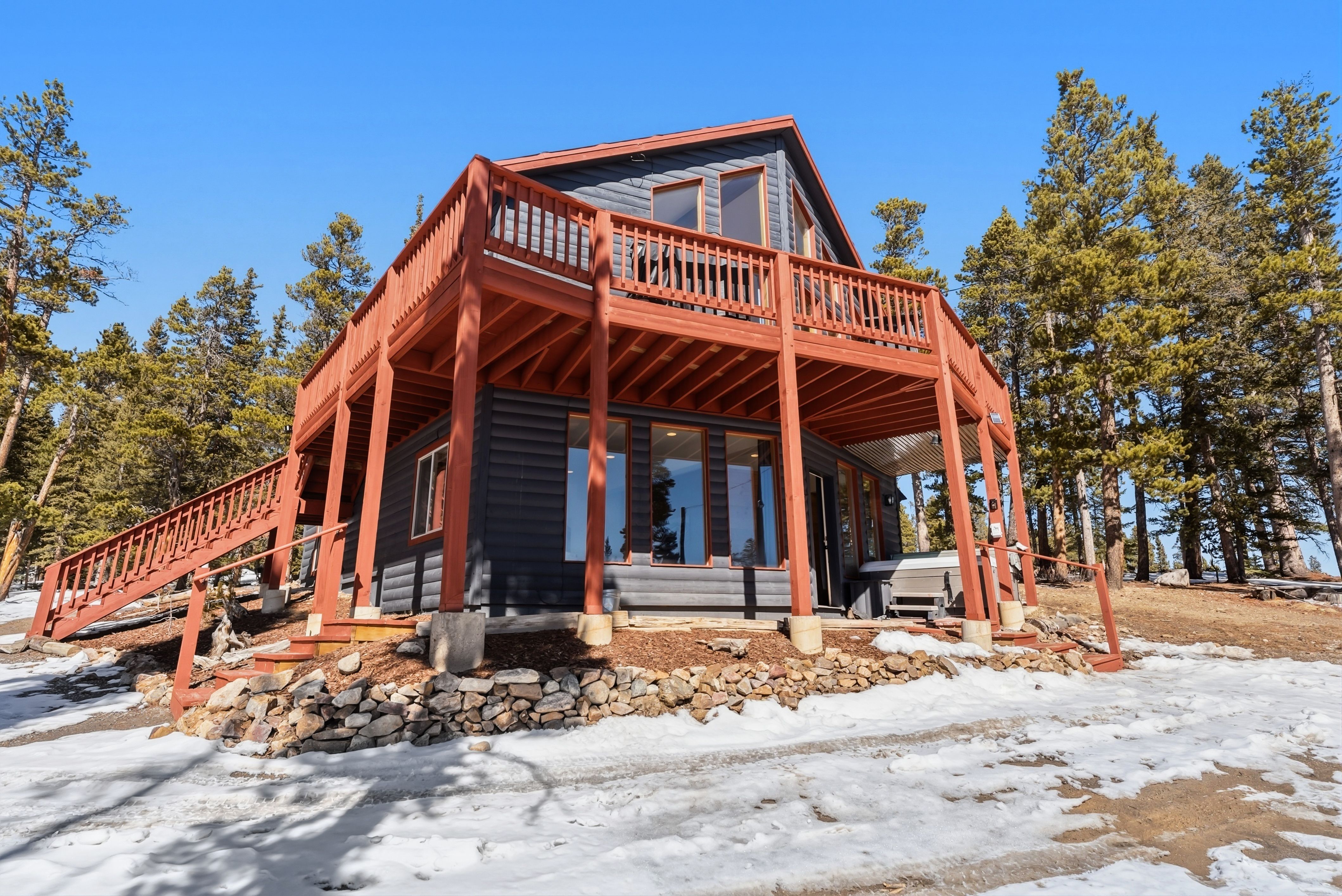 Set at roughly 11,000 ft with wide-open views toward Pikes Peak, the home delivers the Colorado experience guests come for: big scenery, dark skies, and the kind of quiet you can’t get in town. A private hot tub on the deck turns nights into an amenity—stargazing, après-ski soaks, and a reason for guests to book in every season.