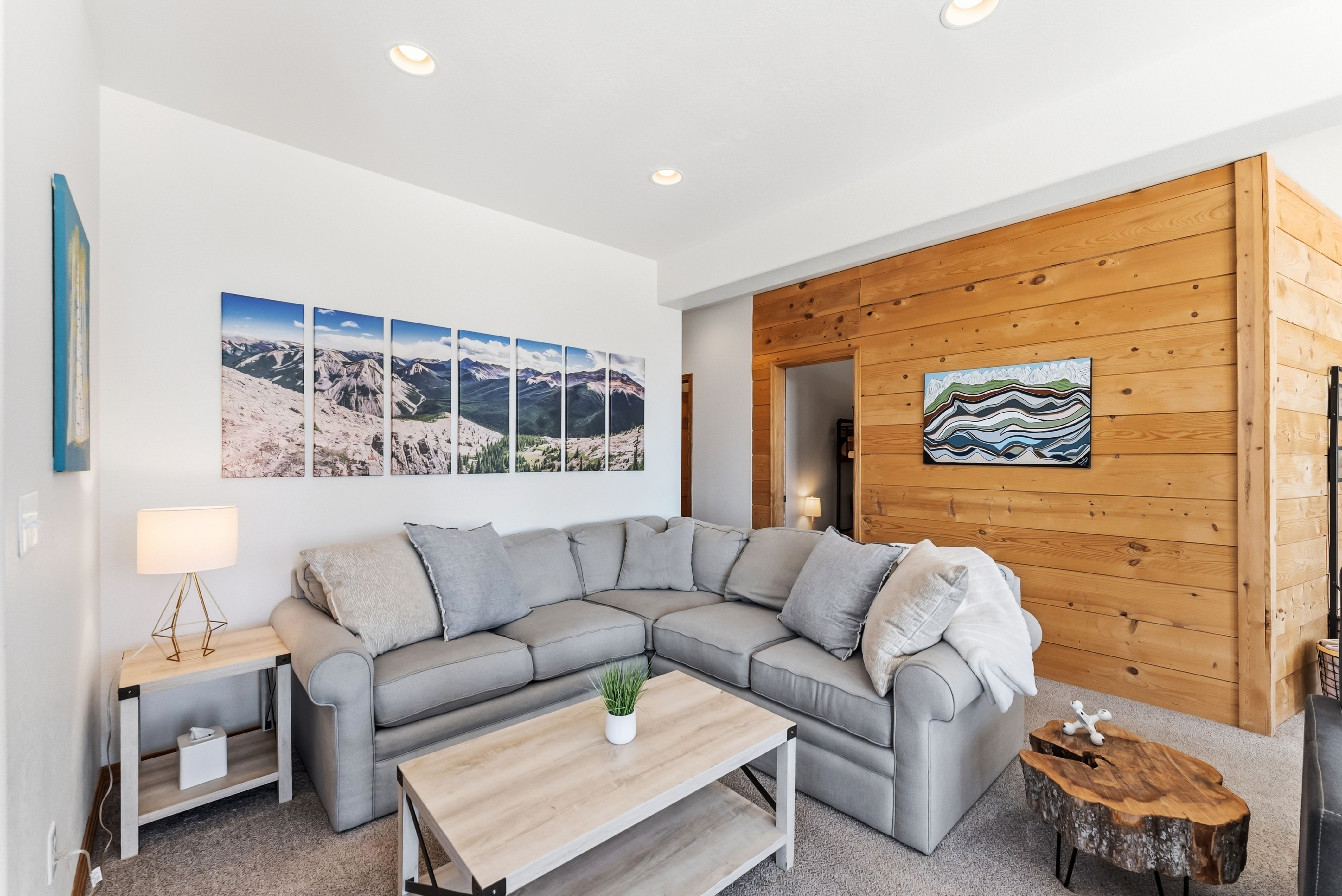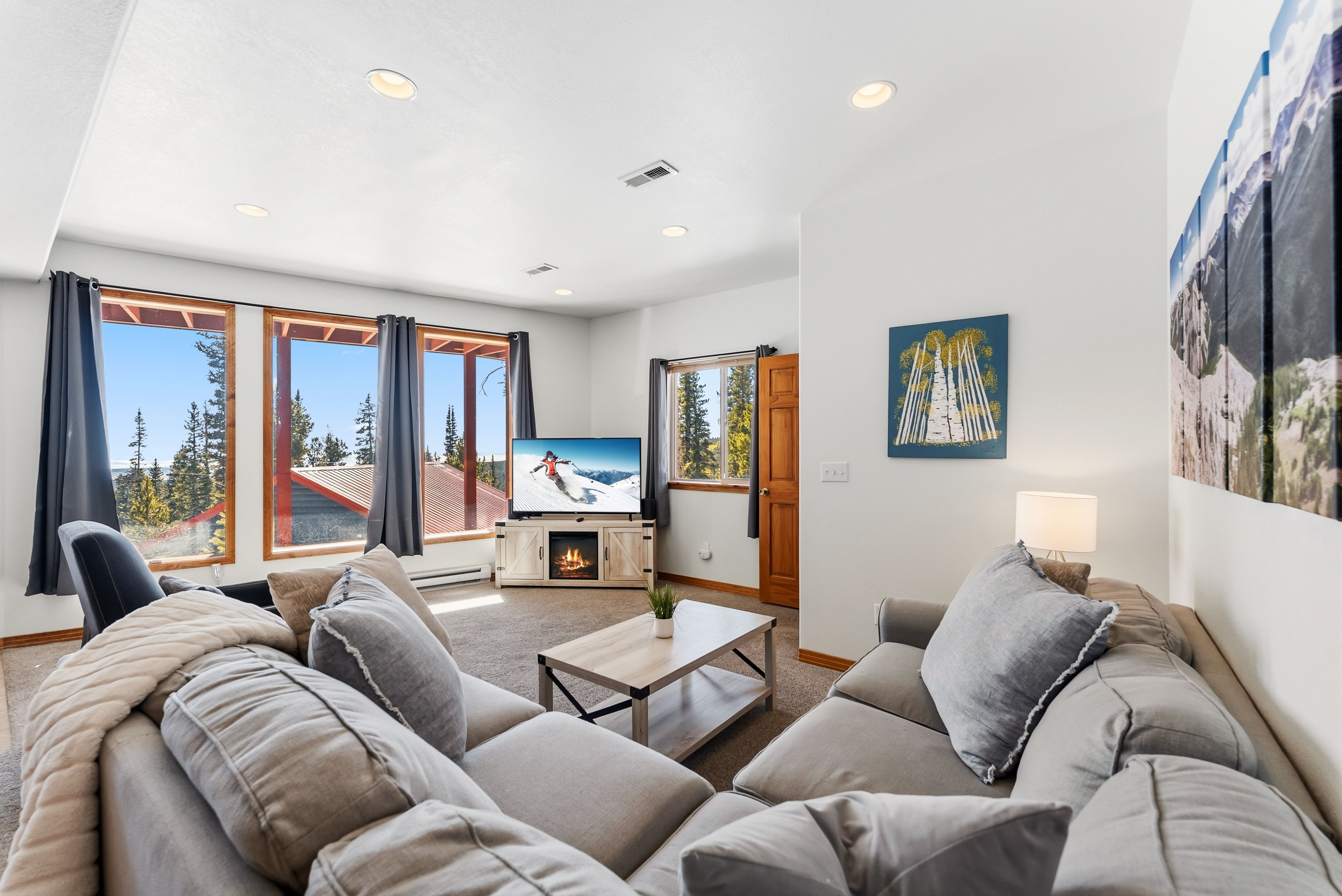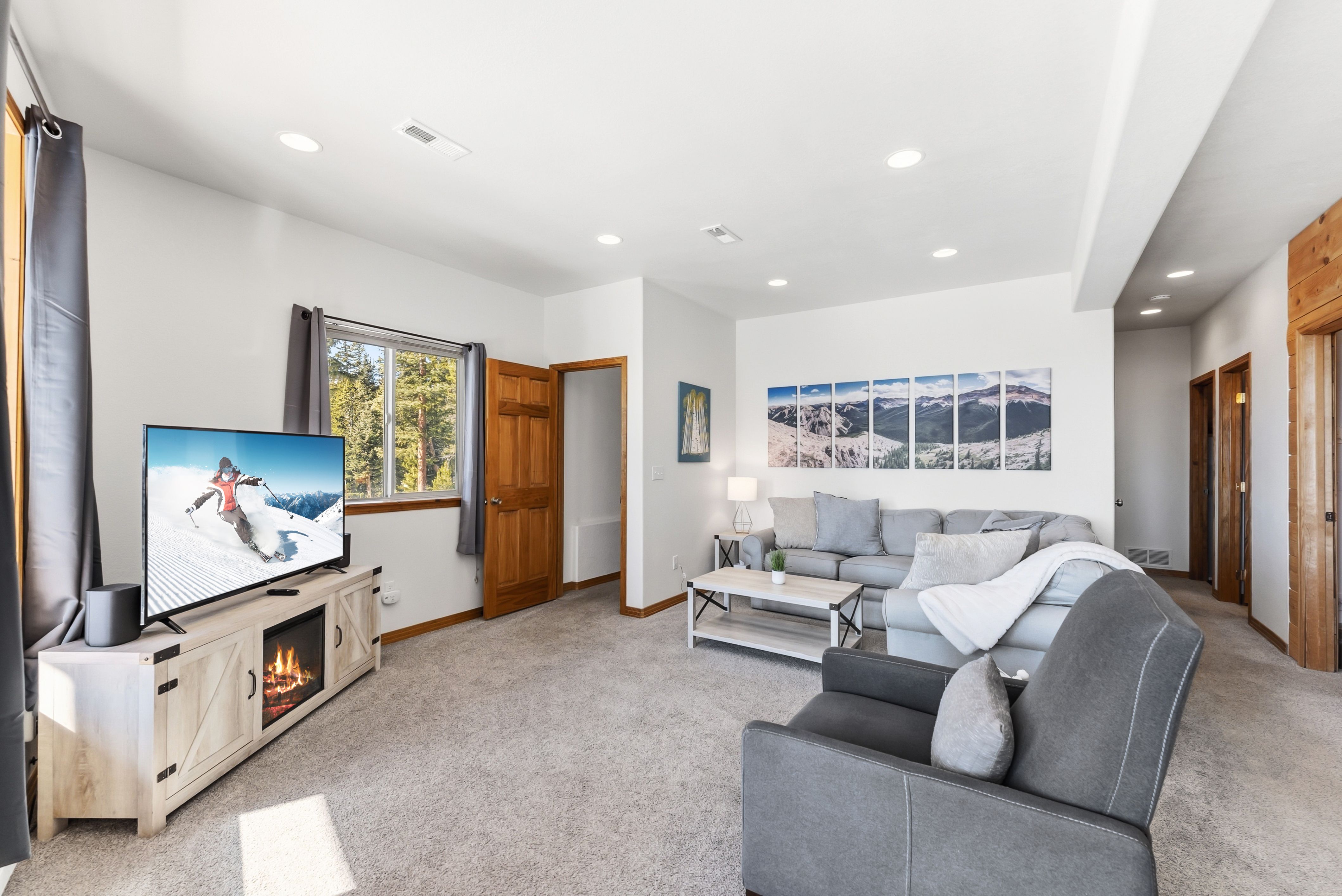 Inside, the style is clean and current with warm mountain finishes. The layout sleeps up to 10 with three king bedrooms plus a queen-over-queen bunk, making it easy to host families, couples traveling together, or a mixed group—great for occupancy and flexible pricing. Two full baths, comfortable living spaces, and a fully stocked kitchen support longer stays and repeat guests.