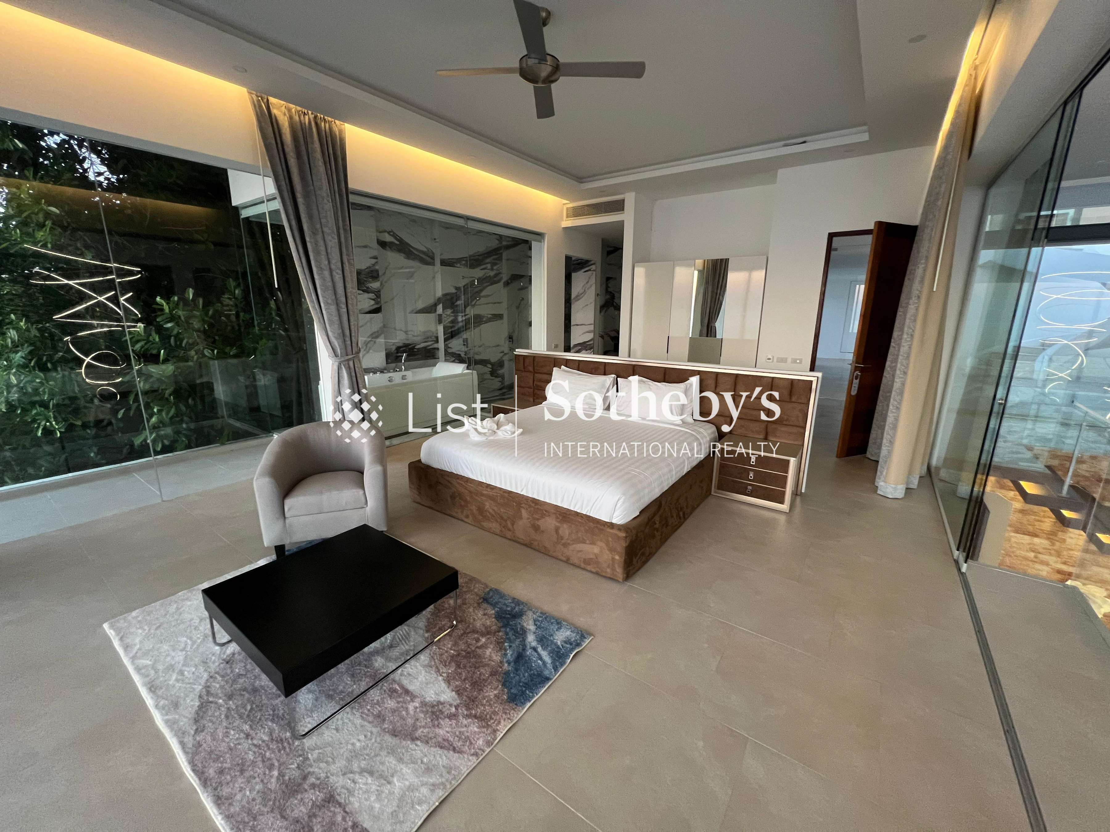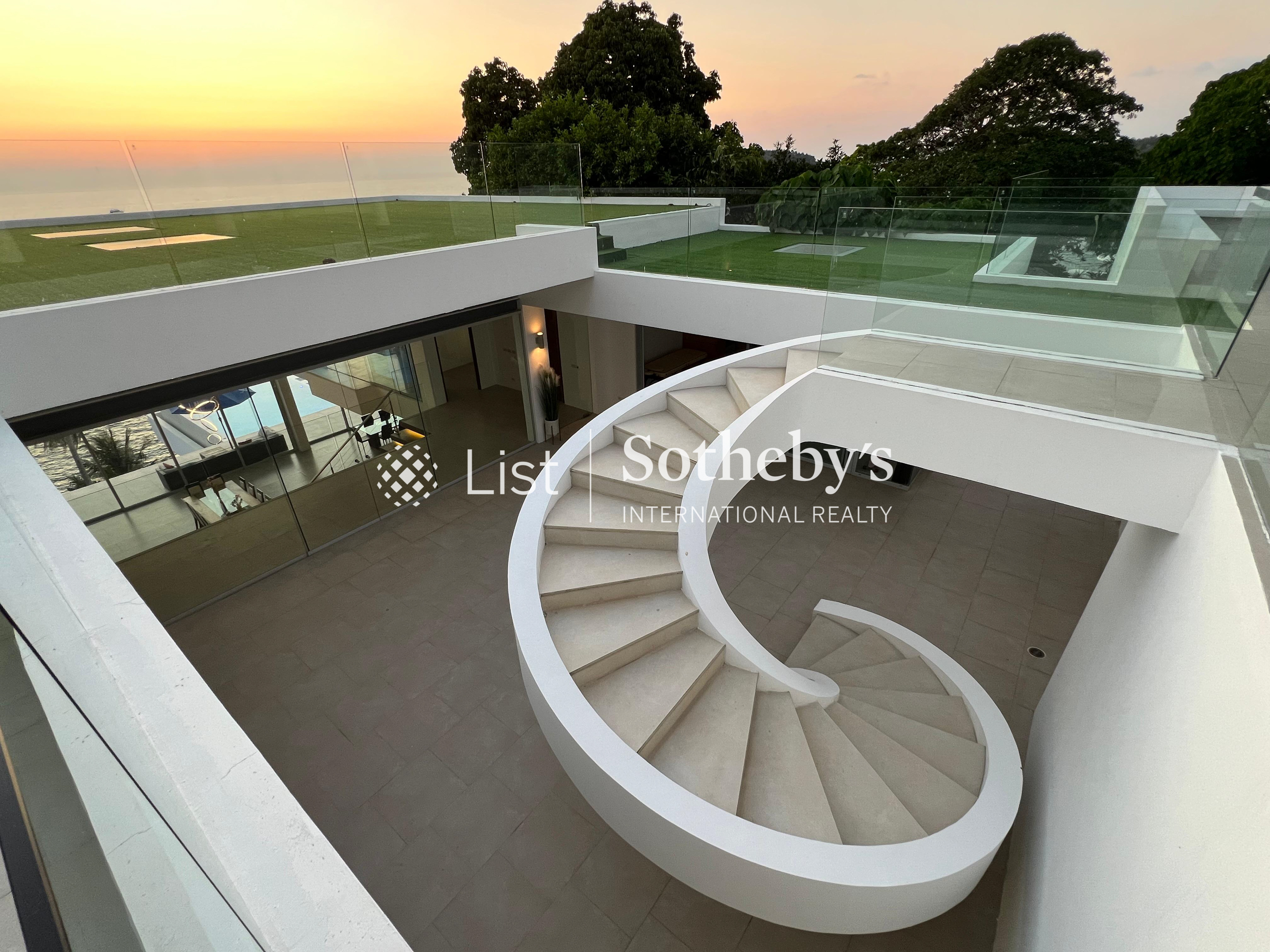 Inside, the villa features eight spacious en-suite bedrooms, each with floor-to-ceiling windows framing panoramic sea views. The interiors are styled with a minimalist yet warm aesthetic, combining natural materials with modern finishes. Several living areas are spread across multiple levels, offering both privacy and communal gathering spaces for residents and their guests.