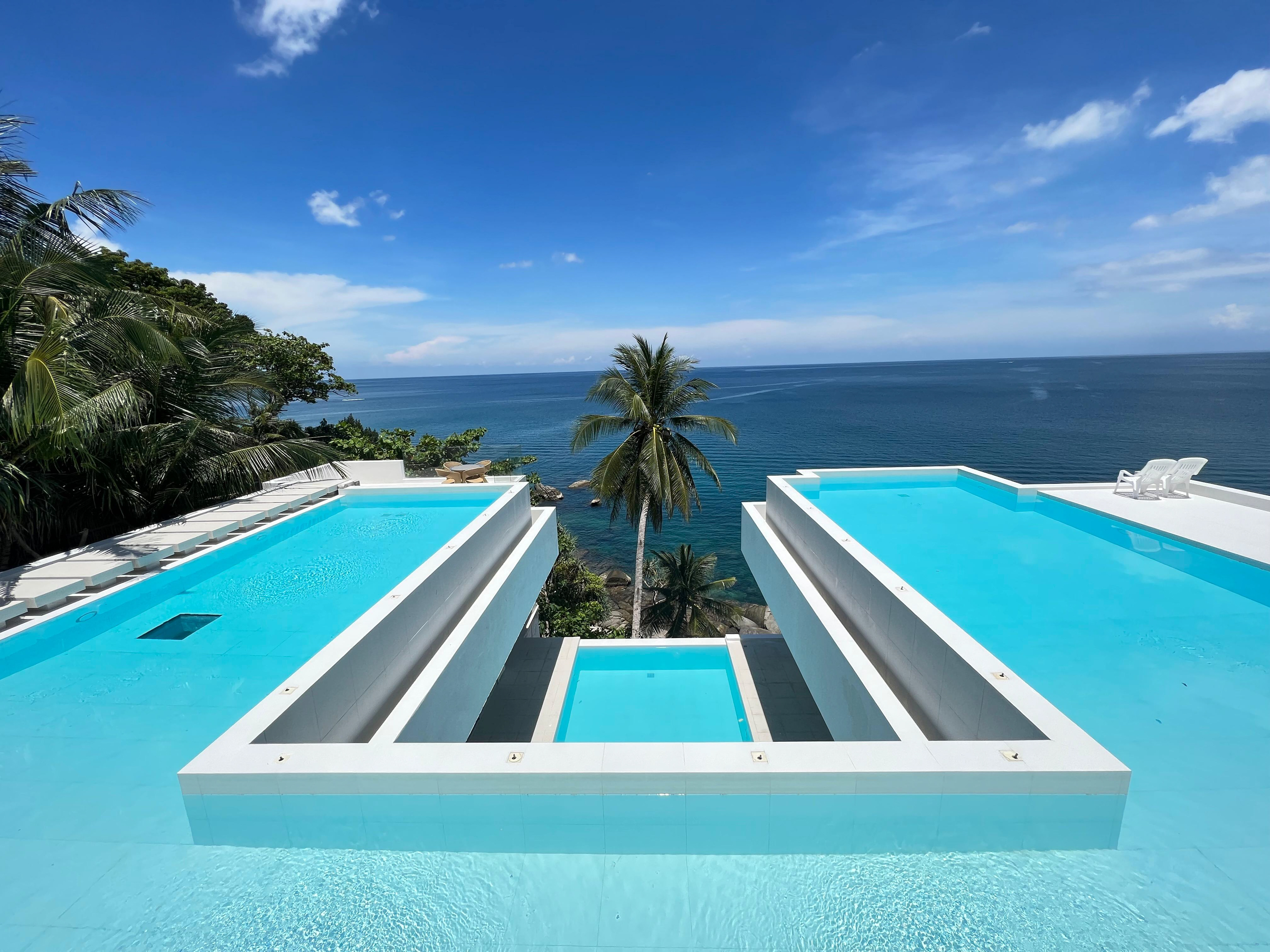 Baan Perwah is a strikingly modern, oceanfront villa located on the headland between Kata and Kata Noi beaches in Phuket. Spanning five levels and designed to maximize its dramatic clifftop position, the villa offers sweeping views of the Andaman Sea from nearly every room. Its architecture emphasizes clean lines, open spaces, and seamless indoor-outdoor flow, creating a sophisticated atmosphere that blends tropical living with contemporary luxury.