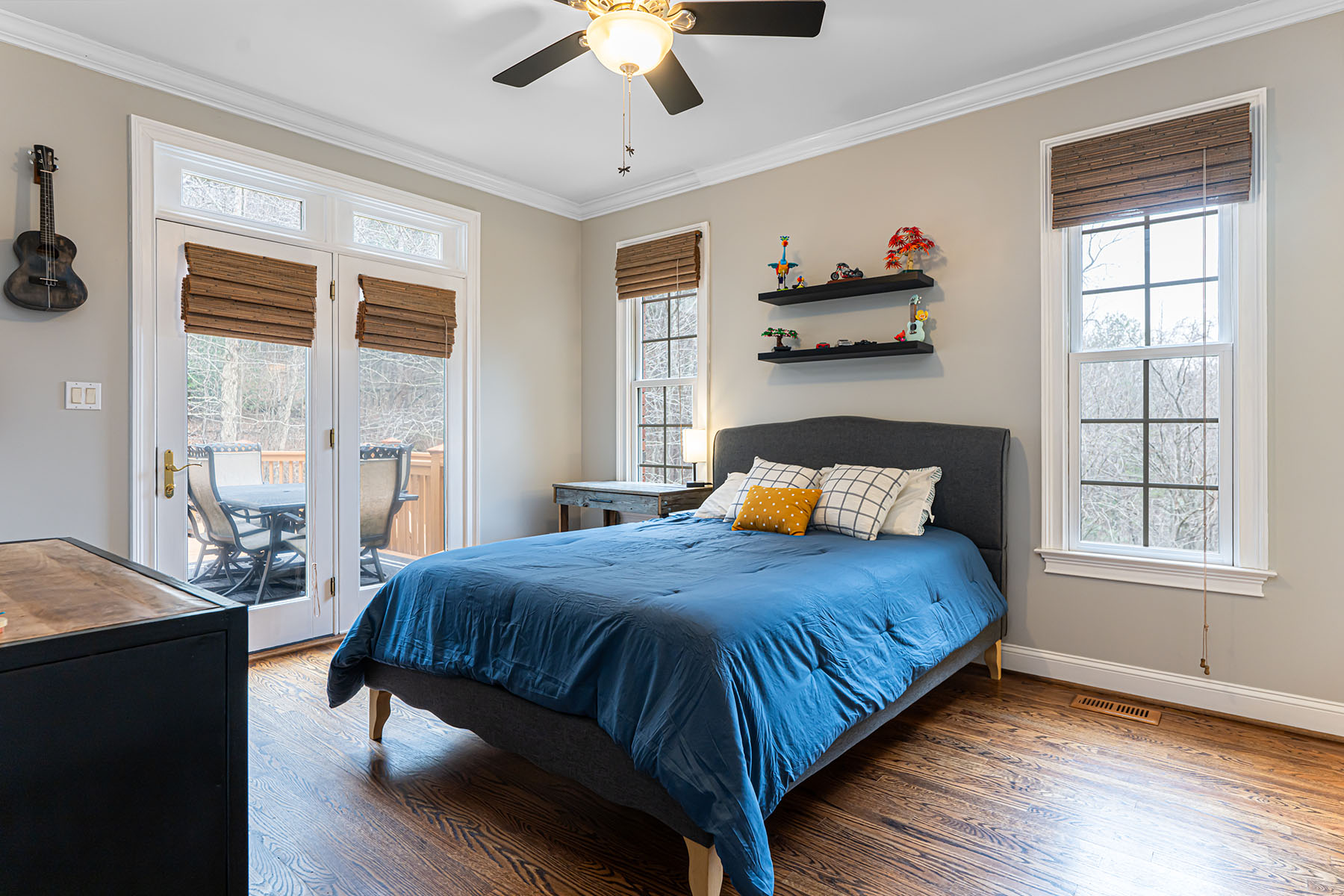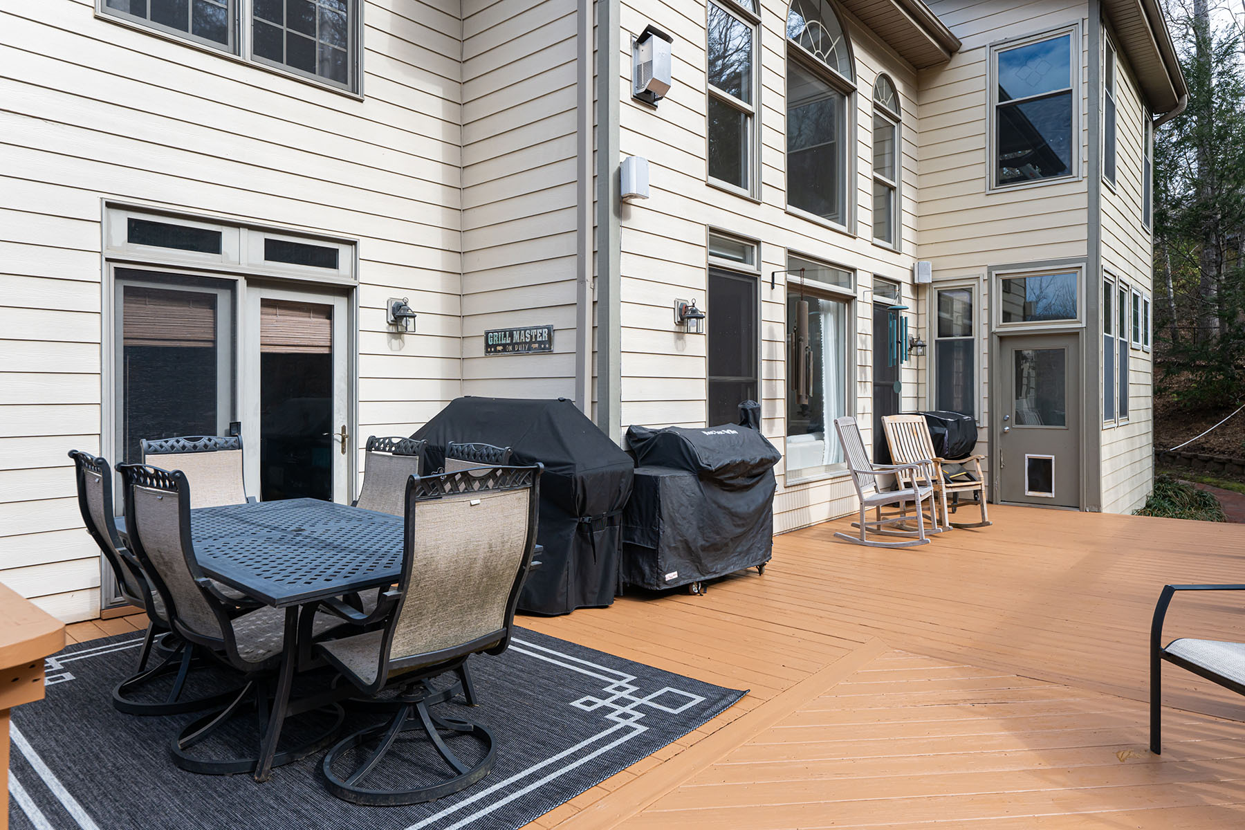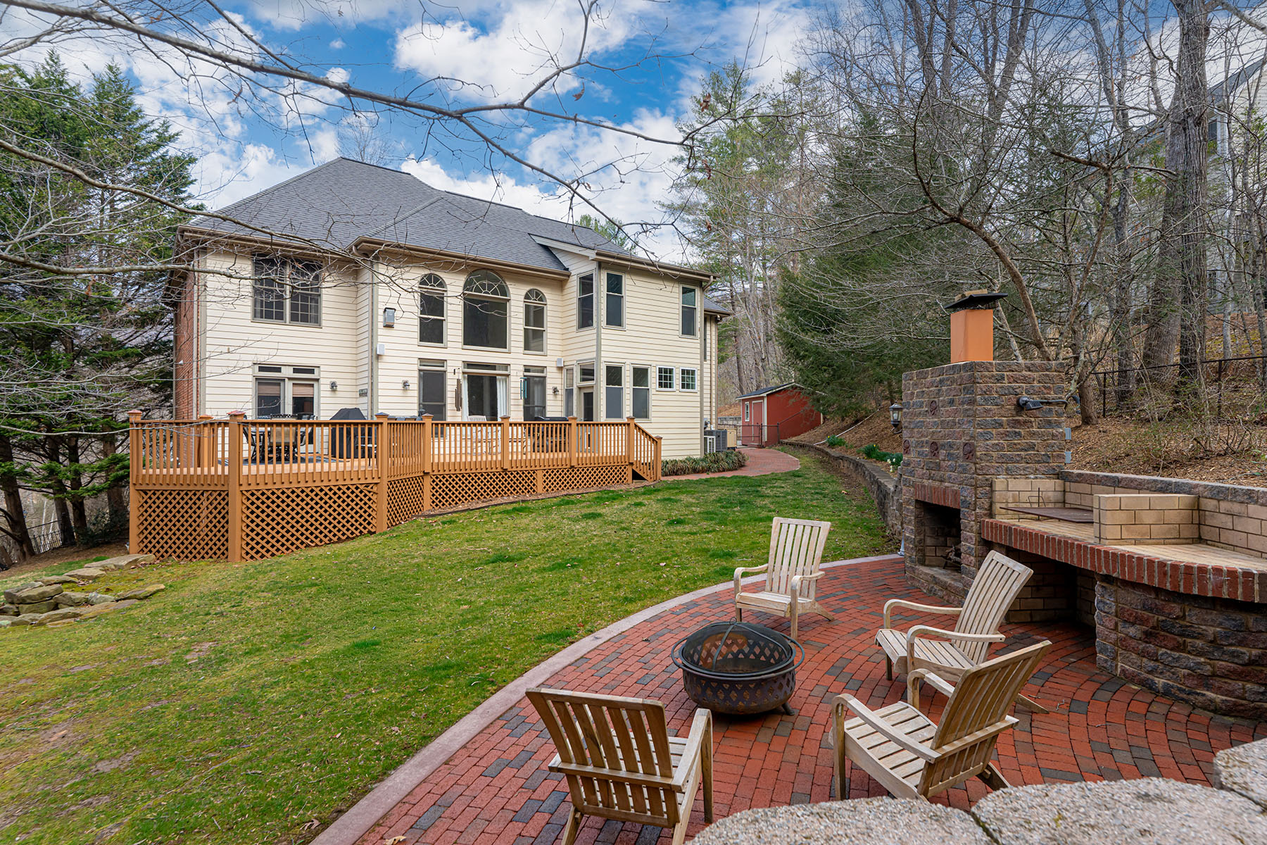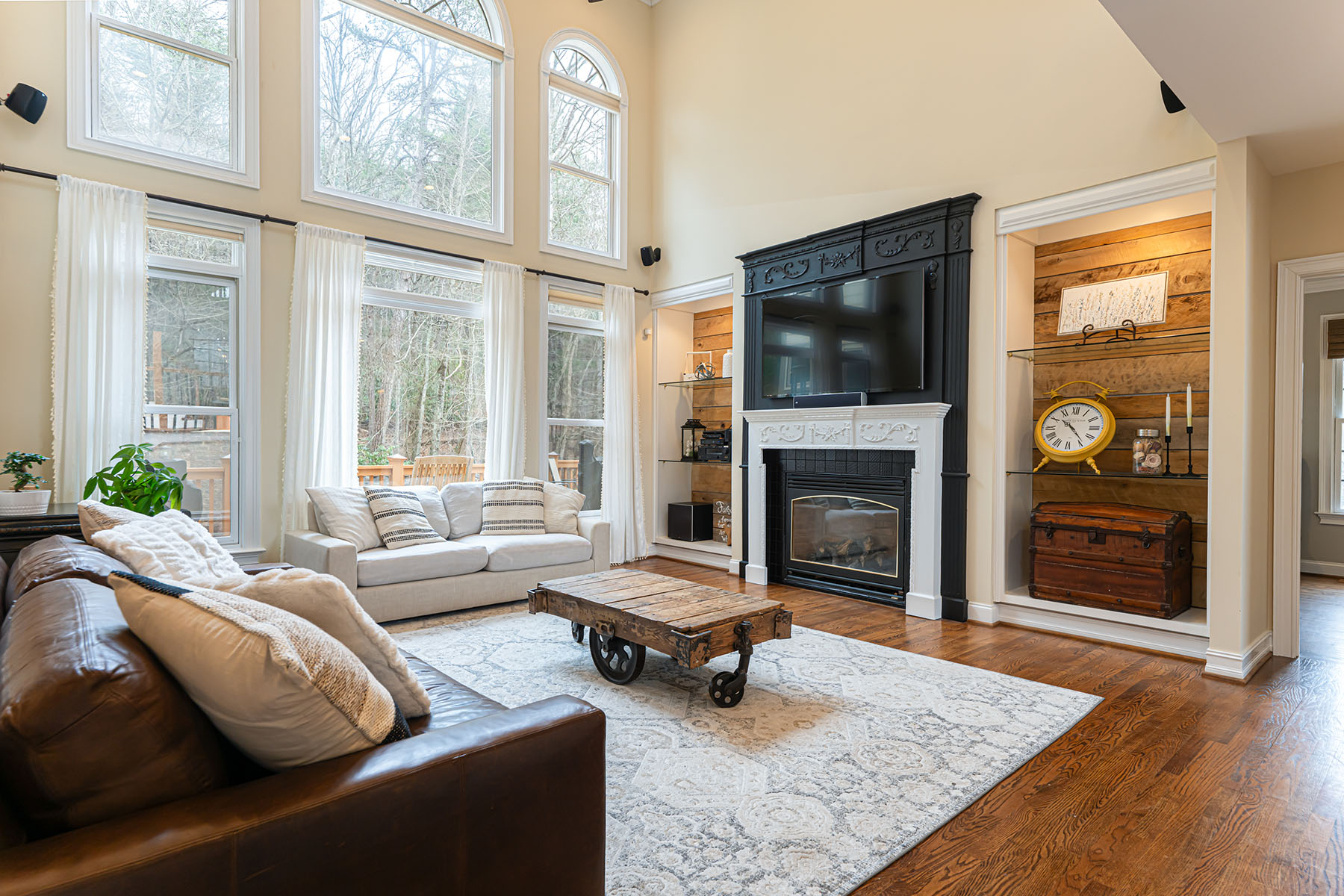 For those seeking space and access, 39 Windover Drive offers a rare combination of convenience, presence, and thoughtful design all within gated Poplar Ridge. The home unfolds across three well-defined levels, each crafted with intention. The main floor features hardwood floors, a dramatic two-story great room with a gas fireplace and custom built-ins, formal dining, a private office, and a main-level guest suite. The chef's kitchen is equipped with premium appliances, including a Wolf cooktop and vented hood, KitchenAid double wall ovens, Bosch dishwasher, expansive island, and two walk-in pantries designed for both function and scale. Upstairs, the primary suite offers a large, private retreat with its own sitting area and fireplace, a four-seasons room currently being used as an exercise room, spa-inspired bath with jetted tub and tiled shower, and an oversized walk-in closet. Additional bedrooms include both ensuite and shared configurations, providing flexibility for family and guests. The lower level is dedicated to recreation and entertaining, complete with a private theater, game room with a wet bar, additional bed/bonus, full bath, and direct access to the fenced backyard. Outdoor living extends to a large back deck, brick patio with fireplace and raised garden beds, creating an inviting setting for gatherings. A three-car main-level garage, mature landscaping, storage shed, and proximity to community amenities further enhance this offering. Enjoy easy access with close proximity to the gate and a preferred setting directly across from the community park. Ideally located just minutes from South Asheville's premier conveniences, including Whole Foods, Ingles, Publix, dining, shopping, entertainment, and the scenic Blue Ridge Parkway, the home offers a rare balance of private gated living and everyday accessibility.